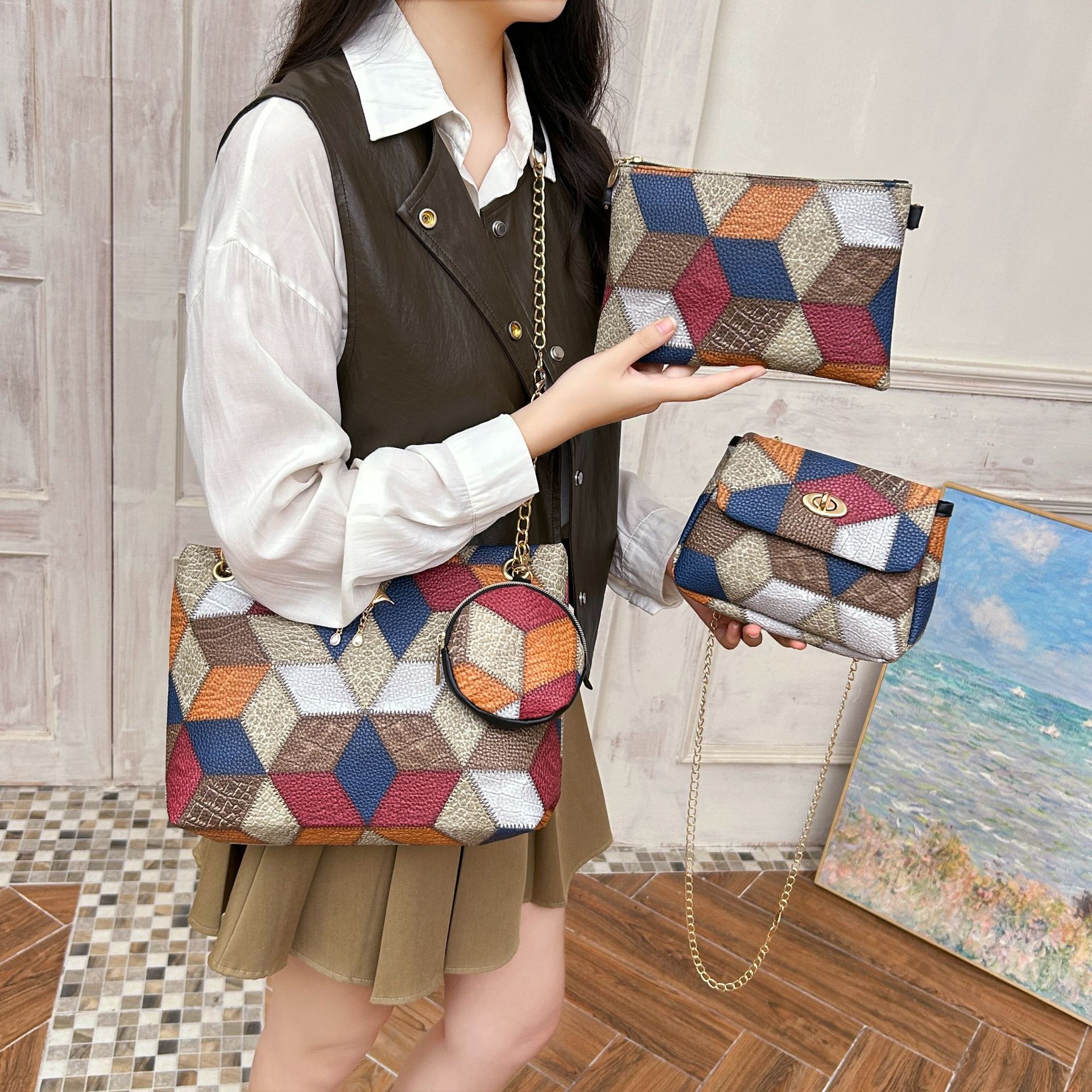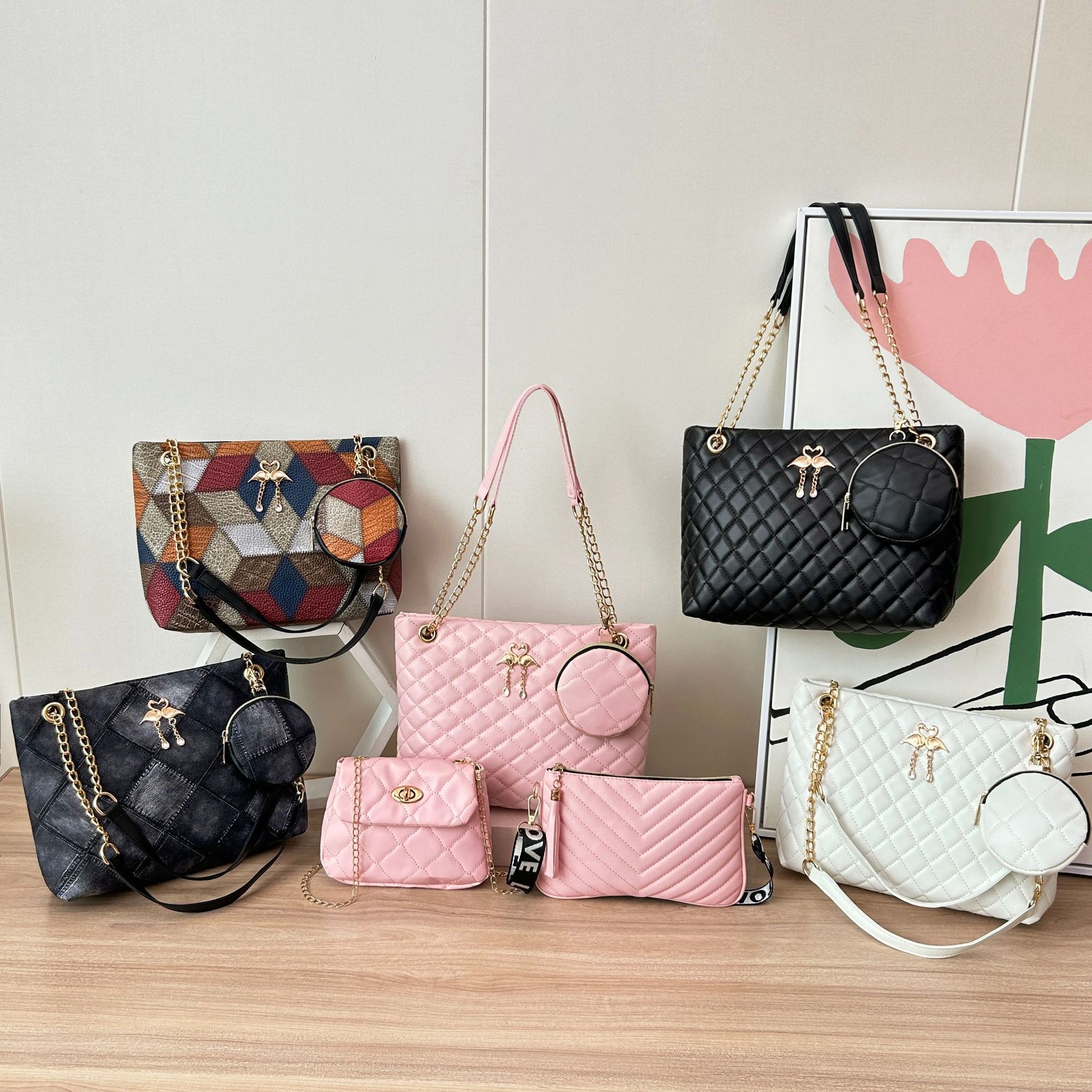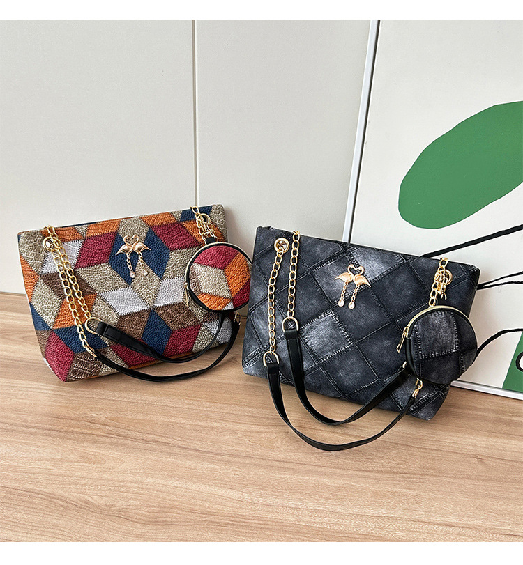 2024 한국 여성 어깨 메신저 가방 대용량 플랫 펜던트 펜던트 체인 핸드백 백 제조 업체 도매