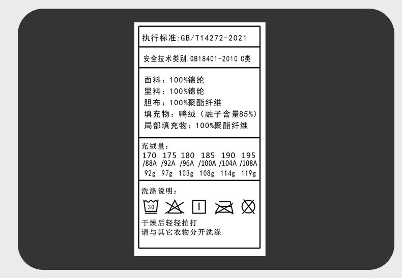 안감성분 함량