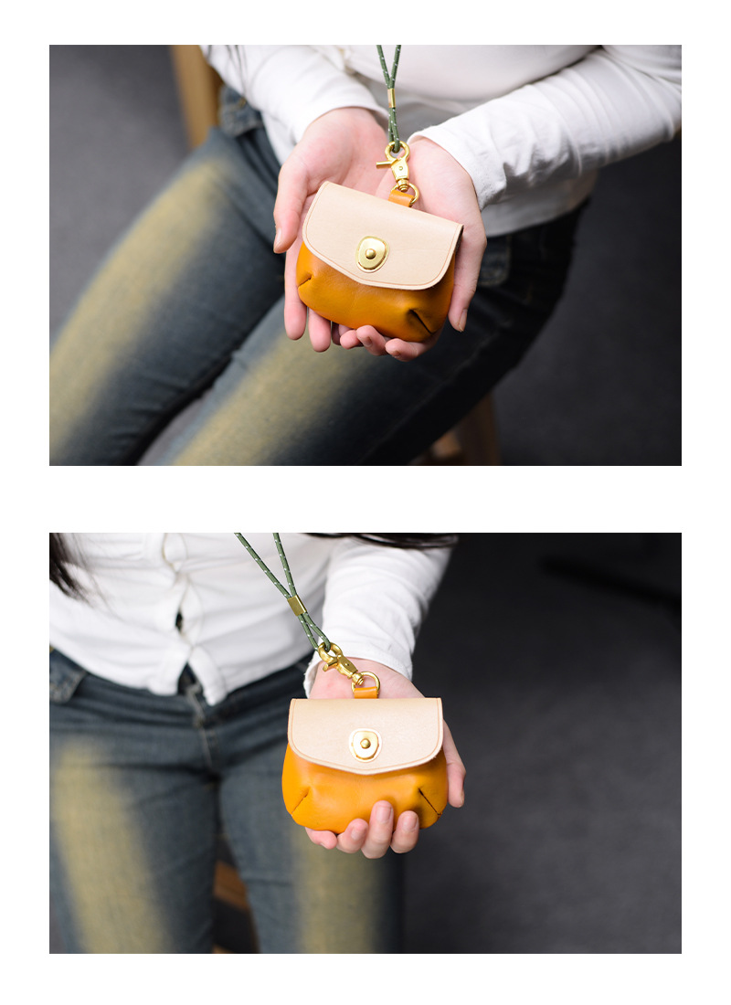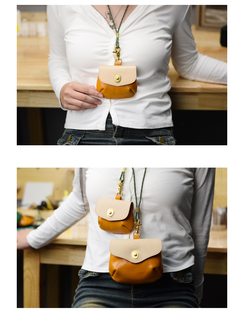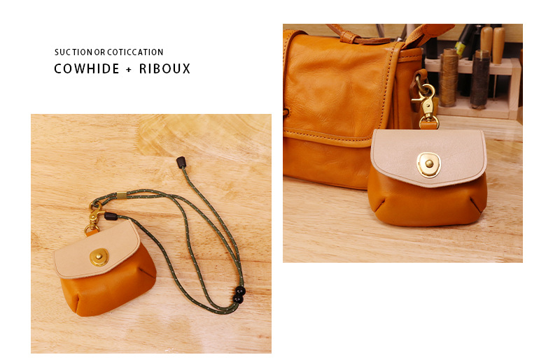 새로운 첫 번째 레이어 소 가죽 동전 지갑 스티칭 컬러 야채 무두질 가죽 모든 경기 저장 헤드폰 가방 목 동전 지갑