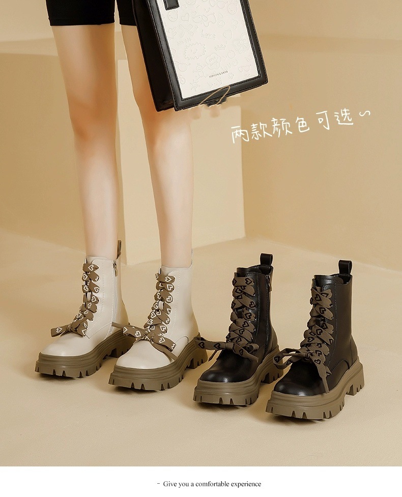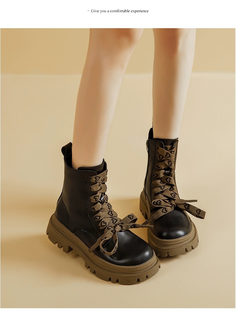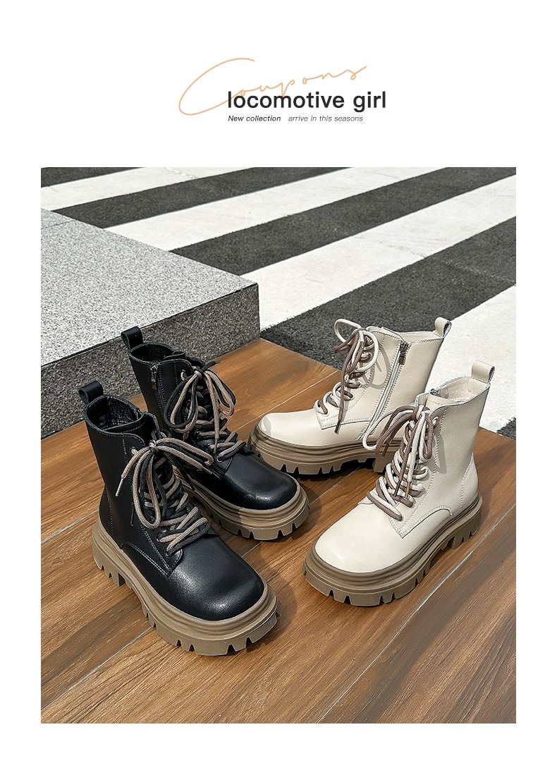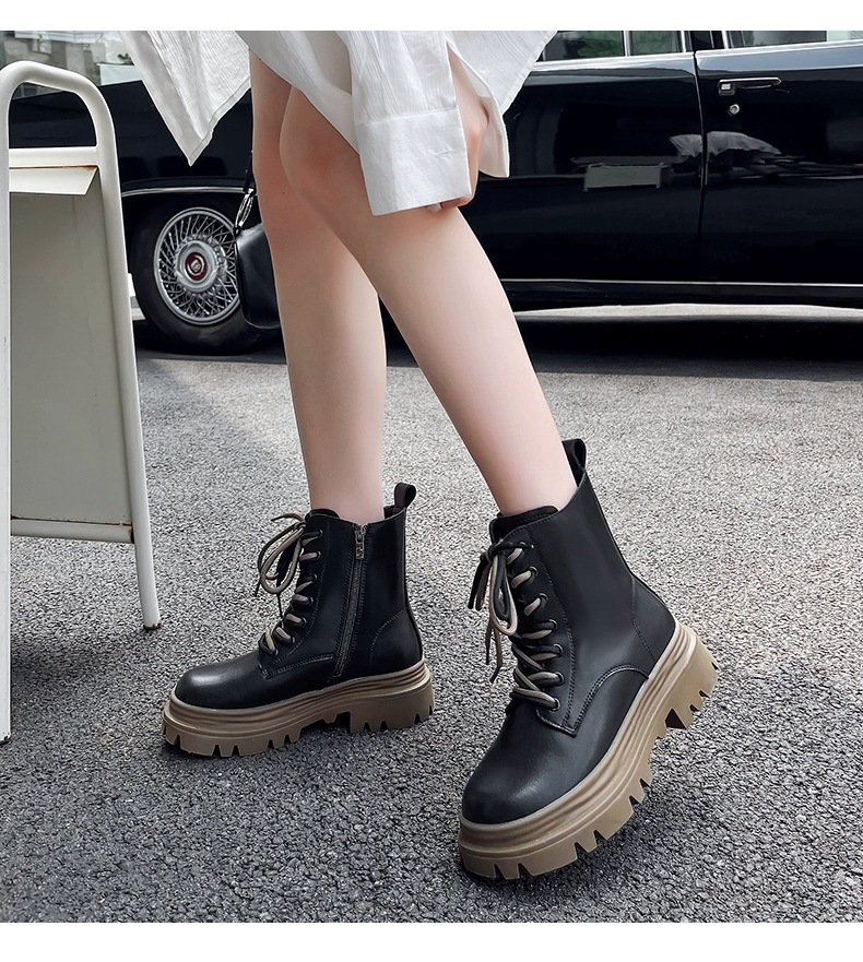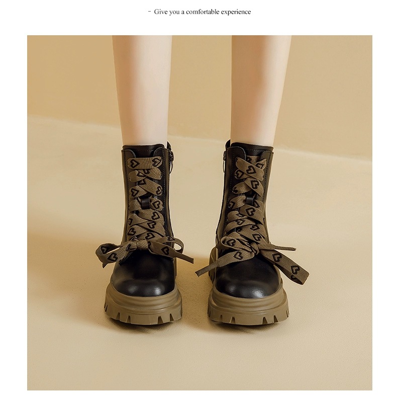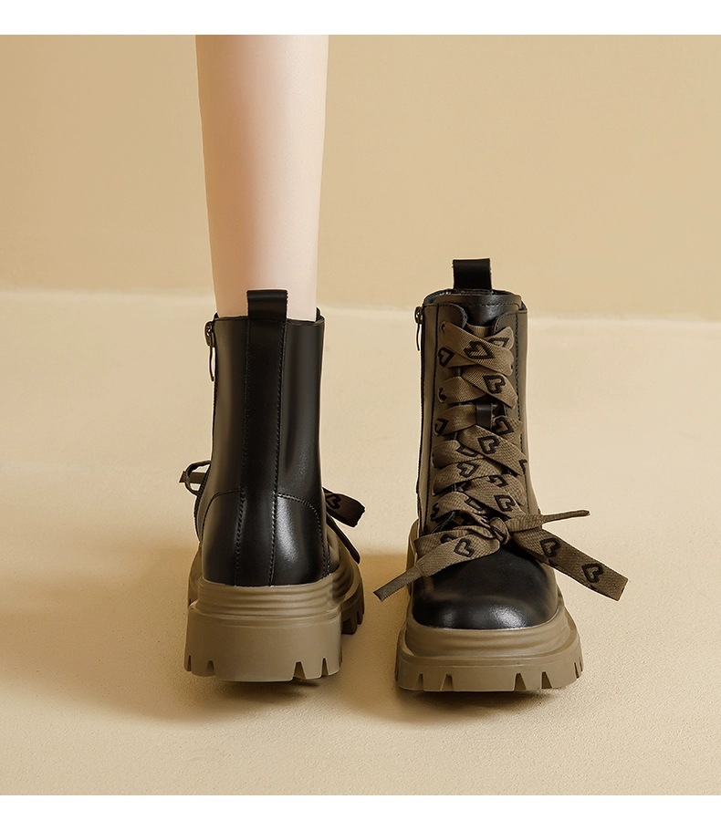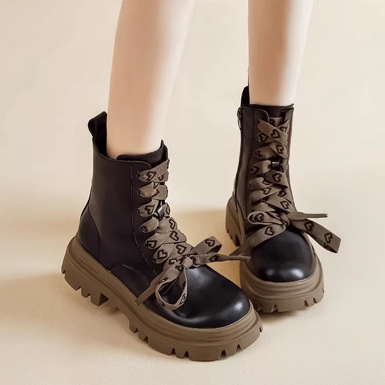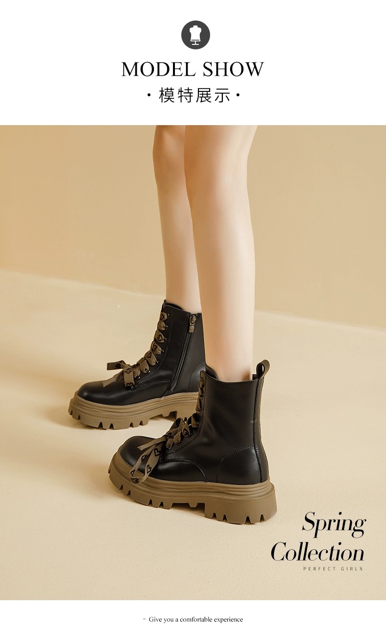 영국 스타일 마틴 부츠 여성 2024 새로운 봄 및 가을 싱글 부츠 스커트 미디엄 부츠가있는 블랙 두꺼운 부츠