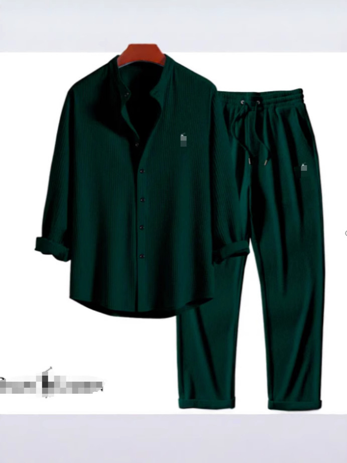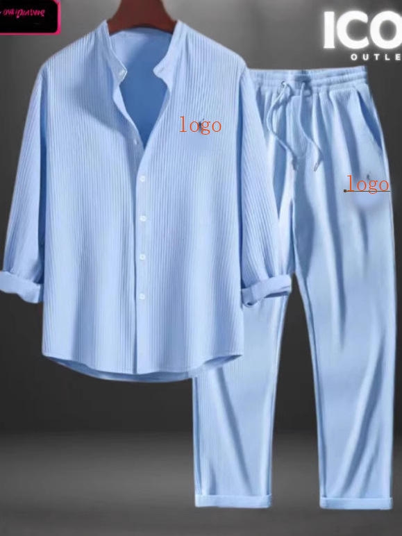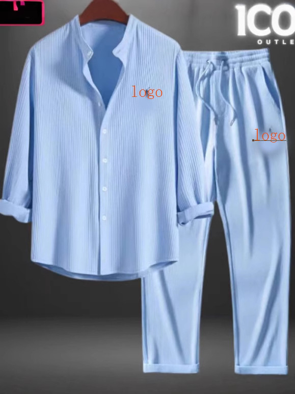 2024 유럽과 미국의 AliExpress 대외 무역 독립 웹 사이트 남성 캐주얼 루즈 멀티 컬러 비치웨어 코튼과 린넨 반팔 양복 2 피스