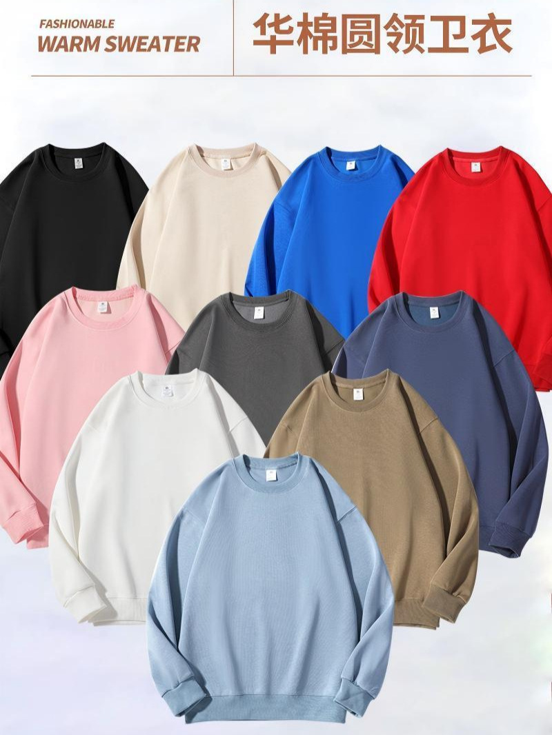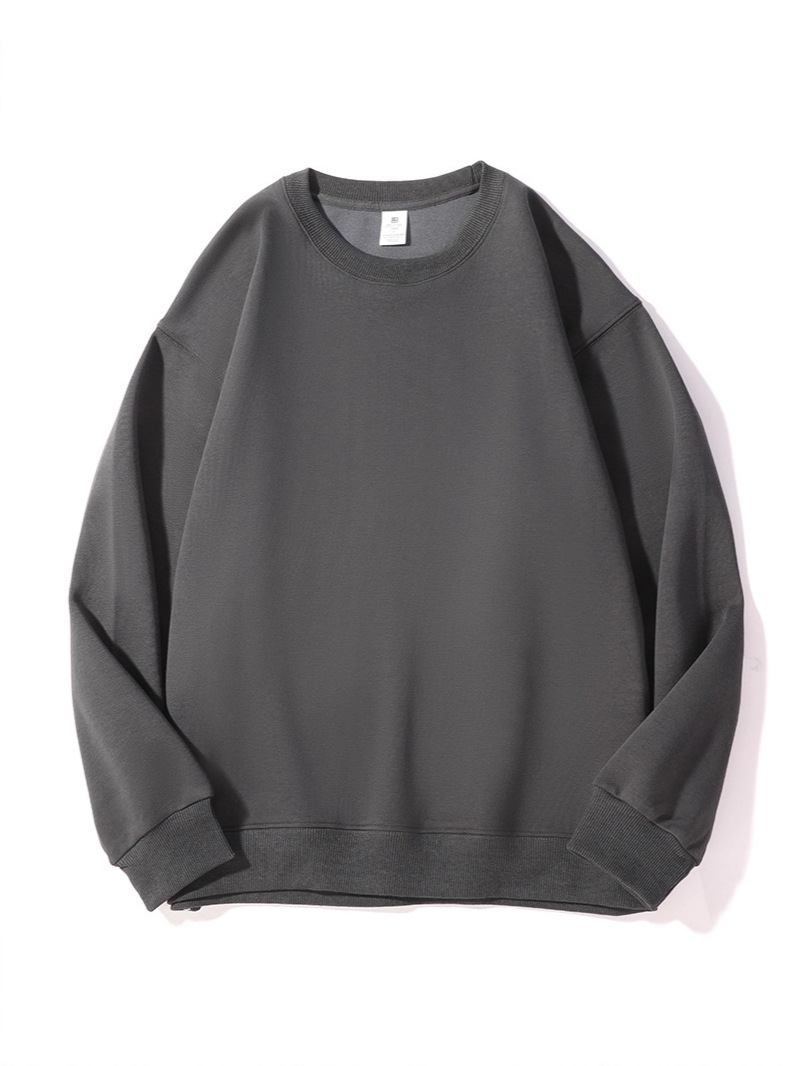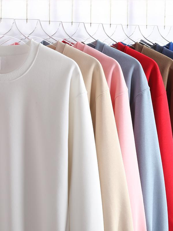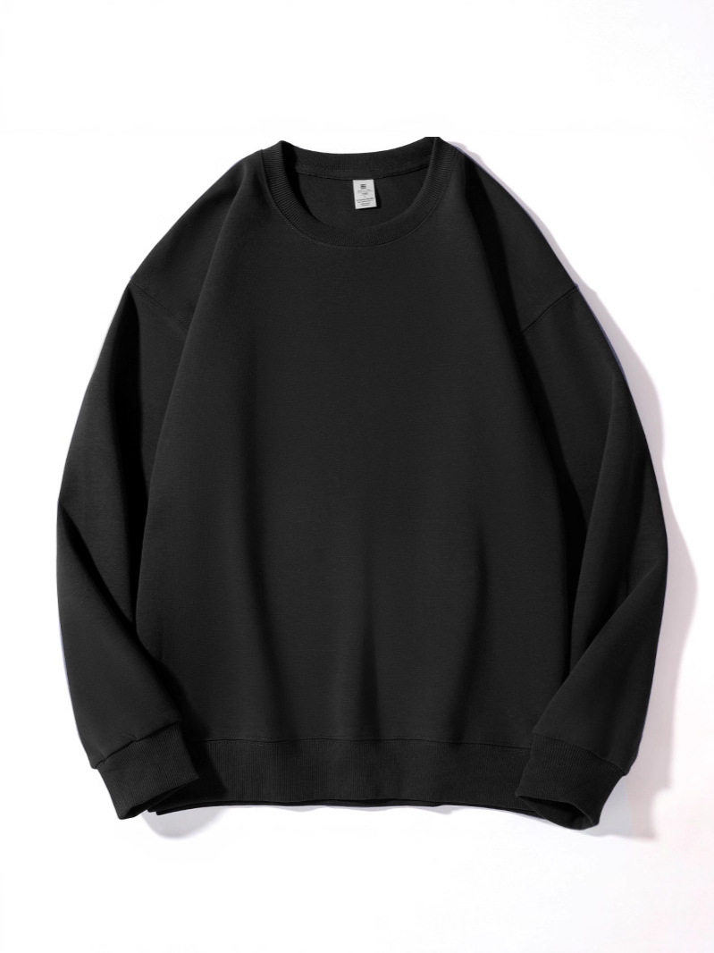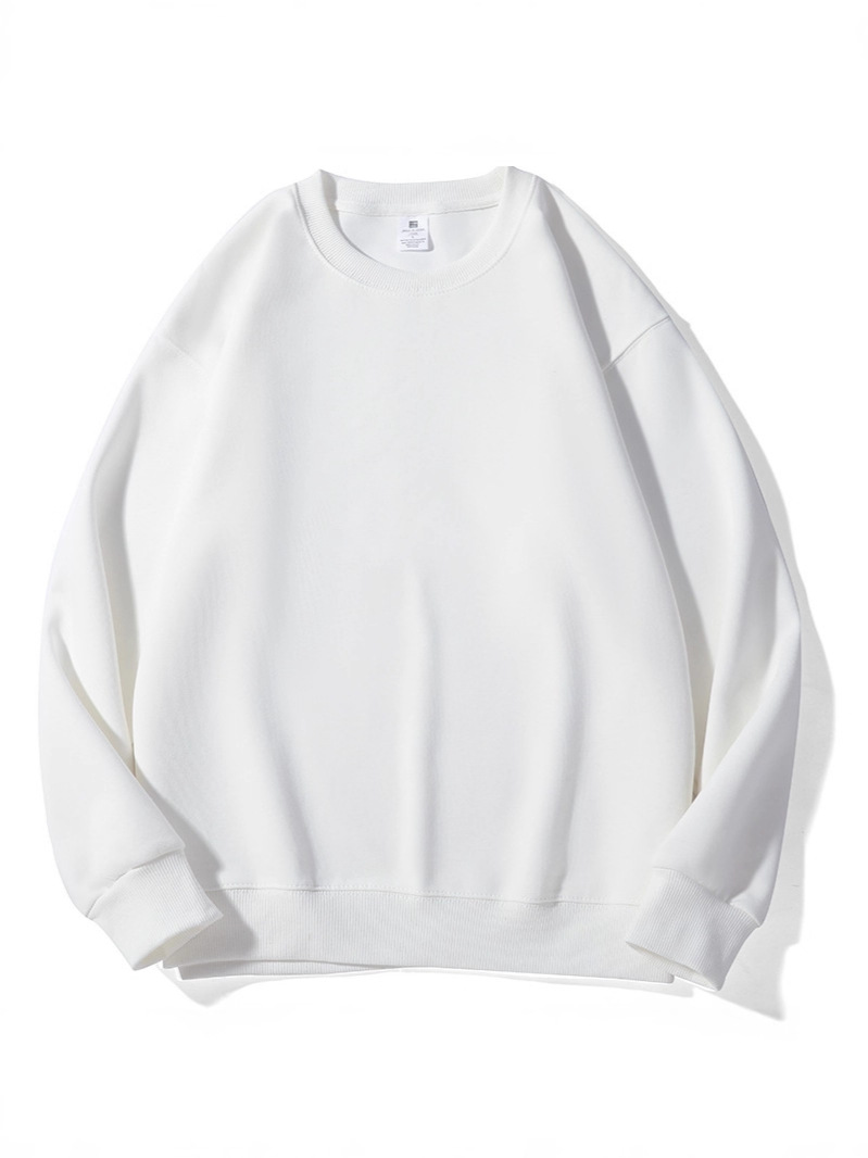 미국식 헤비웨이트 플리스 스웨트셔츠 남성용 라운드넥 긴팔 티셔츠 가을 겨울 이너웨어 루즈핏 단색 흰색 베이스 셔츠