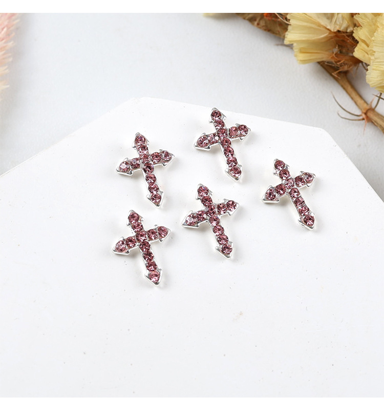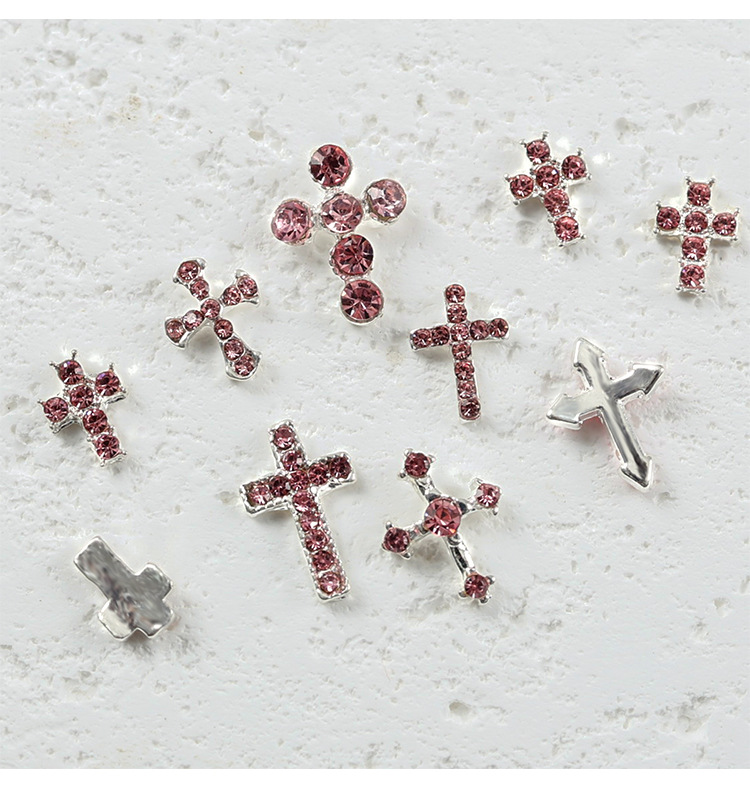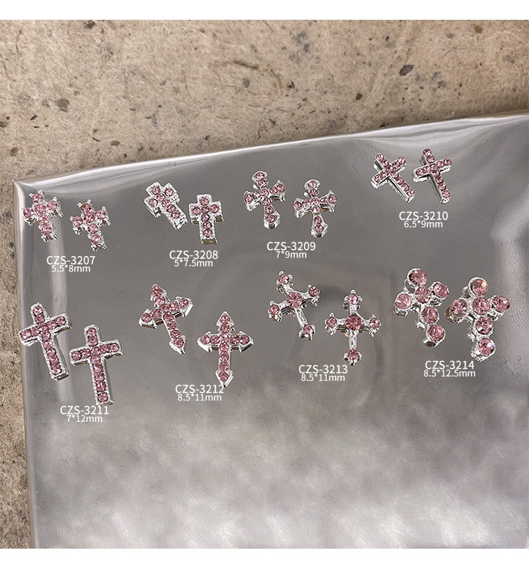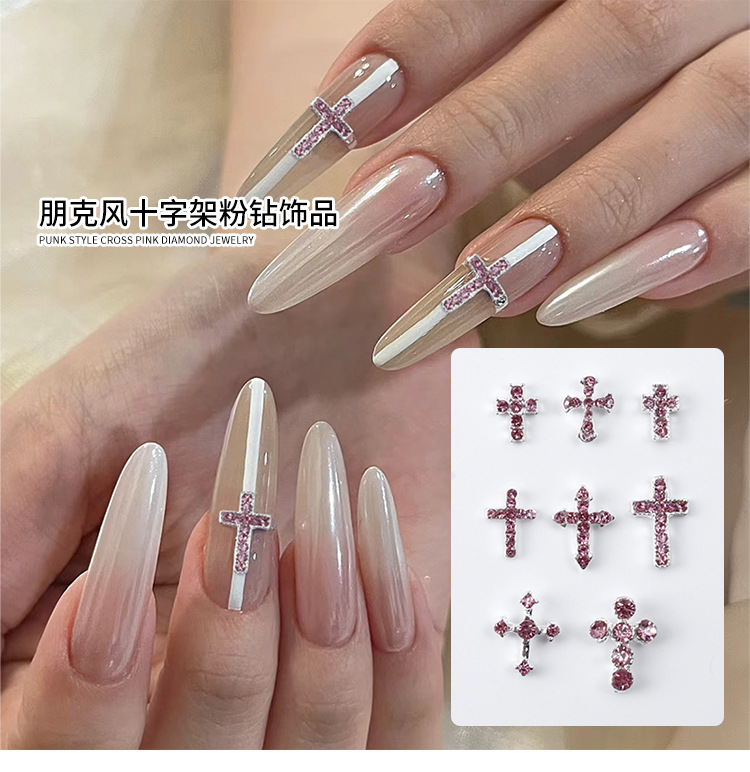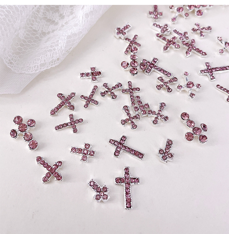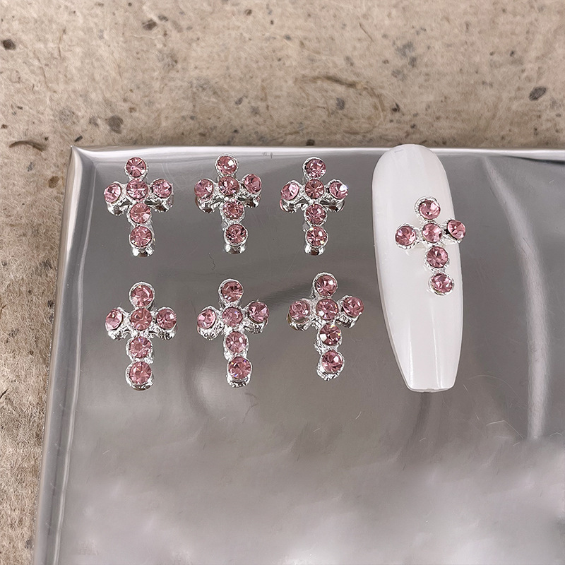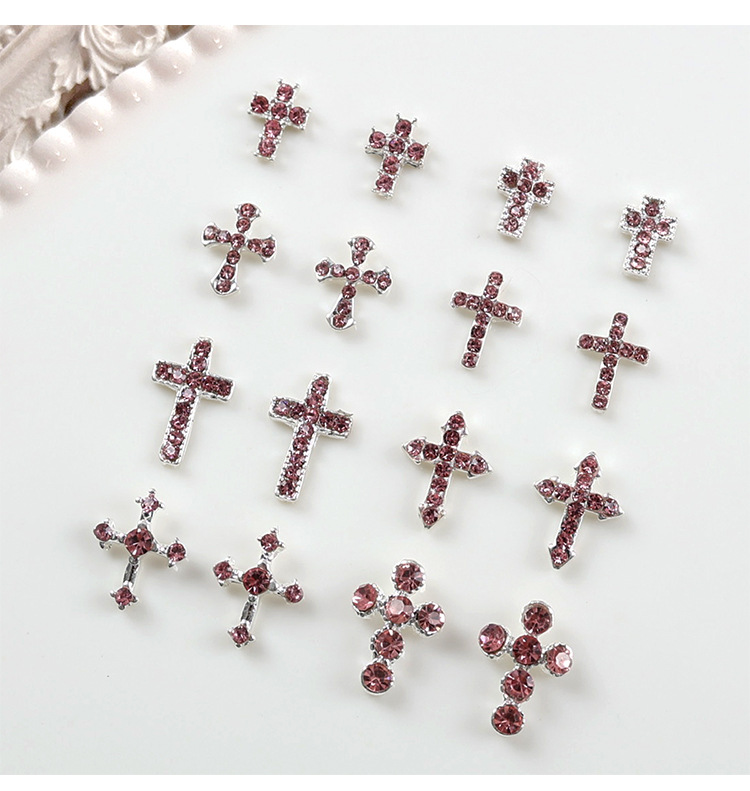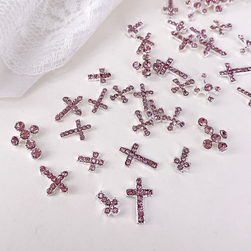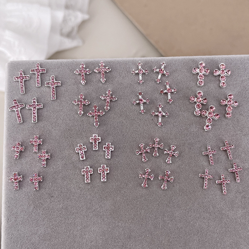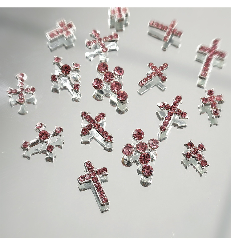 뉴 네일 아트 크로스 합금 보석 핑크 슈퍼 플래시 풀 다이아몬드 펑크 크론 하트 실버 네일 다이아몬드 쥬얼리
