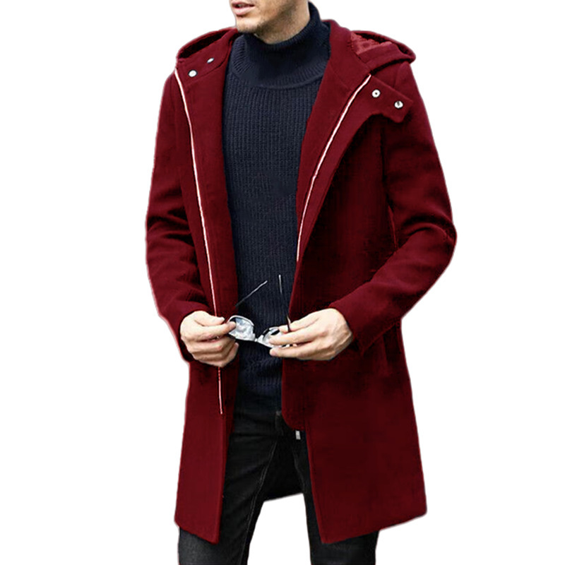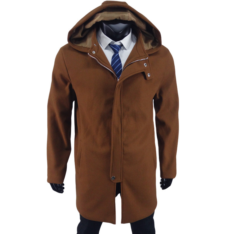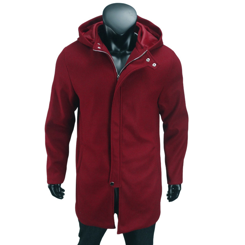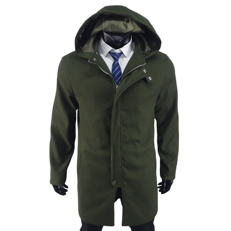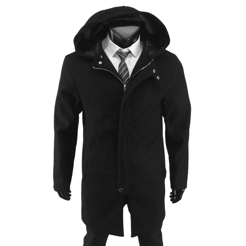 겨울 모직 외투 겨울 긴 플러스 사이즈 지퍼 모직 코트 유럽과 미국 남성 코트