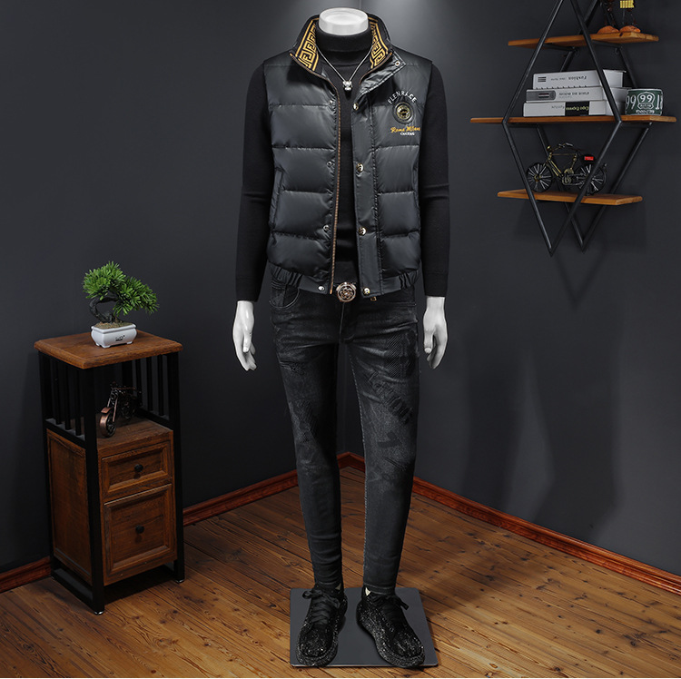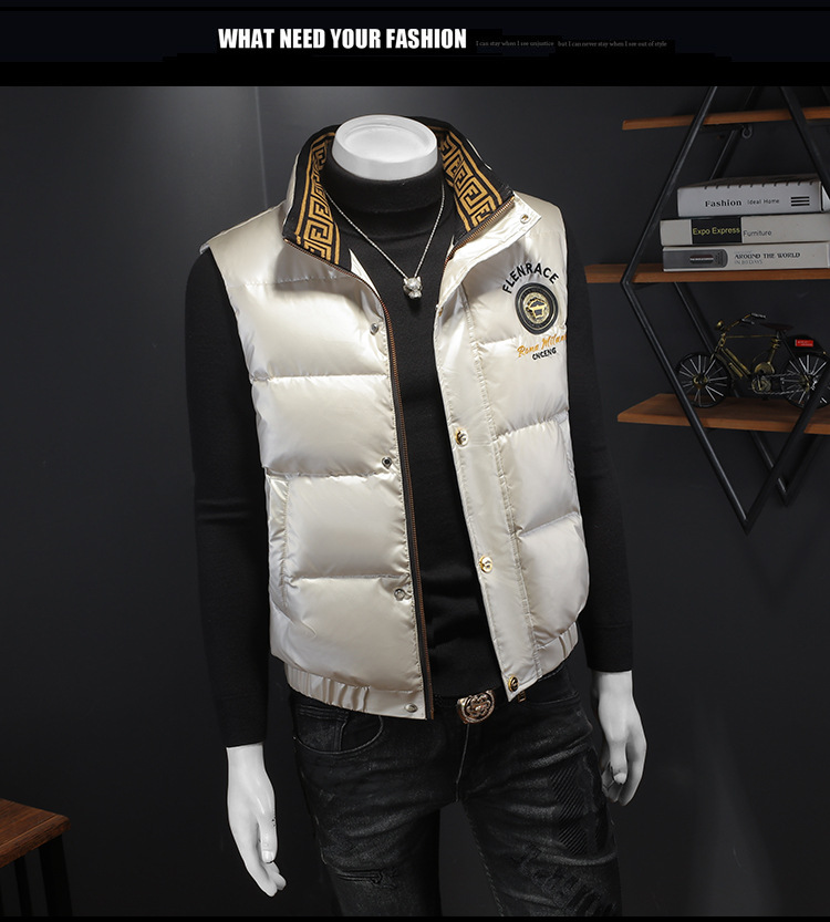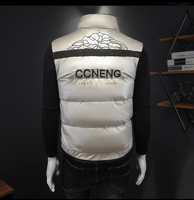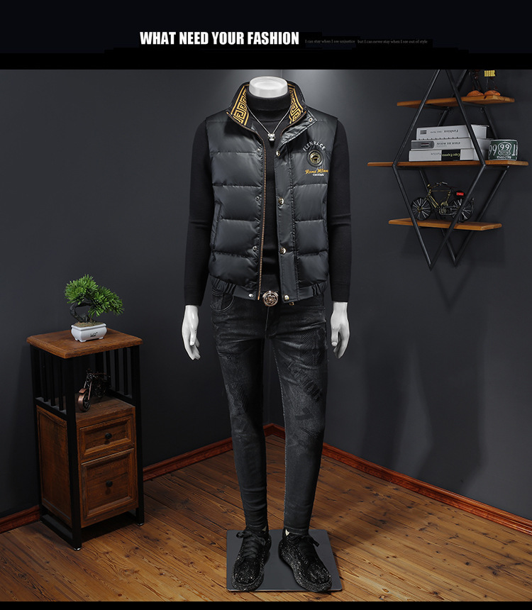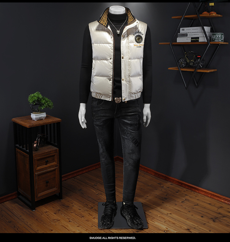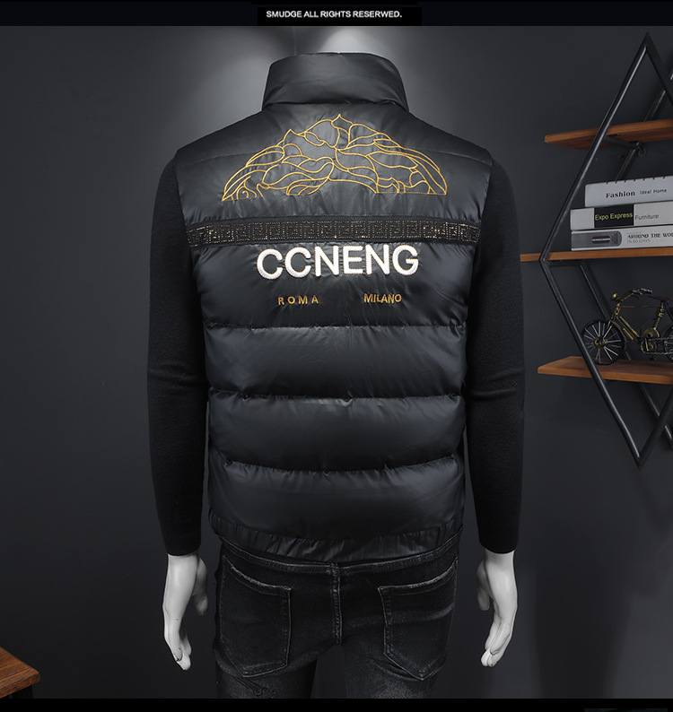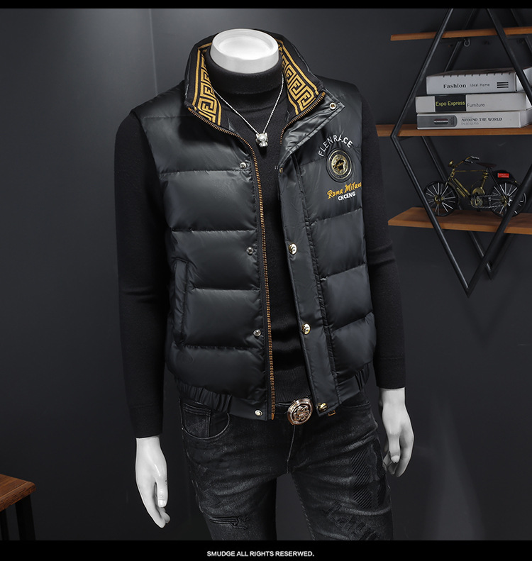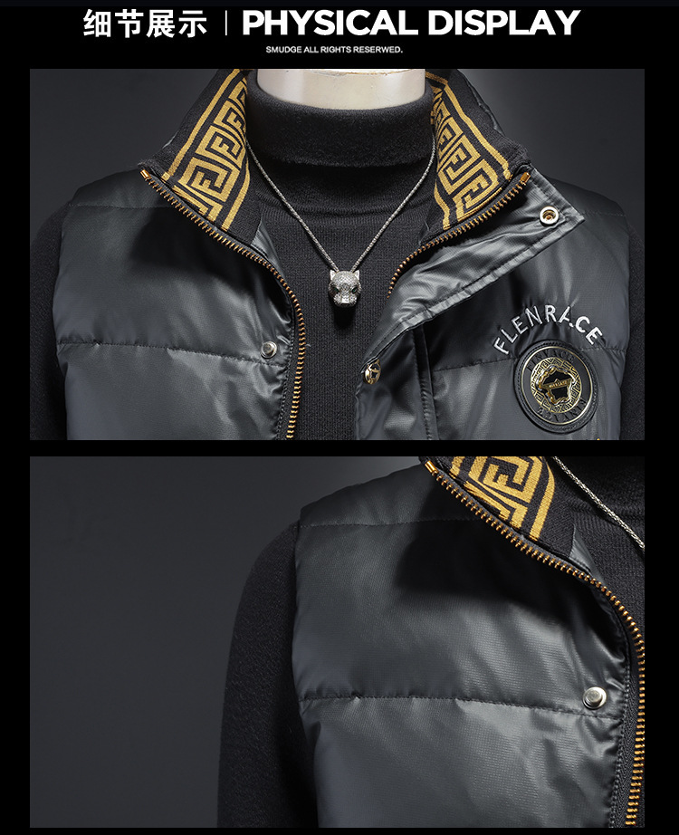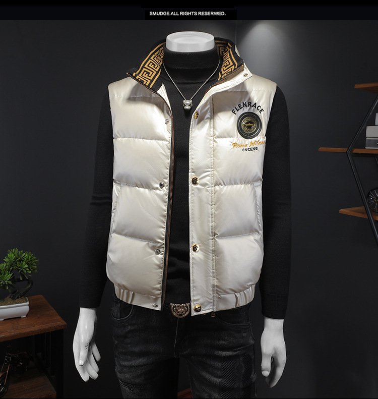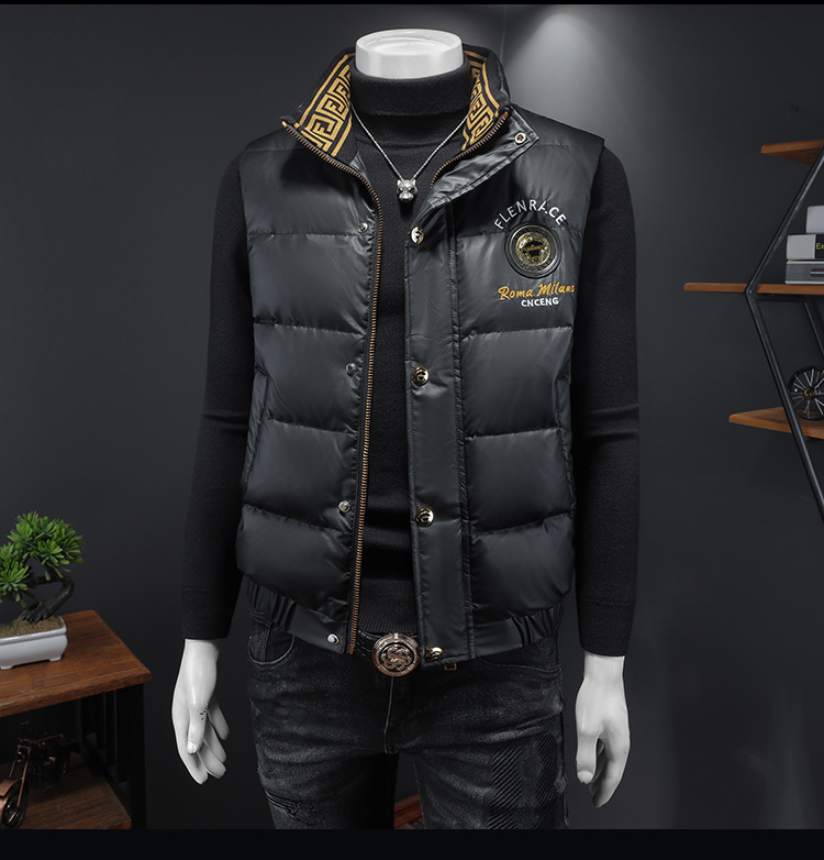 2024 겨울 새로운 90% 흰 오리 다운 조끼 가짜 블랙 블랙 화이트 셔닐 스판덱스