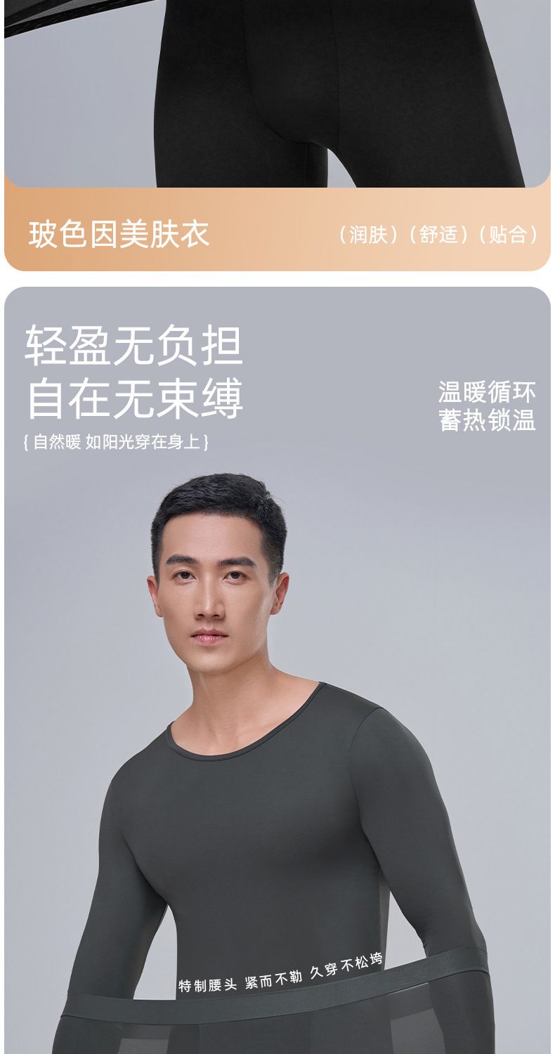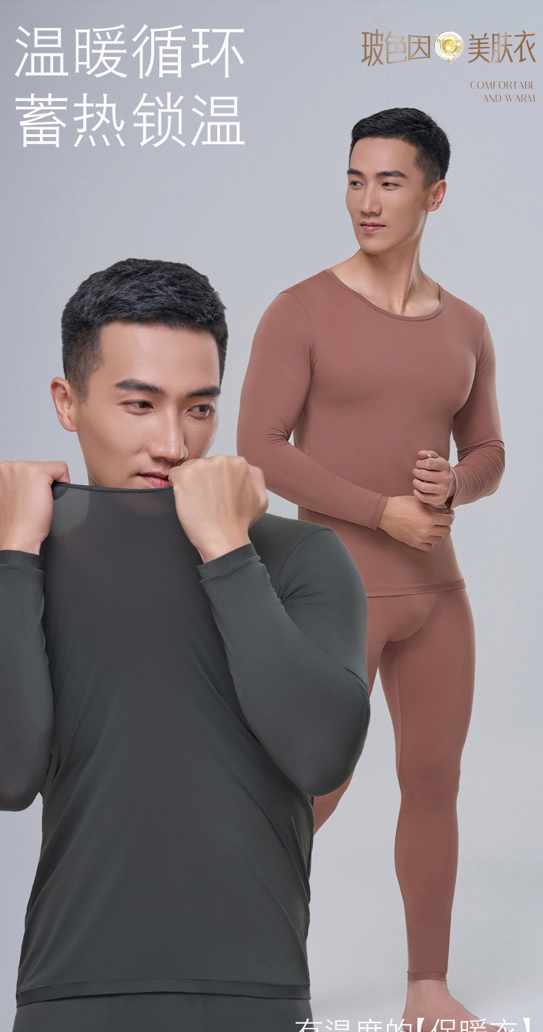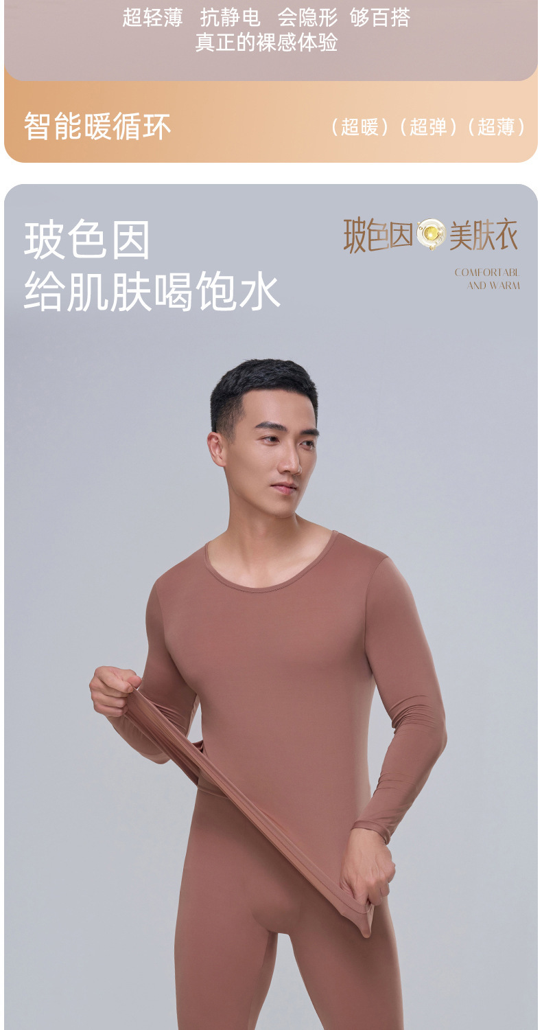 남성용 Hyaluronic Acid Skin-beautifiing Clothes 따뜻한 세트 초박형 및 Traceless 가을 의류 및 바지 보세 피부 보습 열 속옷