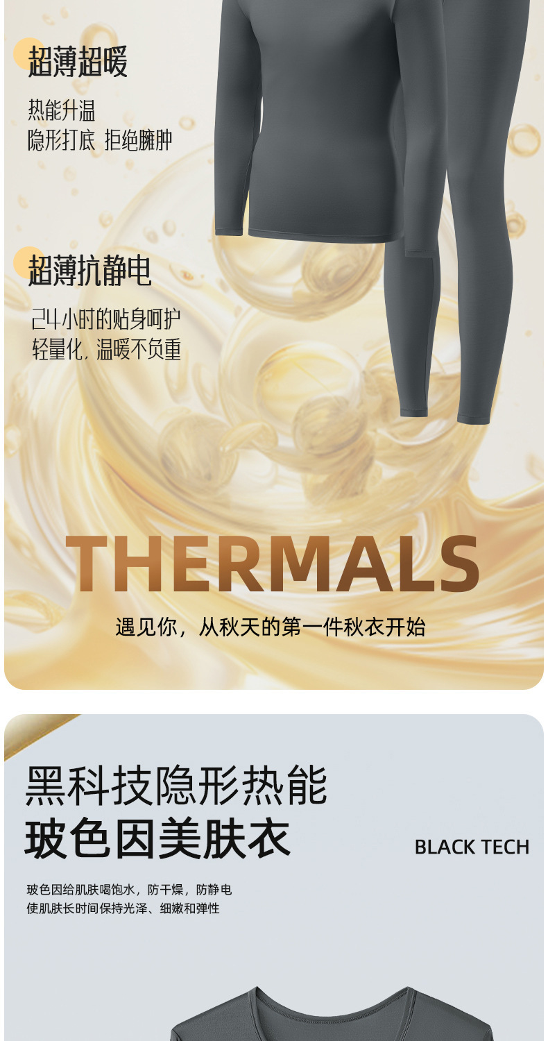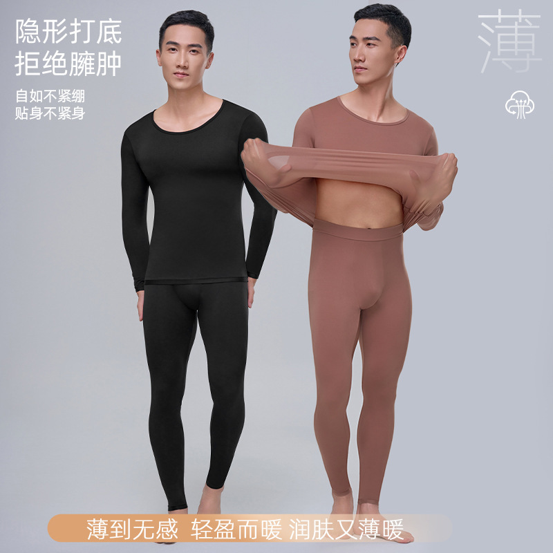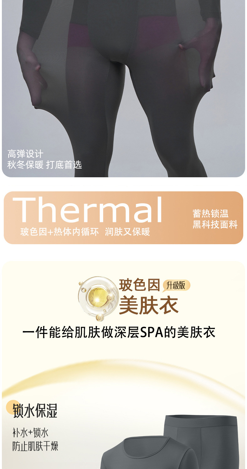 남성용 Hyaluronic Acid Skin-beautifiing Clothes 따뜻한 세트 초박형 및 Traceless 가을 의류 및 바지 보세 피부 보습 열 속옷