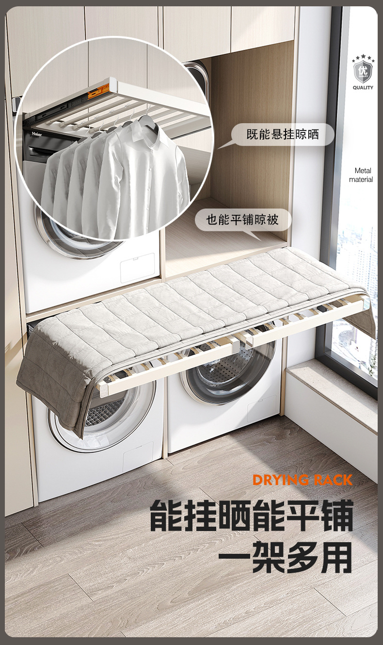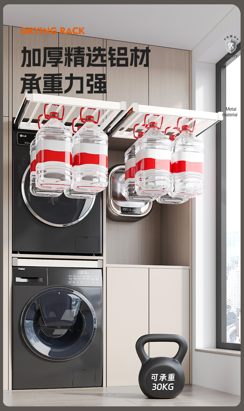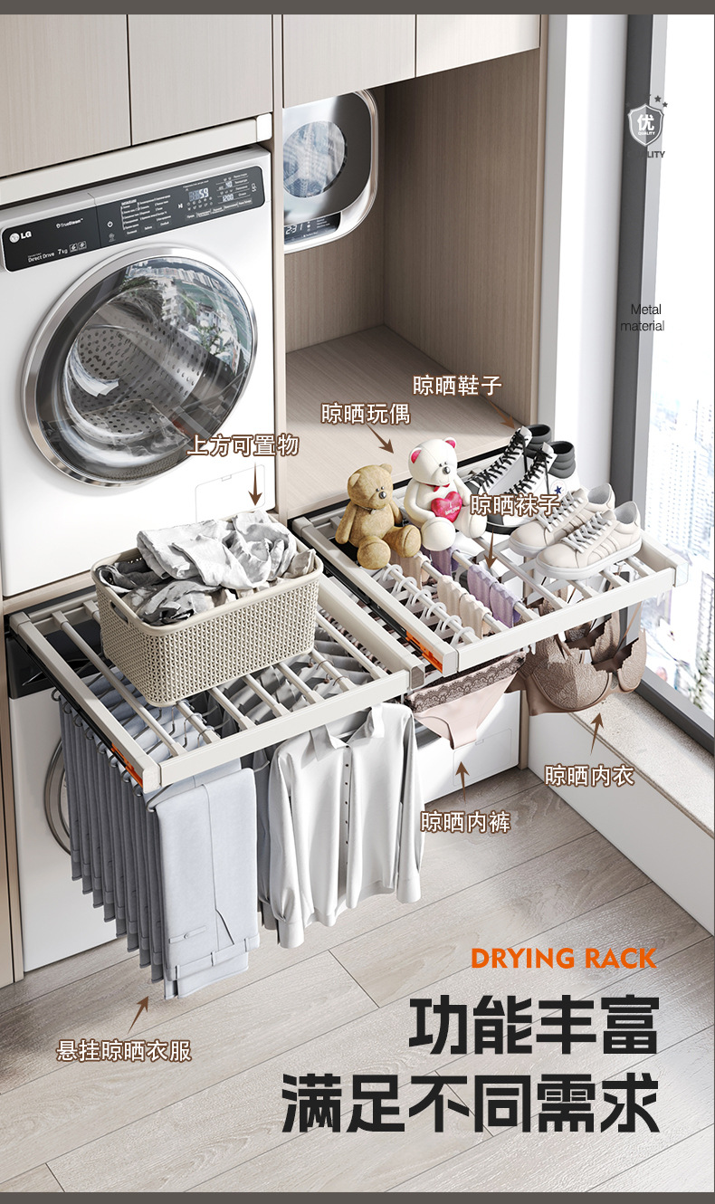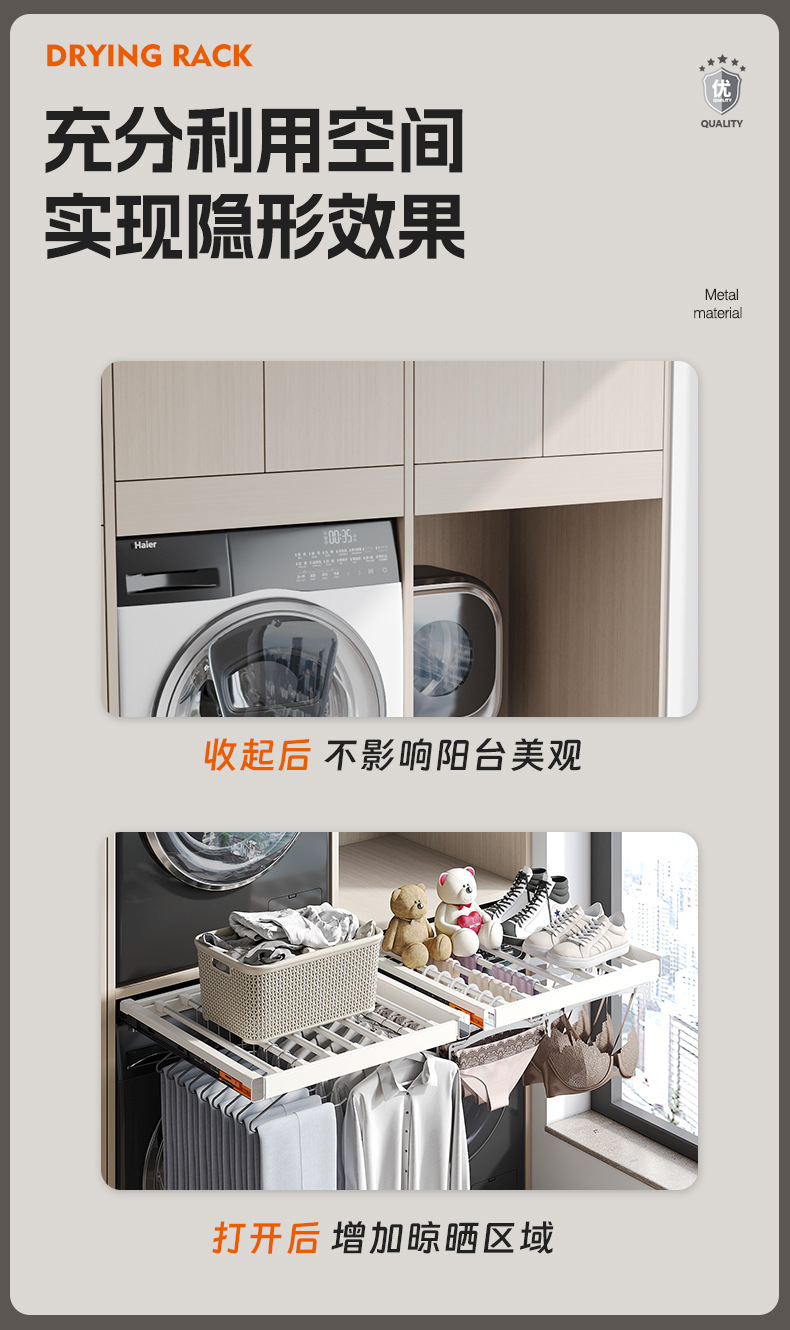 세탁기용 풀아웃 옷걸이, 발코니 위에 있는 보이지 않는 옷걸이, 텔레스코픽 슬라이딩 바지걸이, 풀아웃 수납선반