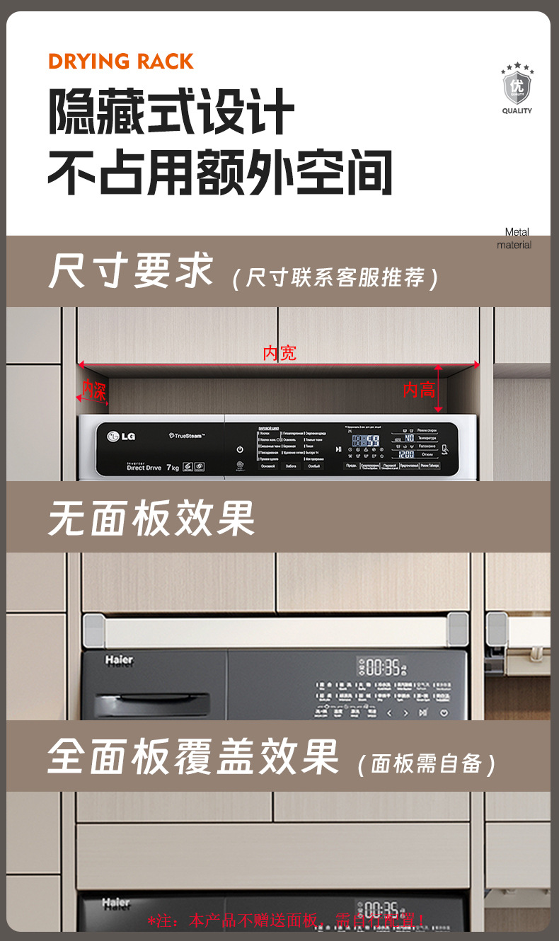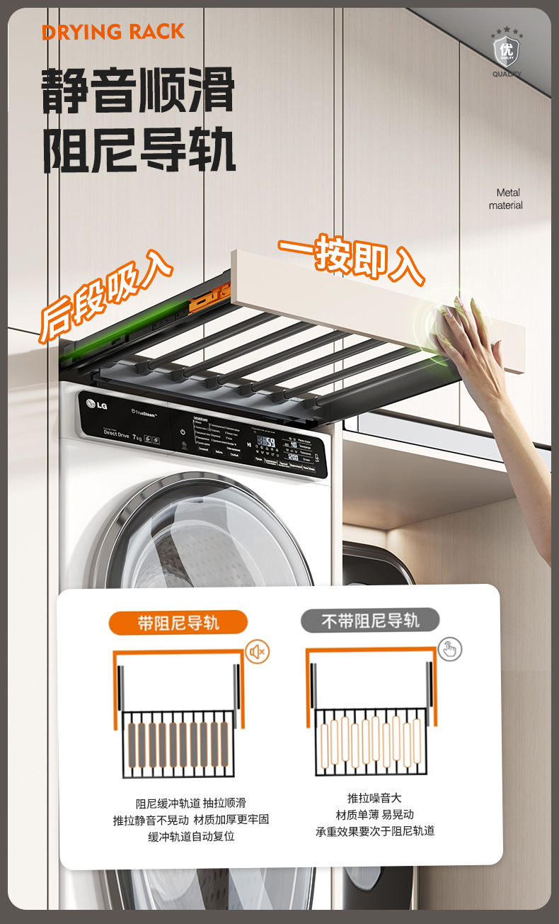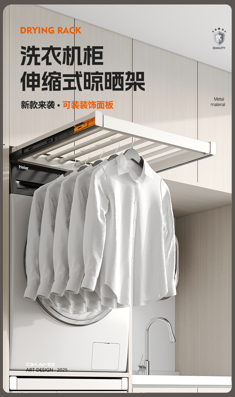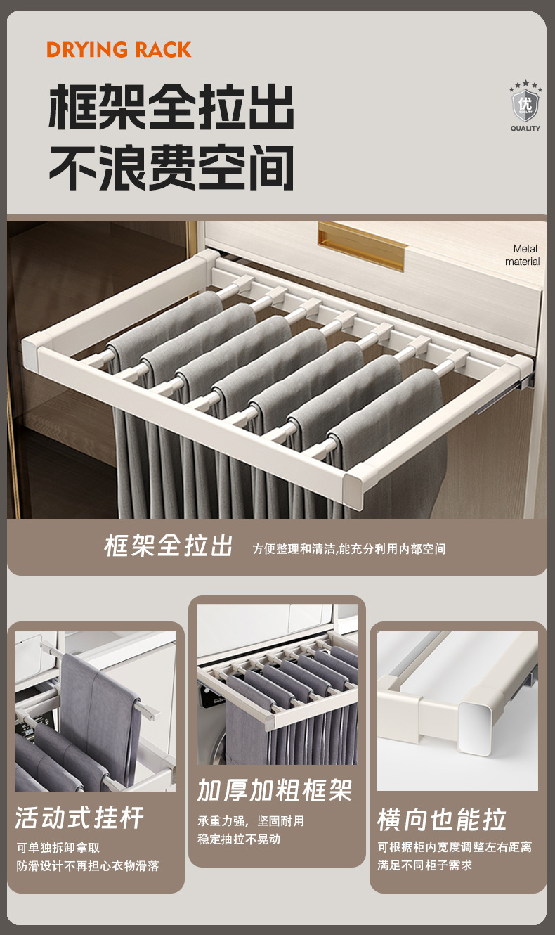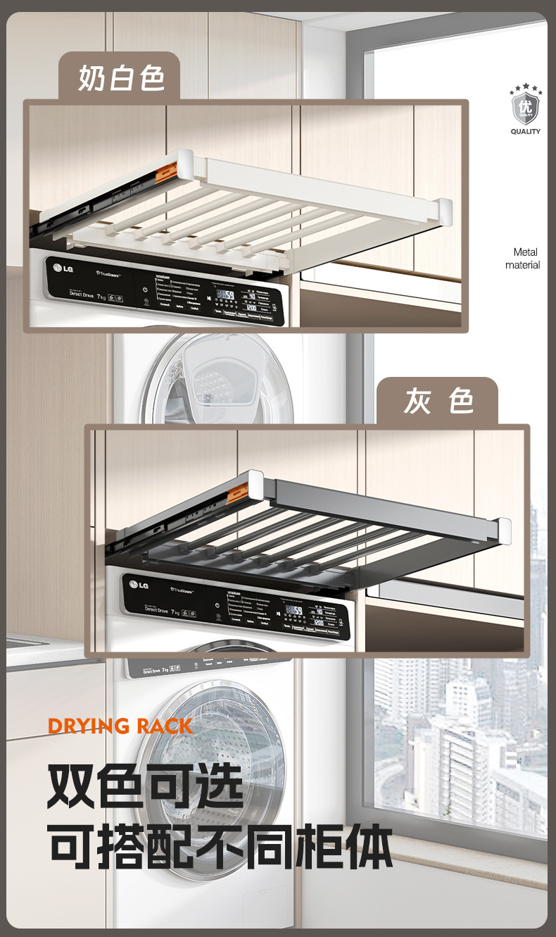 세탁기용 풀아웃 옷걸이, 발코니 위에 있는 보이지 않는 옷걸이, 텔레스코픽 슬라이딩 바지걸이, 풀아웃 수납선반