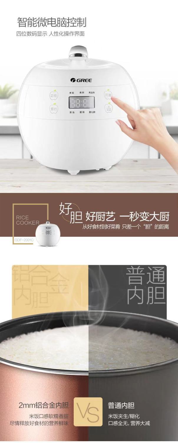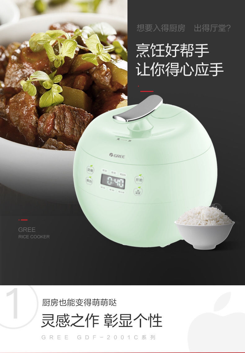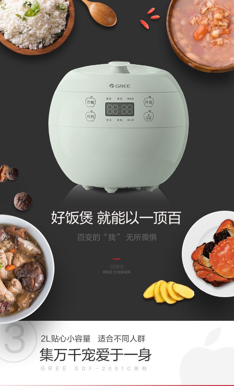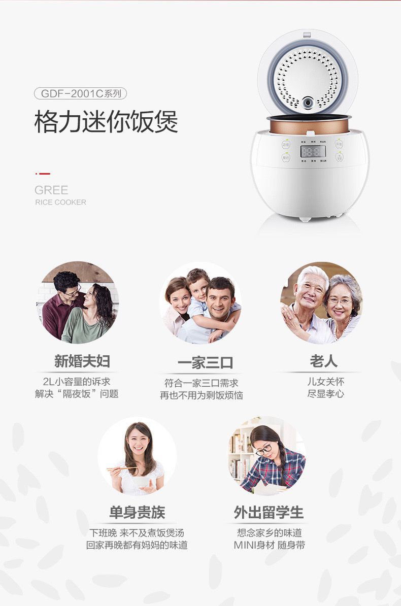 그리 전기밥솥 GDF-2001C 가정용 2L 사무실 기숙사용 스마트 미니 다기능 예약 기능