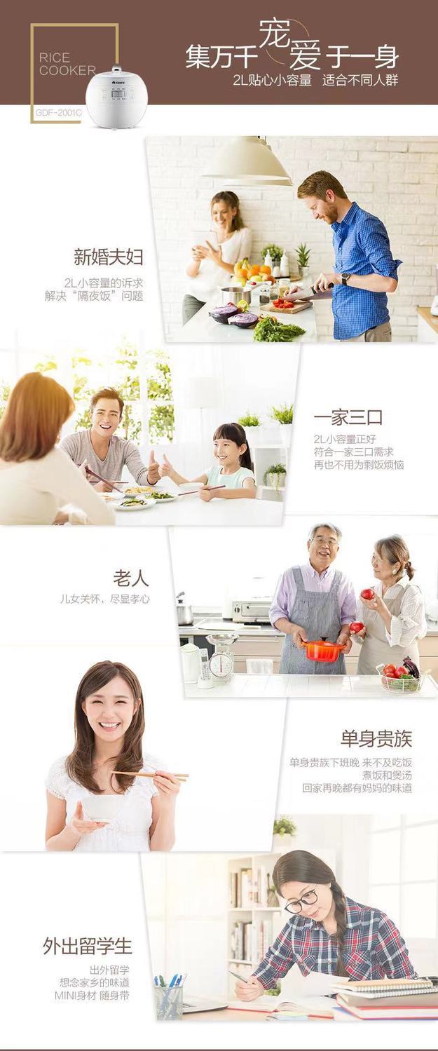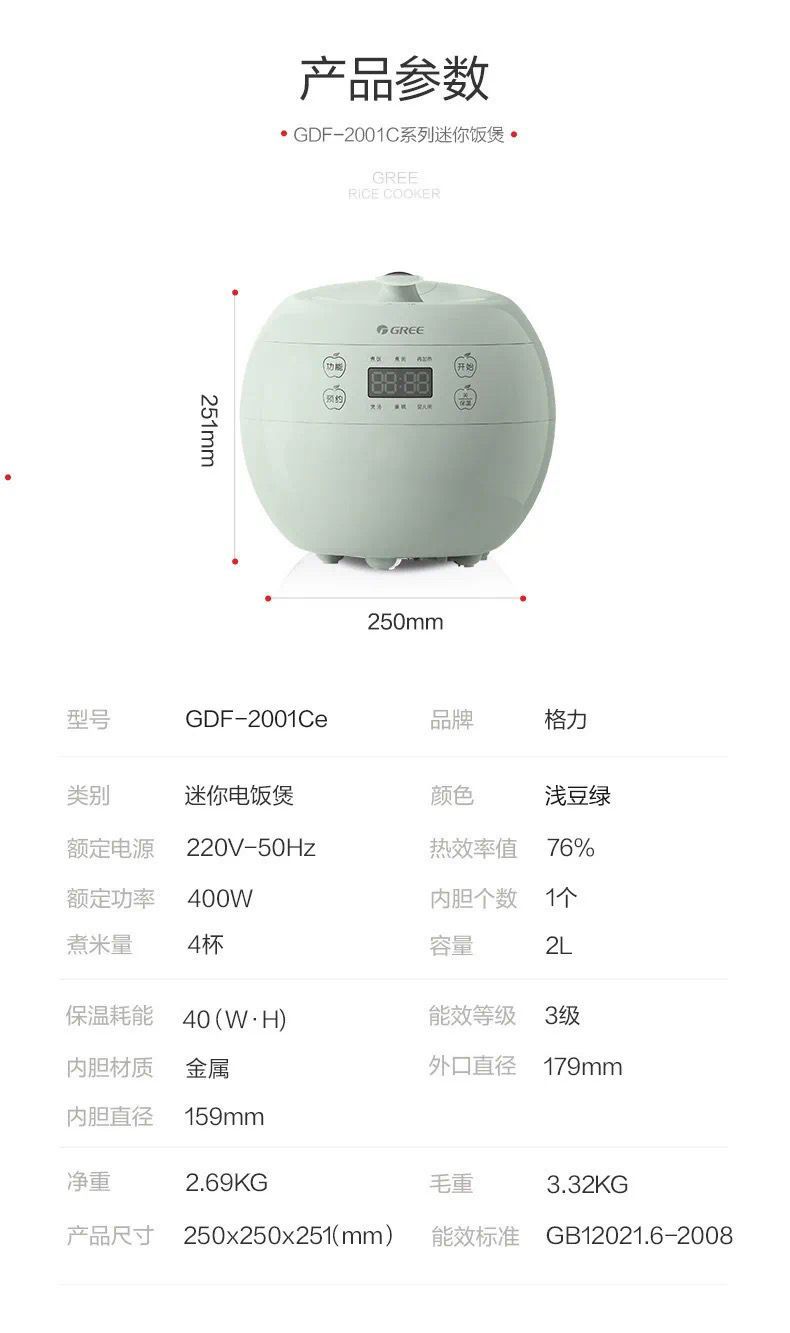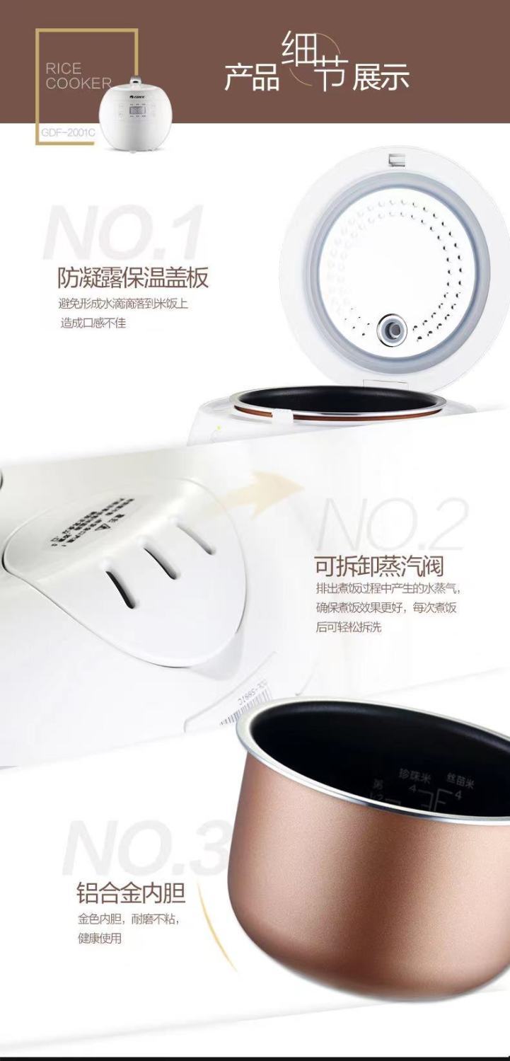 그리 전기밥솥 GDF-2001C 가정용 2L 사무실 기숙사용 스마트 미니 다기능 예약 기능