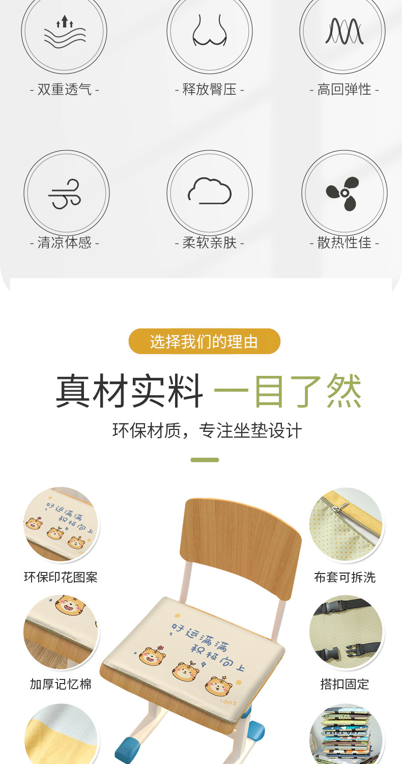 학생용 시트쿠션, 초중등학생용 메모리폼 직사각형 의자쿠션, 버클형 스펀지 의자쿠션, 모던하고 심플한 디자인