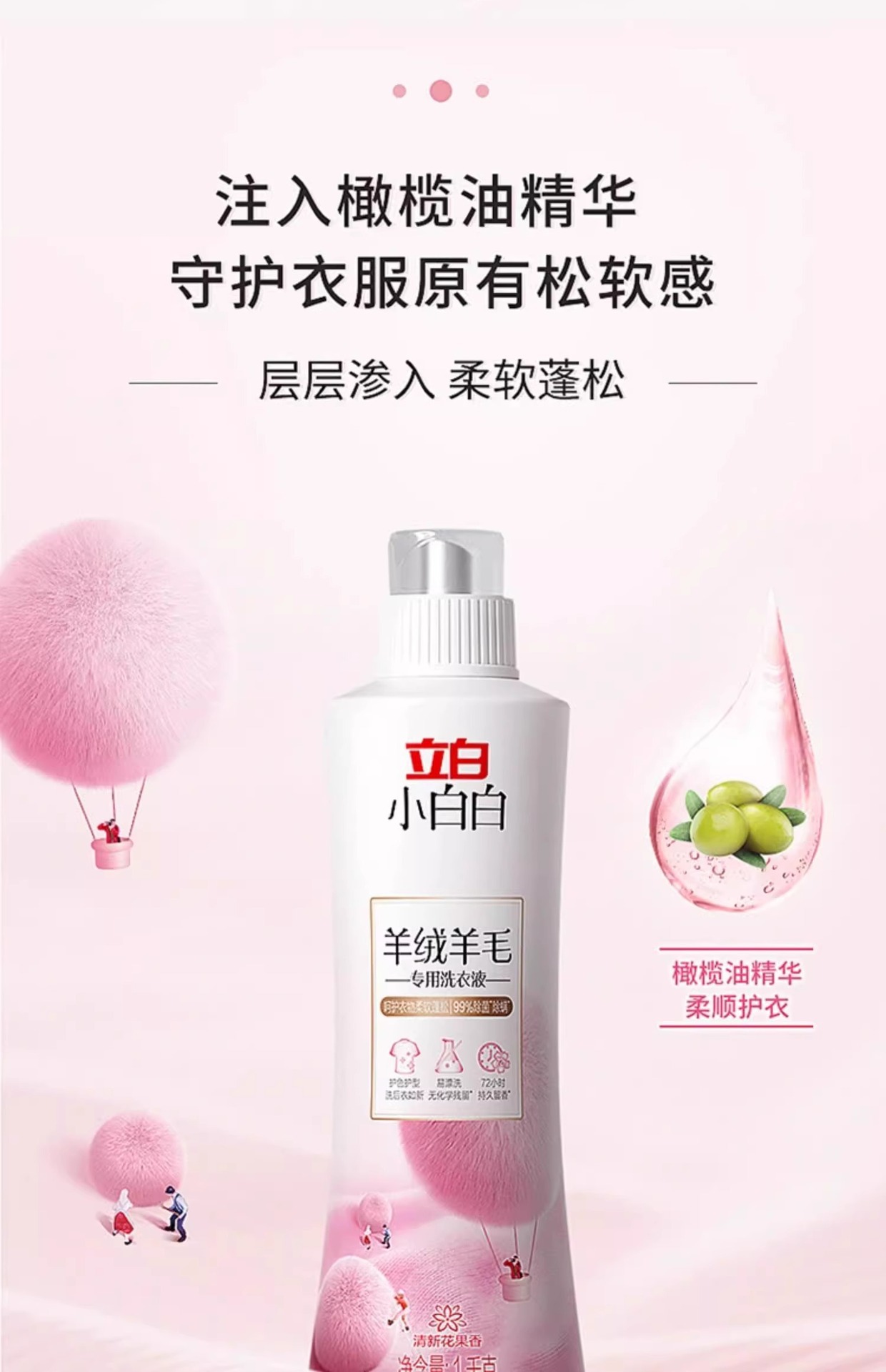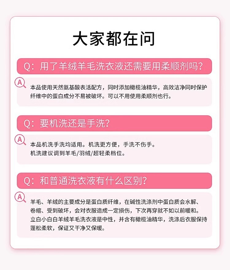 Libai 작은 흰색 캐시미어 울 특수 세탁 세제 1kg 기계 손 세척 부드러운 솜털 정품 도매