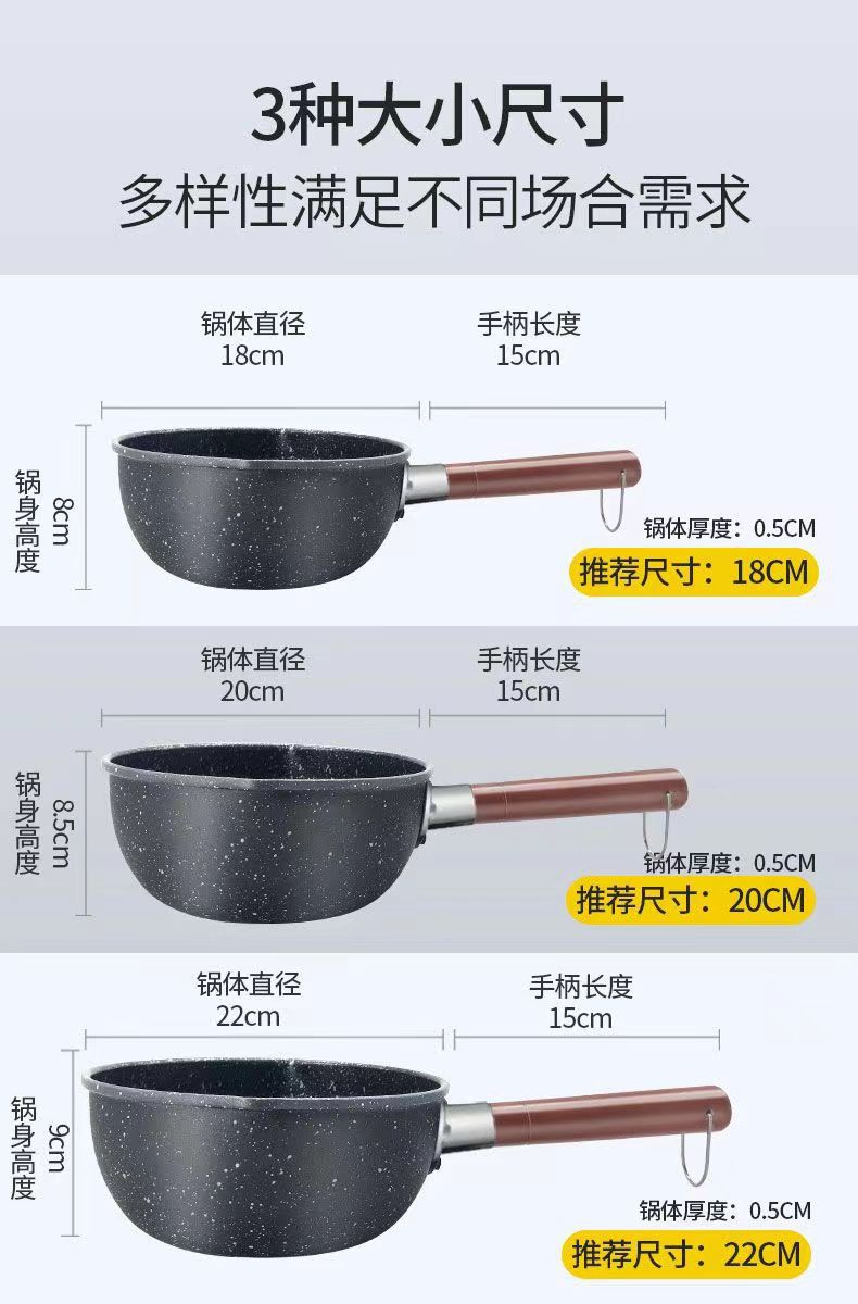 일본식 스노우 팬 베이비 푸드 보충 팬 의료용 스톤 작은 우유 팬 가정용 비 스틱 팬 유도 밥솥 가스 스토브 유니버설