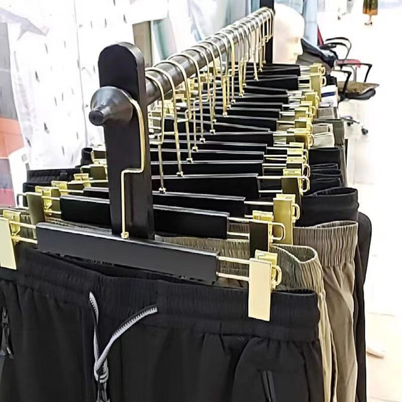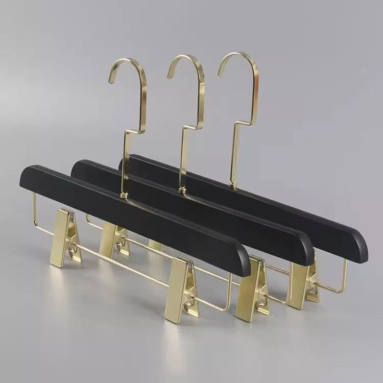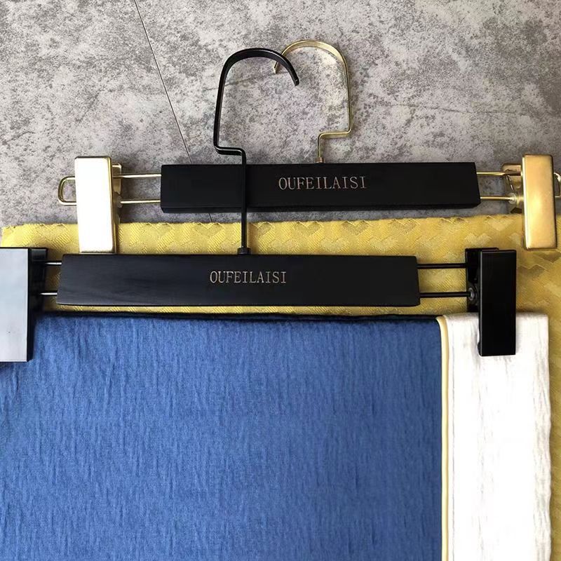 검정색 원목 옷걸이 바지걸이 도매 의류 매장 남녀 바지 클립 나무 미끄럼 방지 옷걸이 건조대 수납