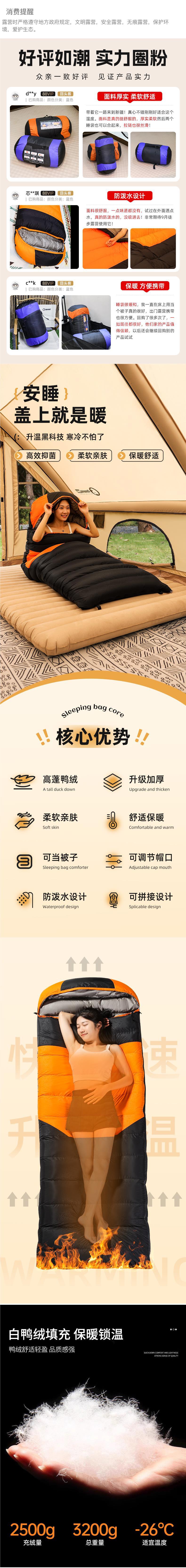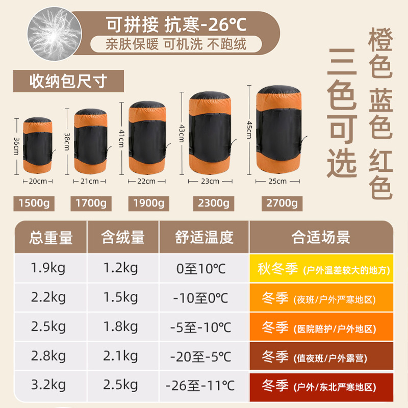 아래로 침낭 성인 두껍게 한랭 방지 야외 영하 30 도 겨울 캠핑 사무실 점심 시간에 근무