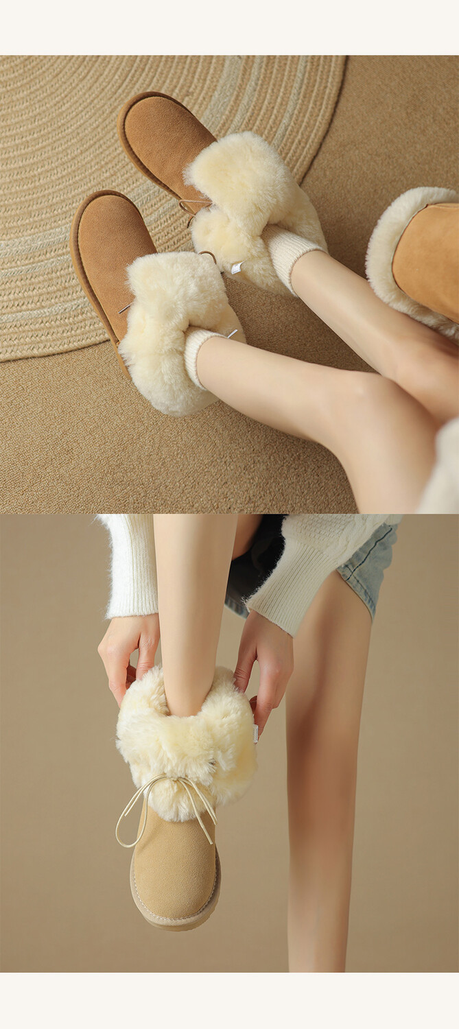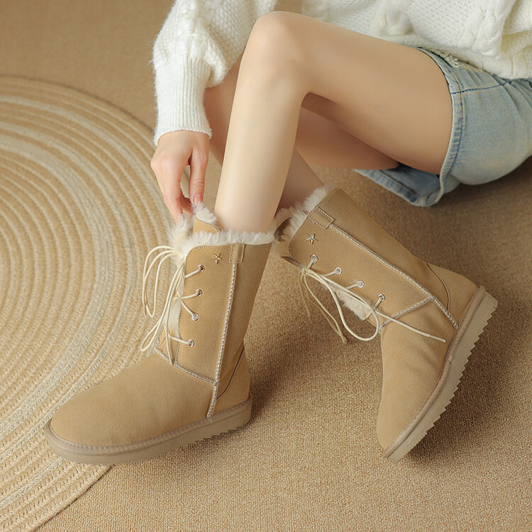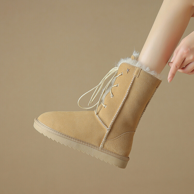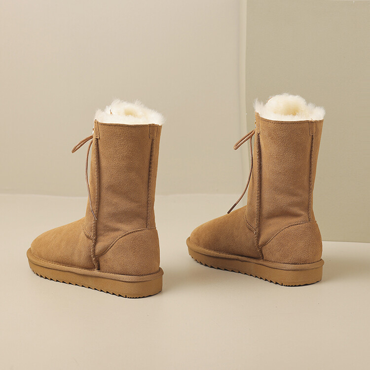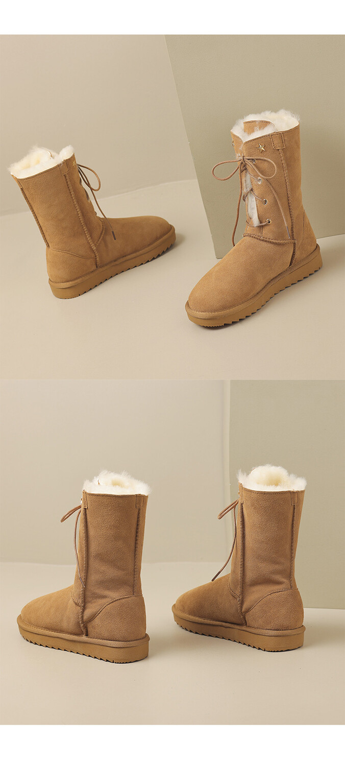 동북 기모 따뜻한 야외 편안한 대형 코튼 신발 마룬 라운드 발가락 멀티 착용 레이스 업 양가죽 원피스 스노우 부츠