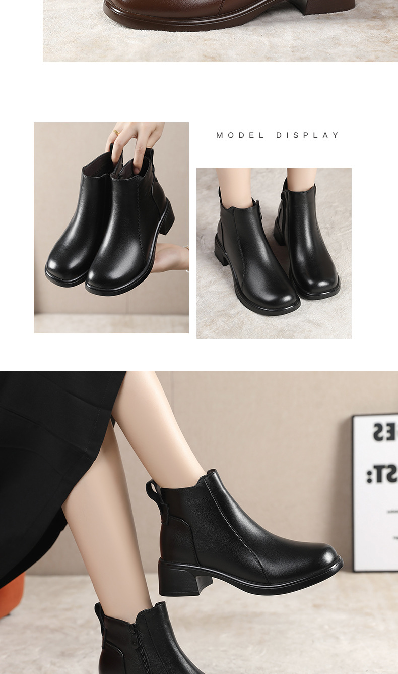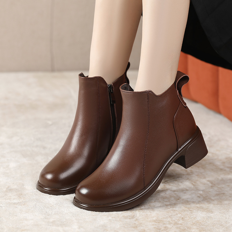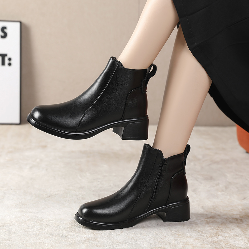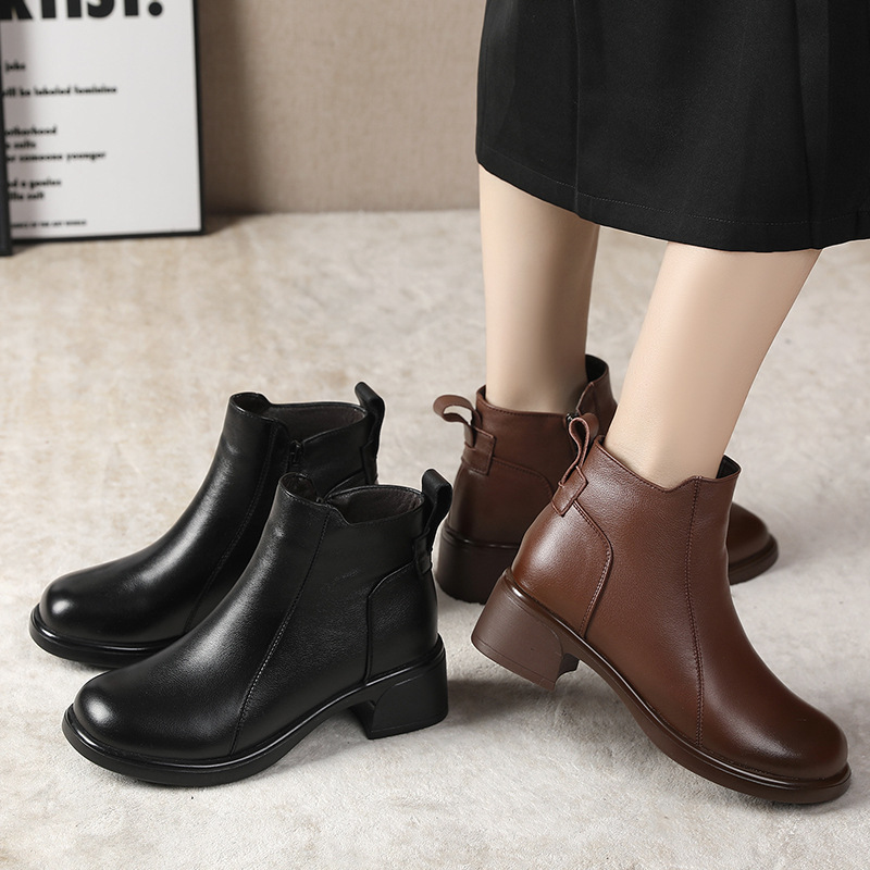 정품 가죽 영국 스타일 마틴 부츠 사이드 지퍼 싱글 부츠 2024 가을 및 겨울 새로운 소프트 하단 짧은 부츠 43 플러스 사이즈 여성용 신발