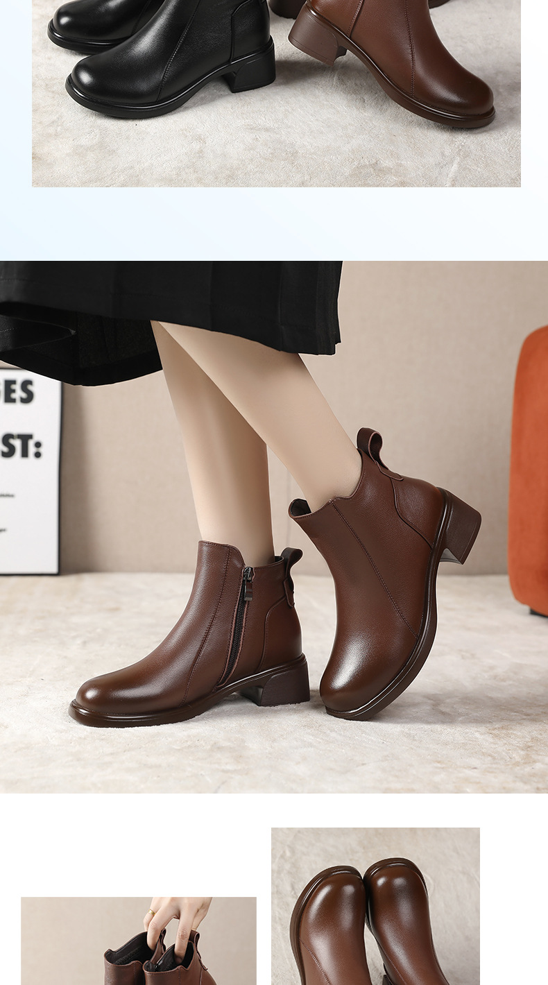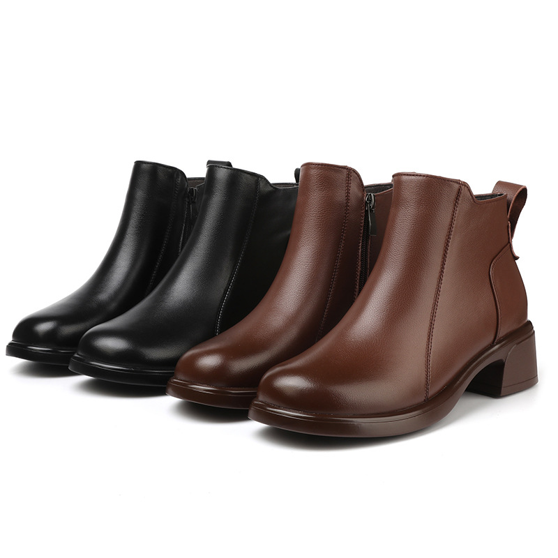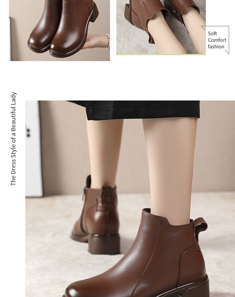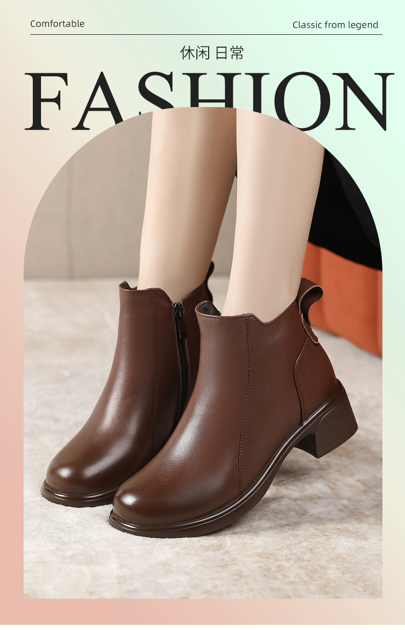정품 가죽 영국 스타일 마틴 부츠 사이드 지퍼 싱글 부츠 2024 가을 및 겨울 새로운 소프트 하단 짧은 부츠 43 플러스 사이즈 여성용 신발