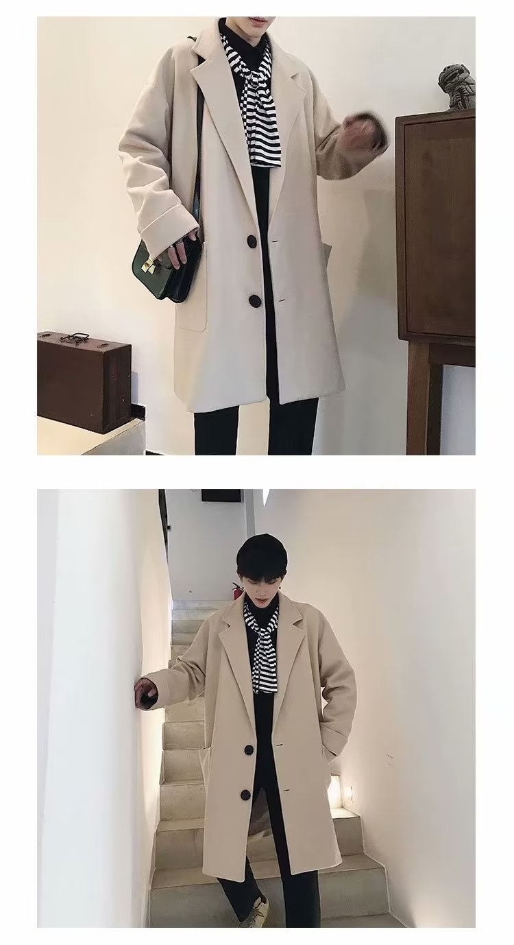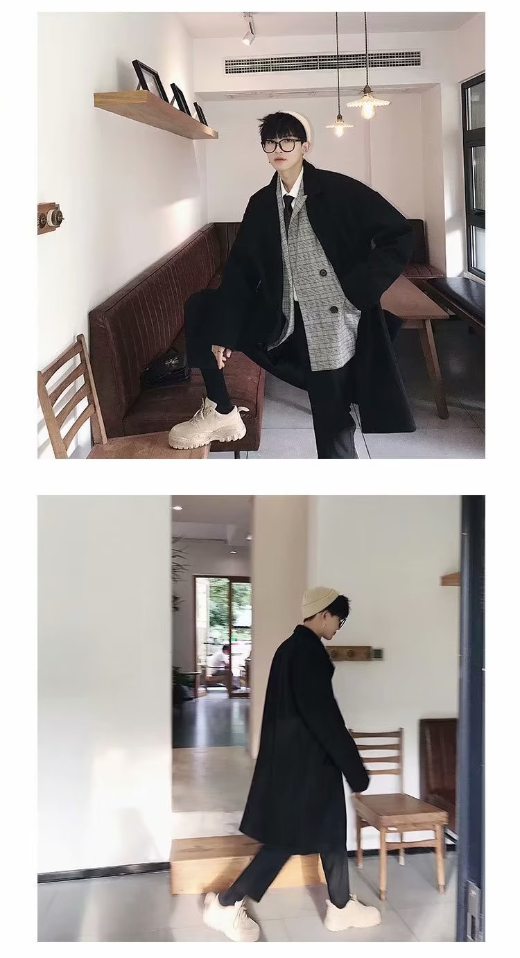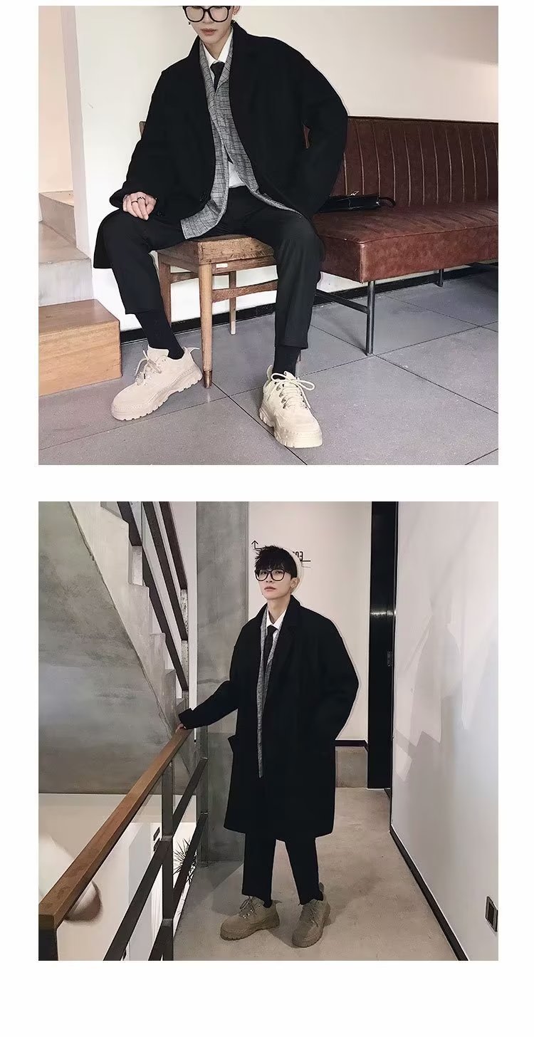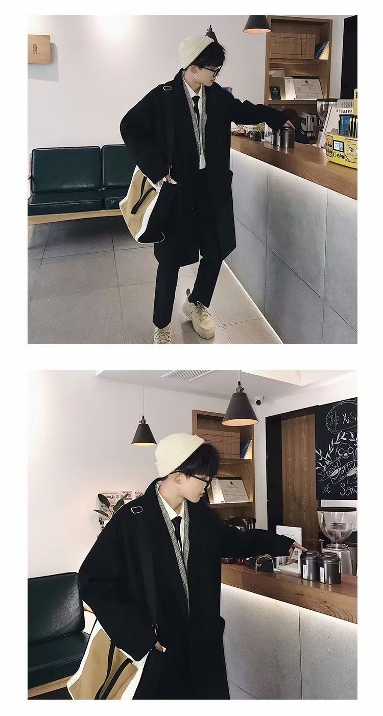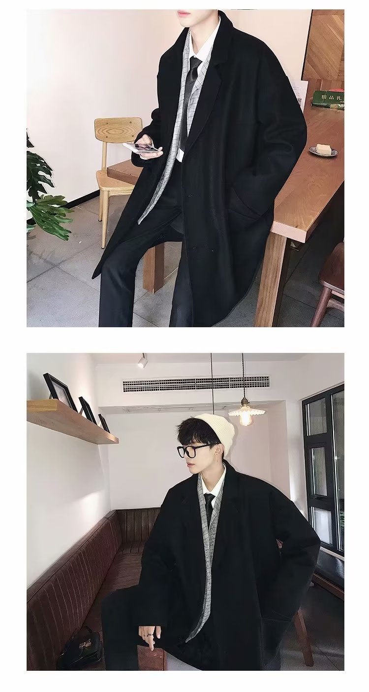 검은 모직 코트 남자 2024 가을 및 겨울 하이 스트리트 트렌디 브랜드 중간 길이의 코트 코트 루즈 듀피 안 핸섬 캐주얼 탑