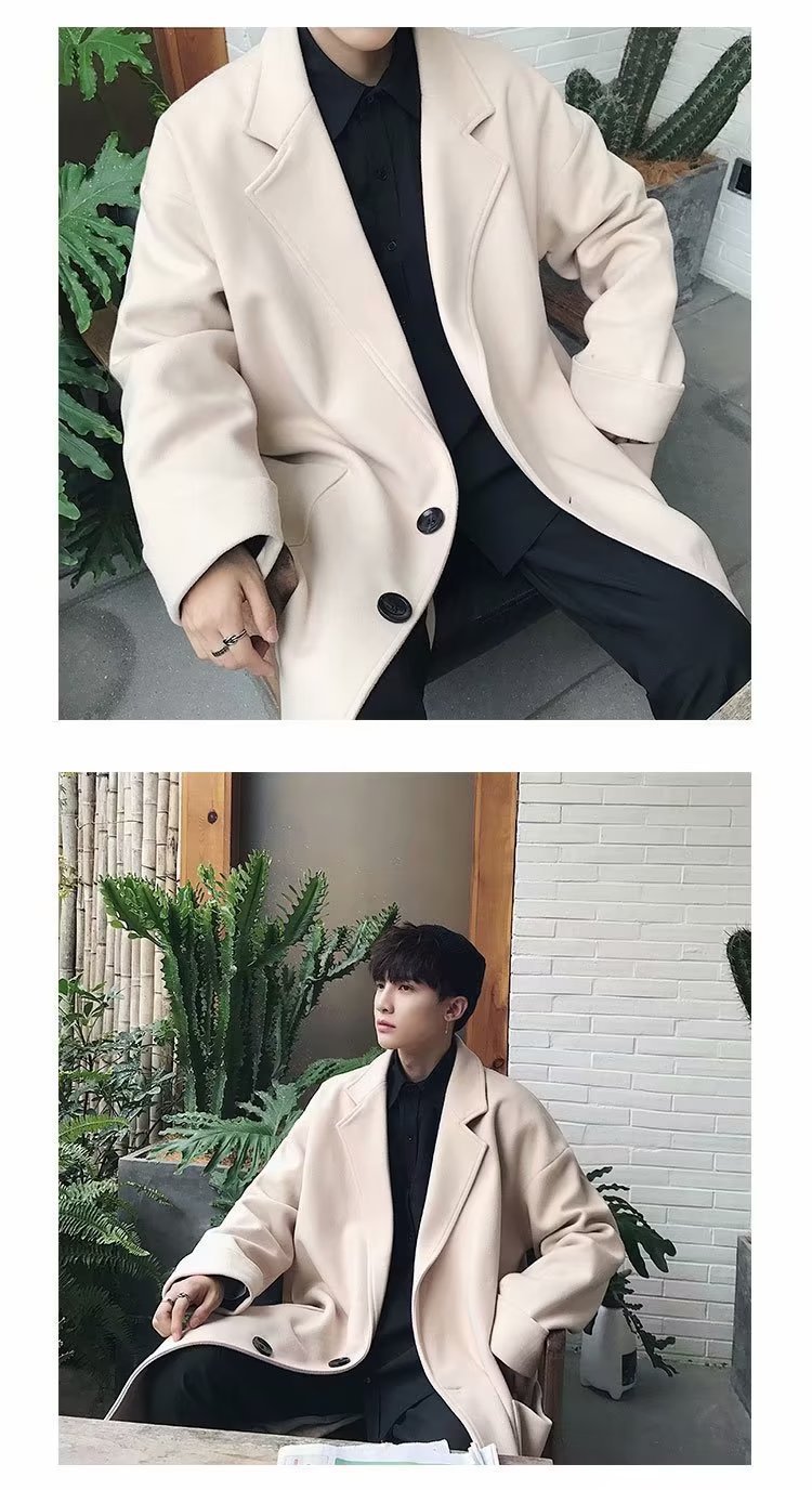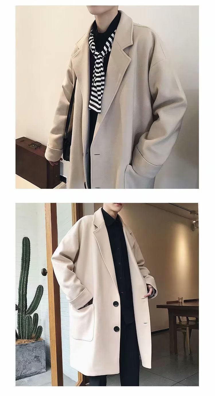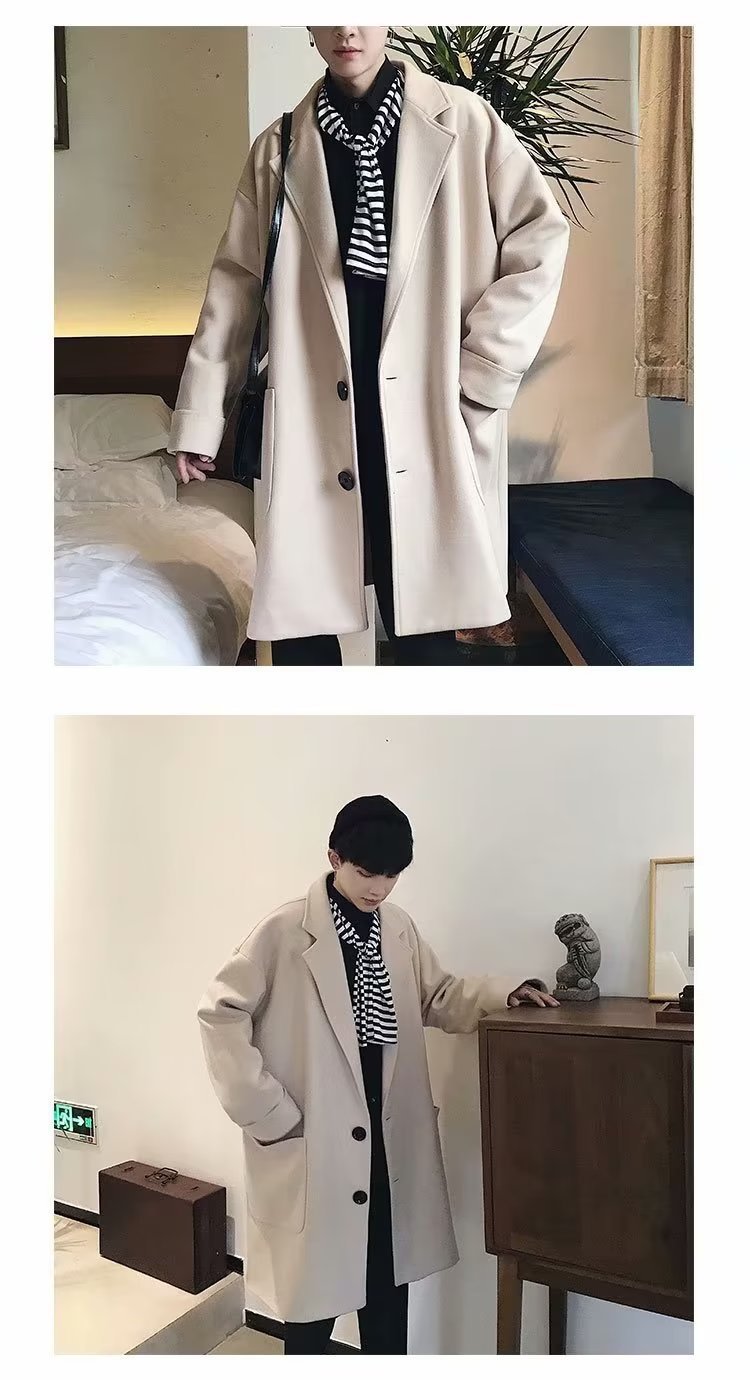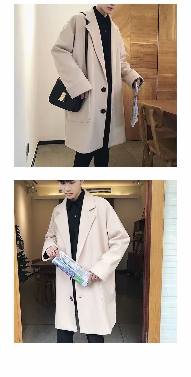 검은 모직 코트 남자 2024 가을 및 겨울 하이 스트리트 트렌디 브랜드 중간 길이의 코트 코트 루즈 듀피 안 핸섬 캐주얼 탑