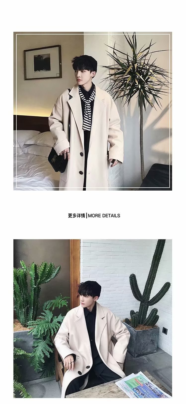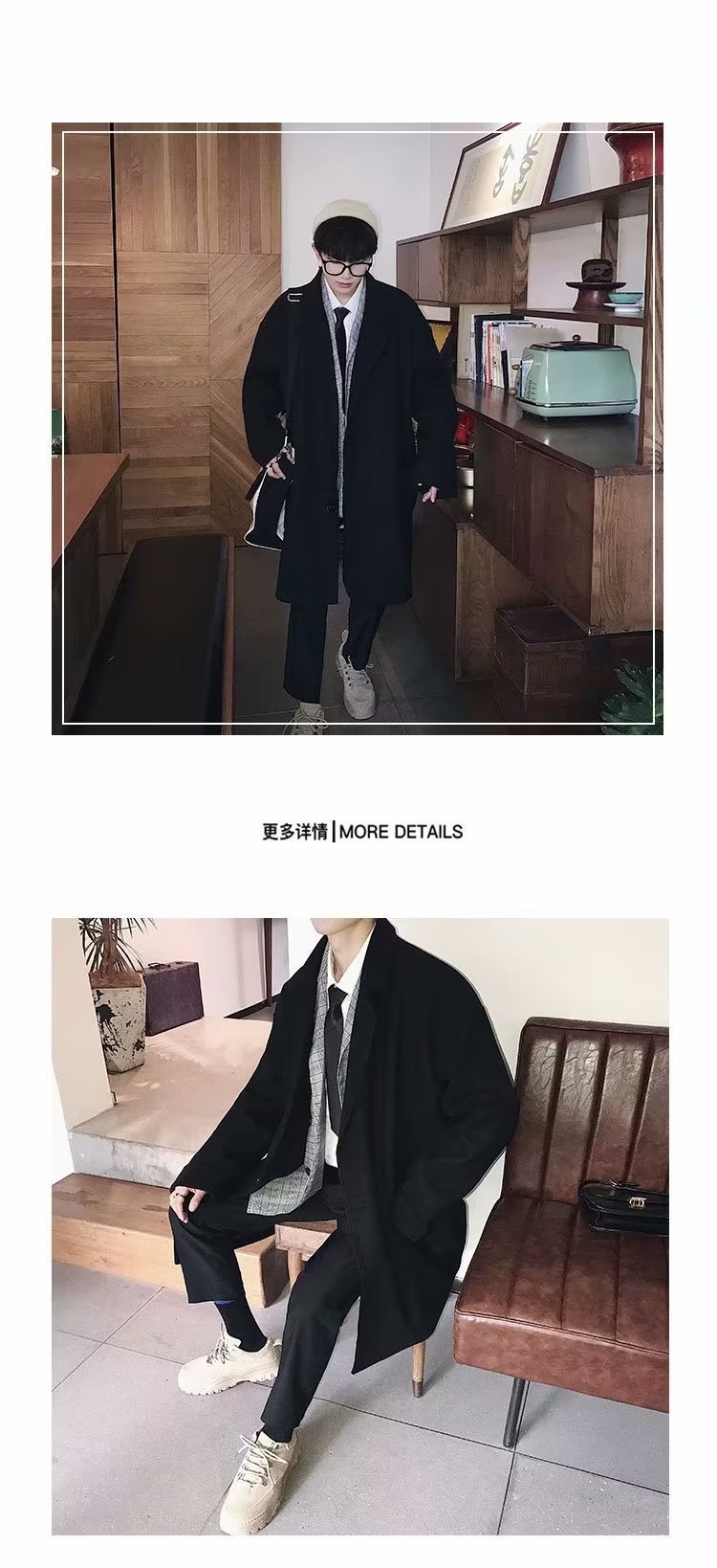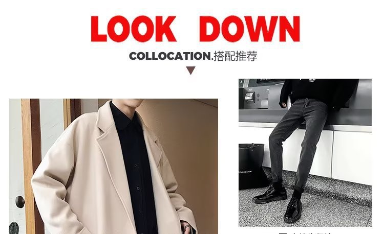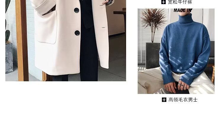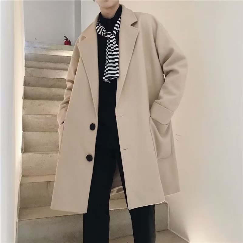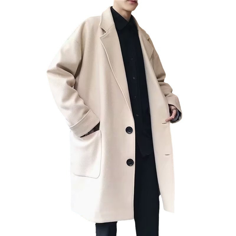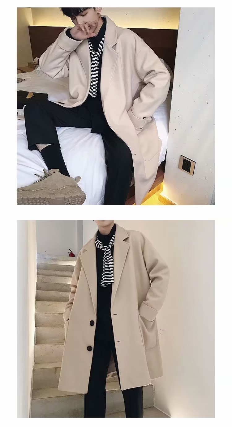 검은 모직 코트 남자 2024 가을 및 겨울 하이 스트리트 트렌디 브랜드 중간 길이의 코트 코트 루즈 듀피 안 핸섬 캐주얼 탑