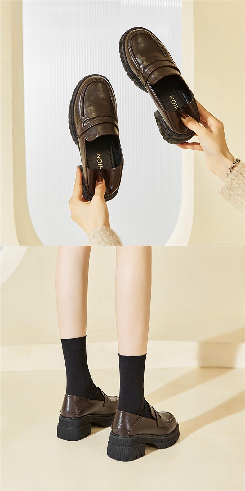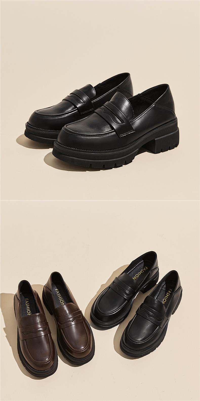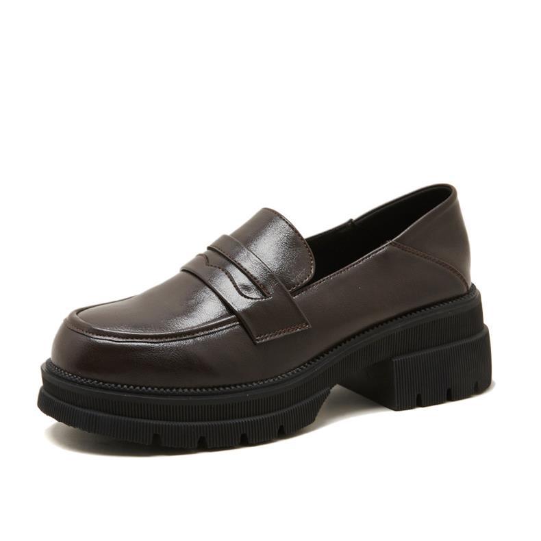 여성용 하이힐 가죽 신발 2025 신상 봄 가을 두꺼운 굽 두꺼운 밑창 로퍼 영국 스타일 레트로 부드러운 가죽 신발
