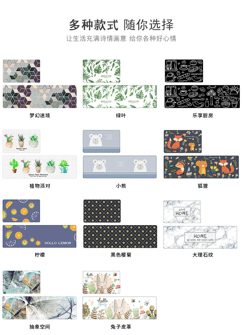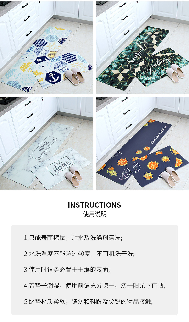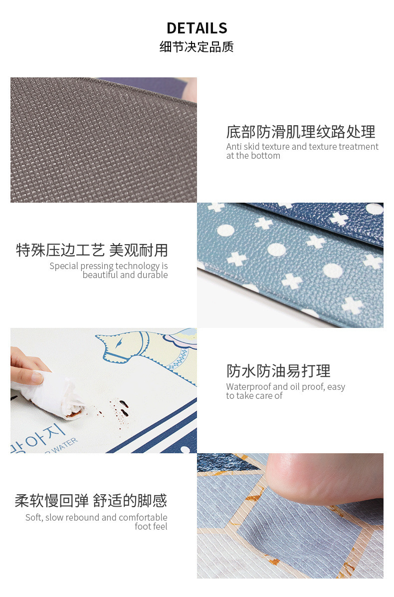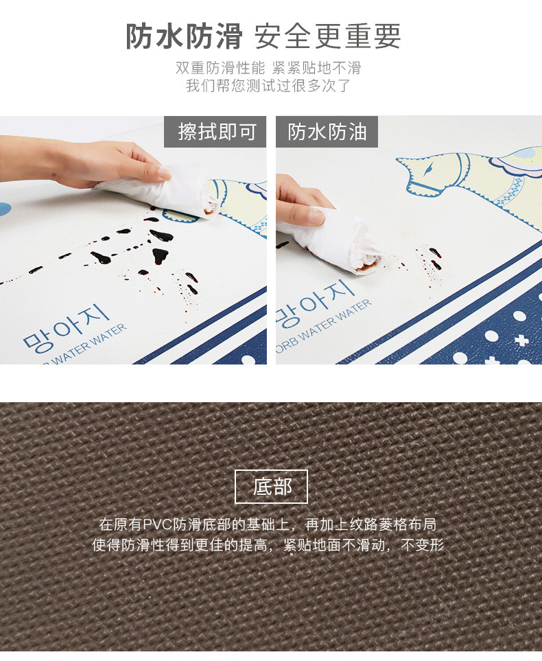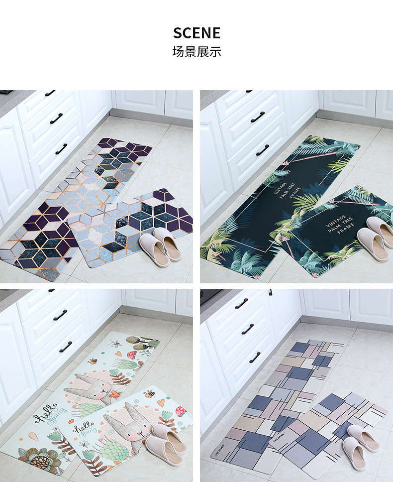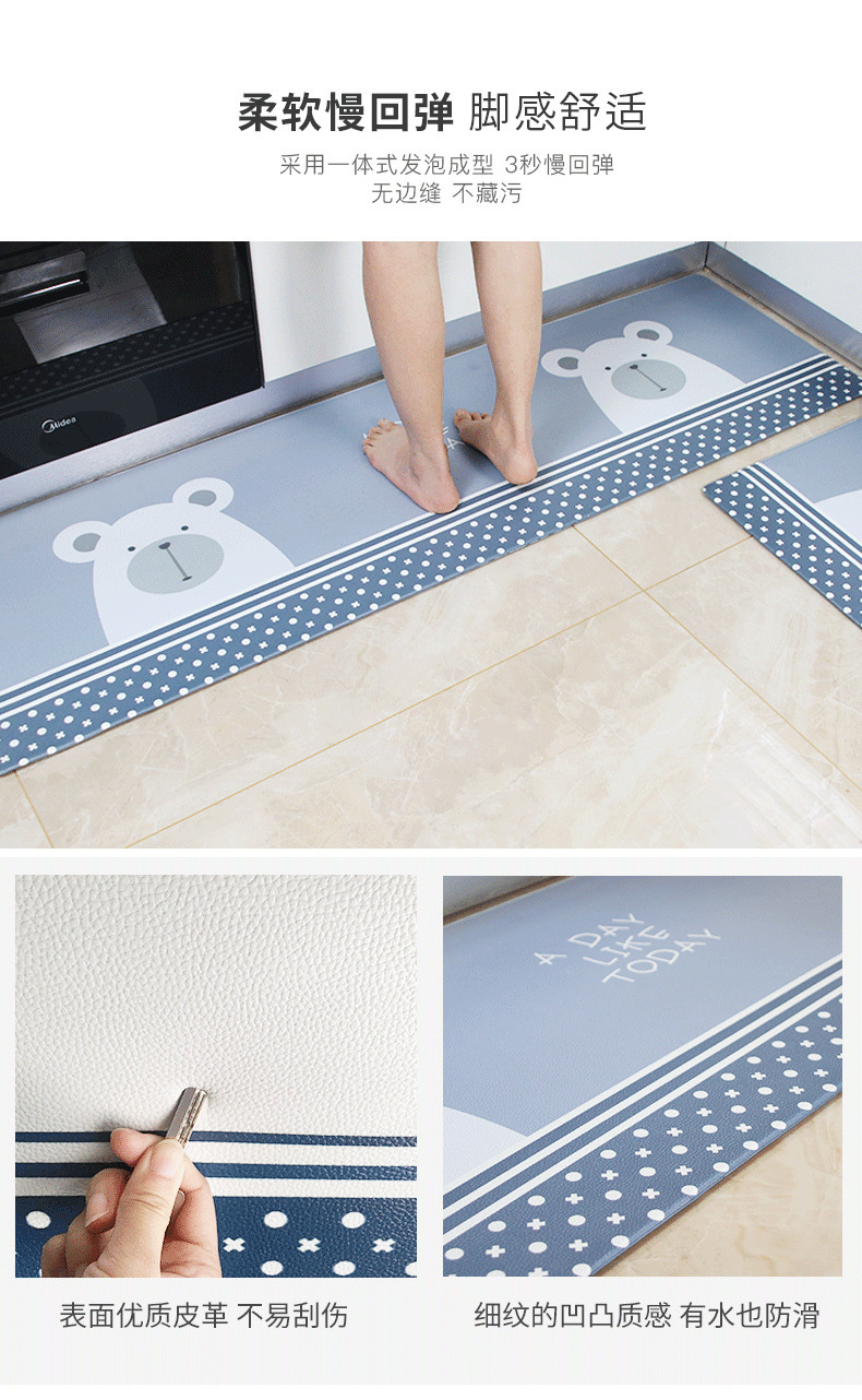 주방 바닥 매트 문 매트 방수 오일-증거 Pu 카펫 스크럽-무료 현대 간단한 만화 PVC 미끄럼 방지 가죽 발 매트