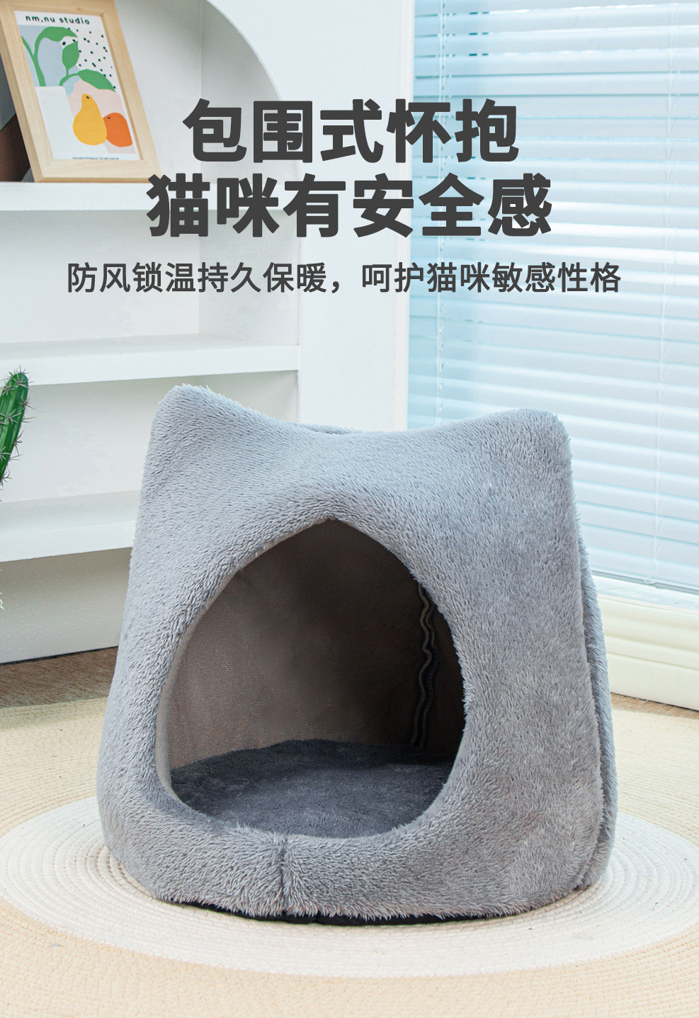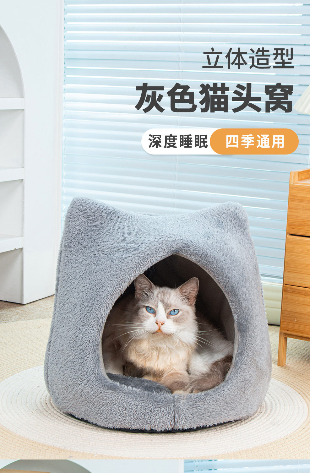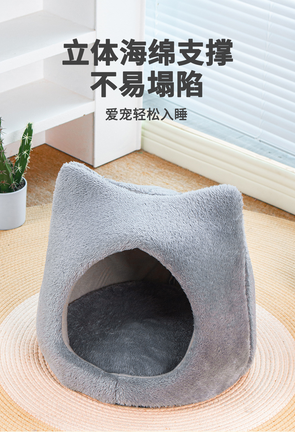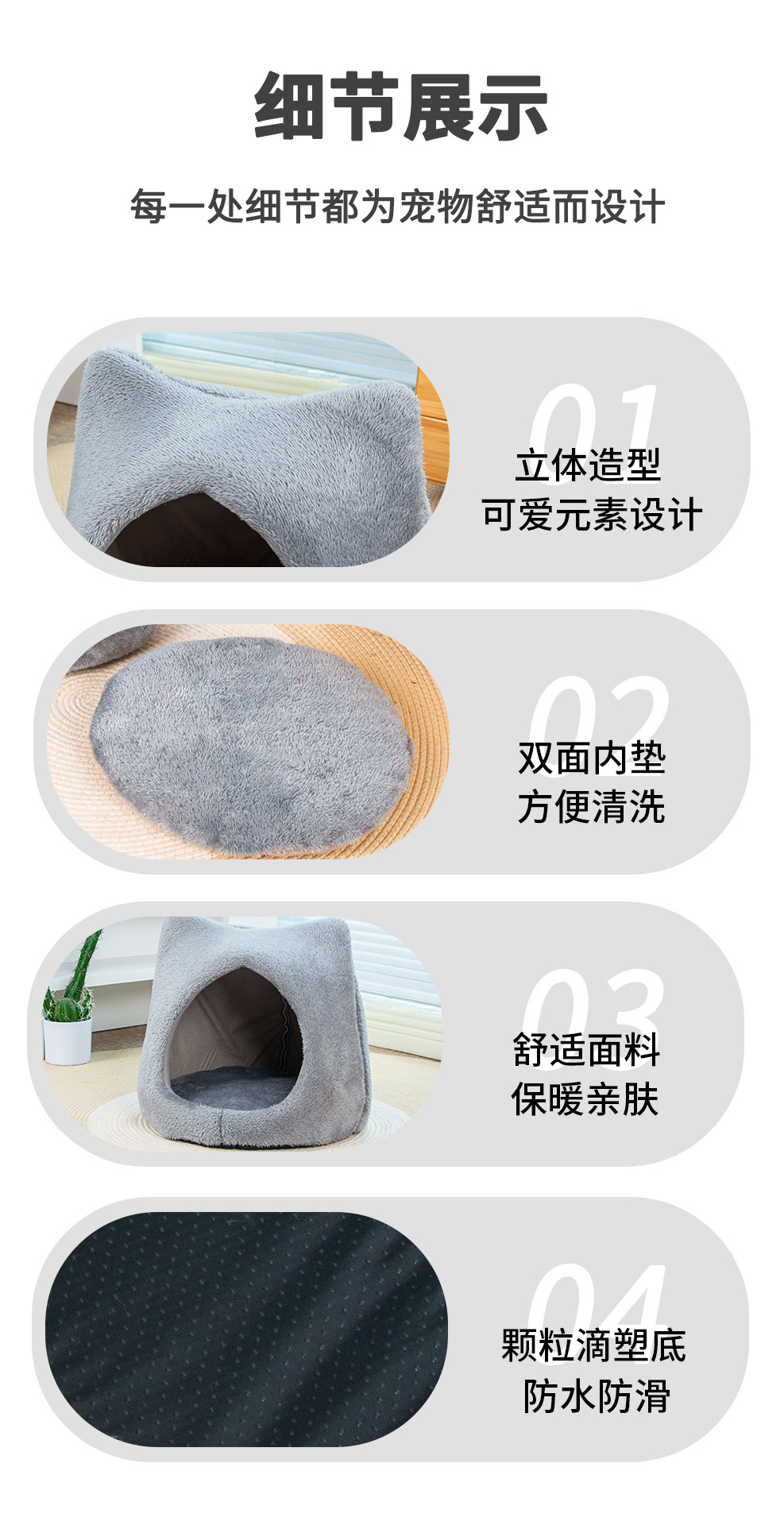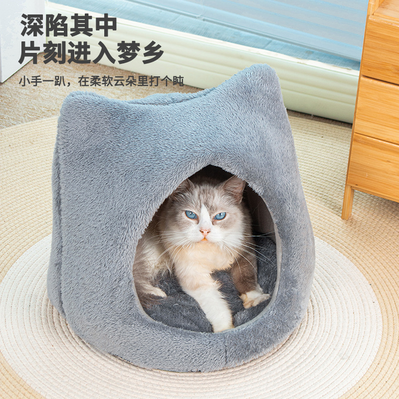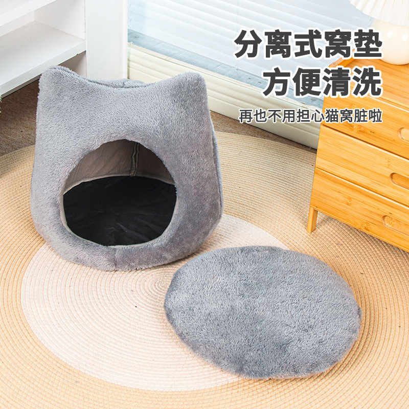 사계절 유니버설 귀여운 고양이 머리 둥지 두꺼운 양면 양면 양털 패드 이동식 및 세척 가능한 고양이 집 미끄럼 방지 바닥 고양이 둥지 용품