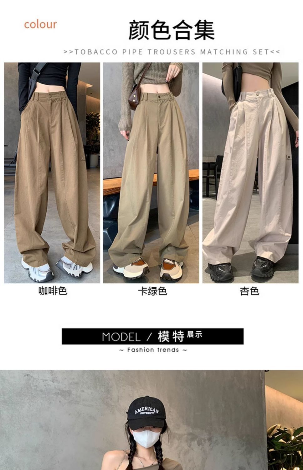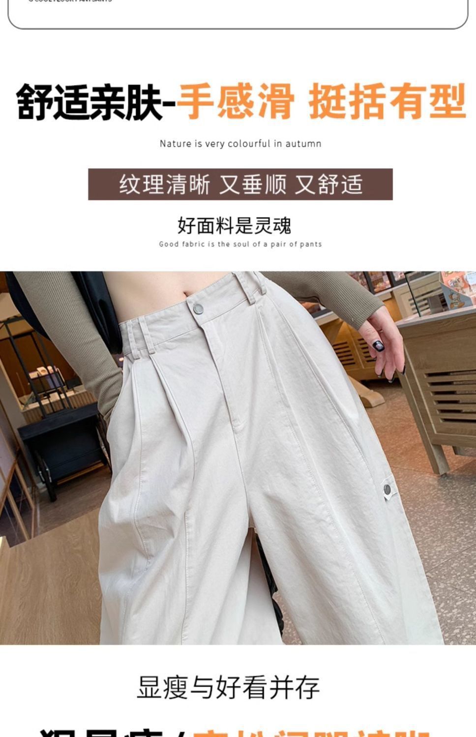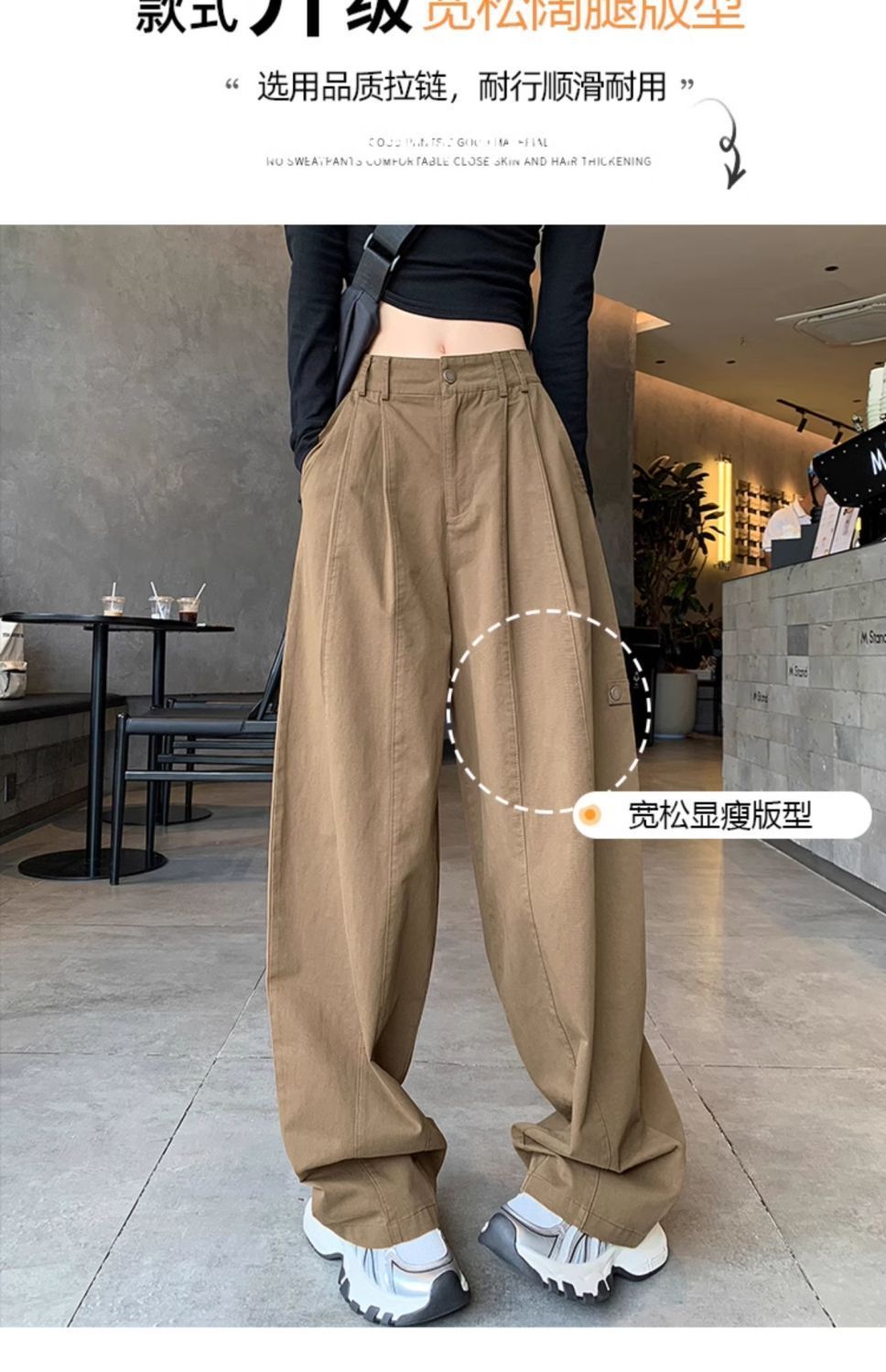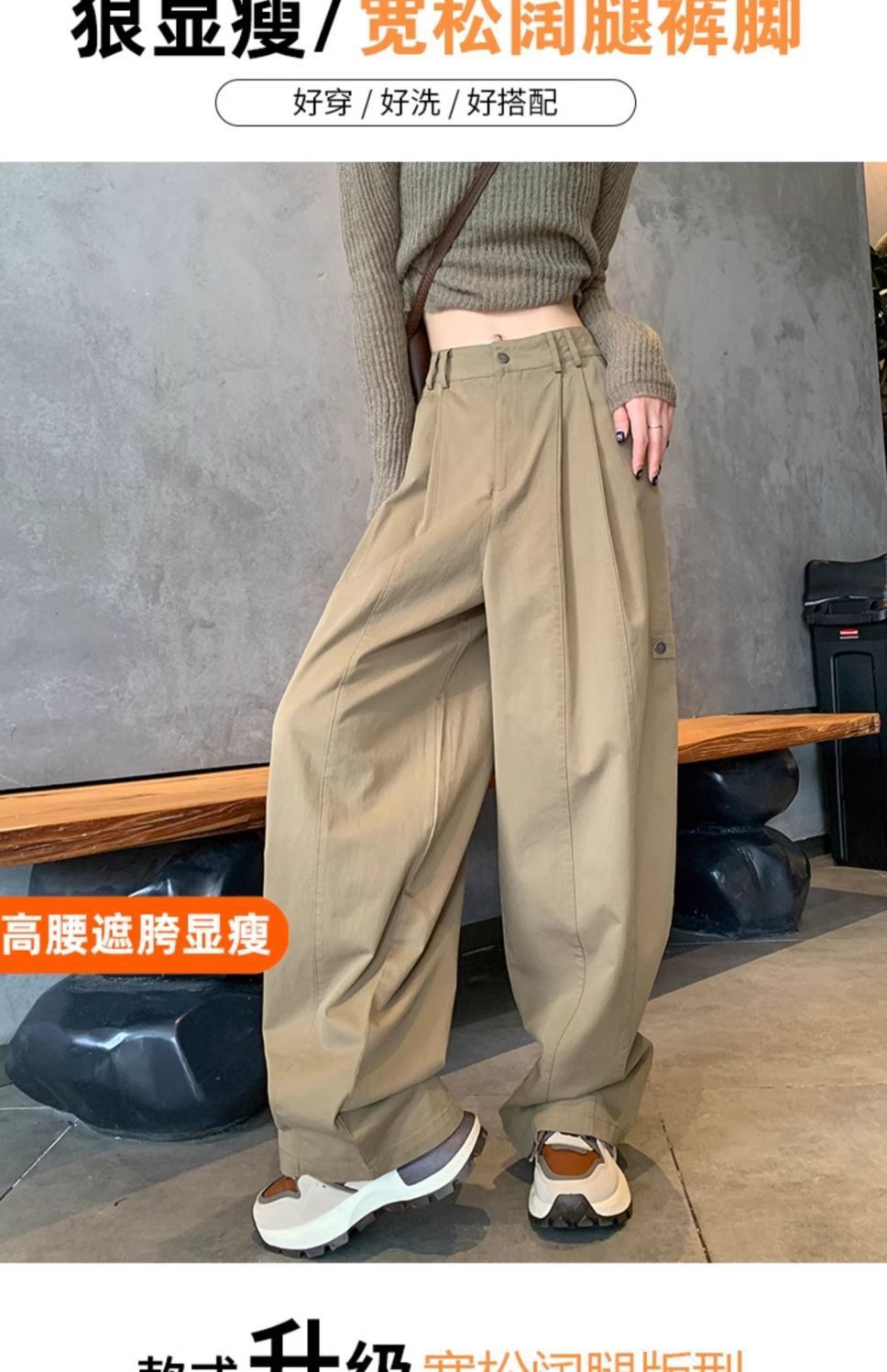 카키 미국 작업 바지 여성의 2024 봄과 가을 새로운 높은 허리 슬리밍 느슨한 캐주얼 스포츠 와이드 다리 바지