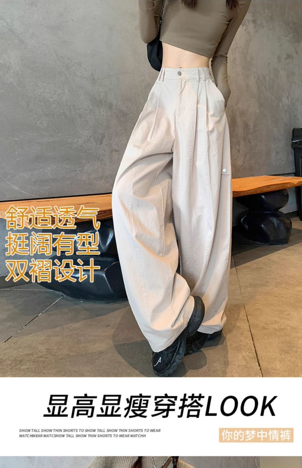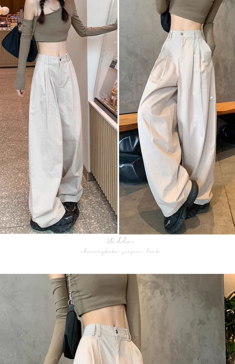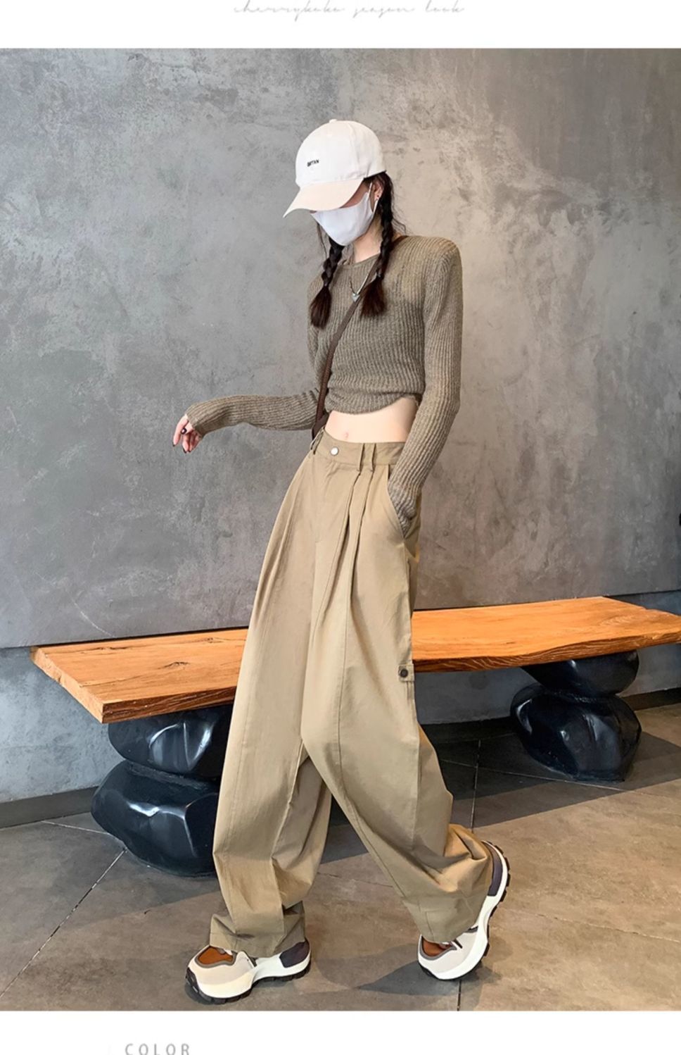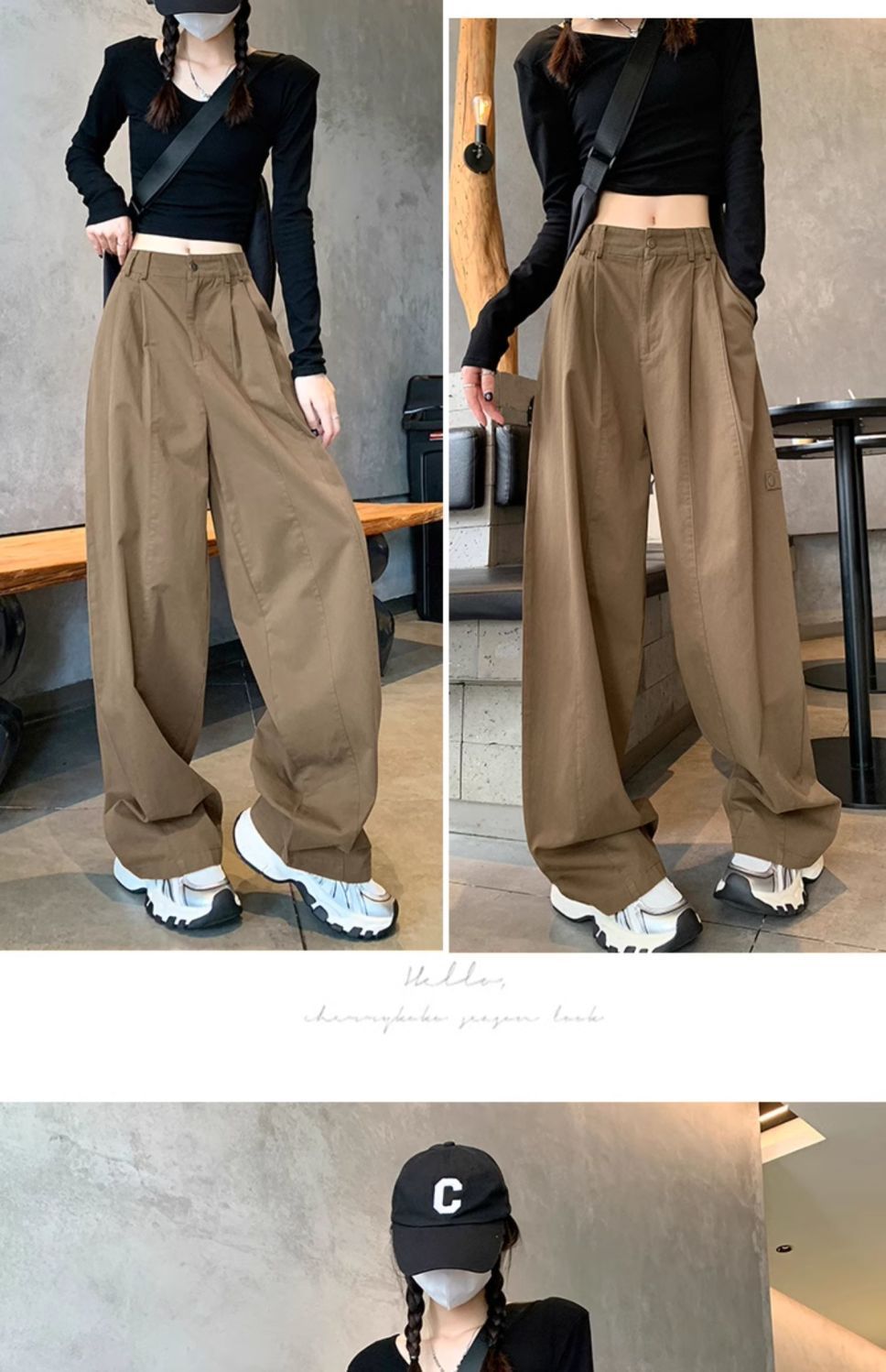 카키 미국 작업 바지 여성의 2024 봄과 가을 새로운 높은 허리 슬리밍 느슨한 캐주얼 스포츠 와이드 다리 바지