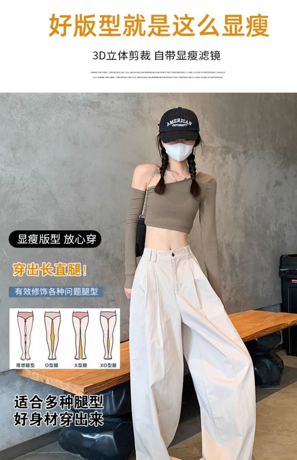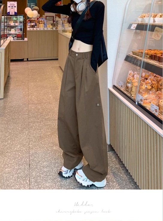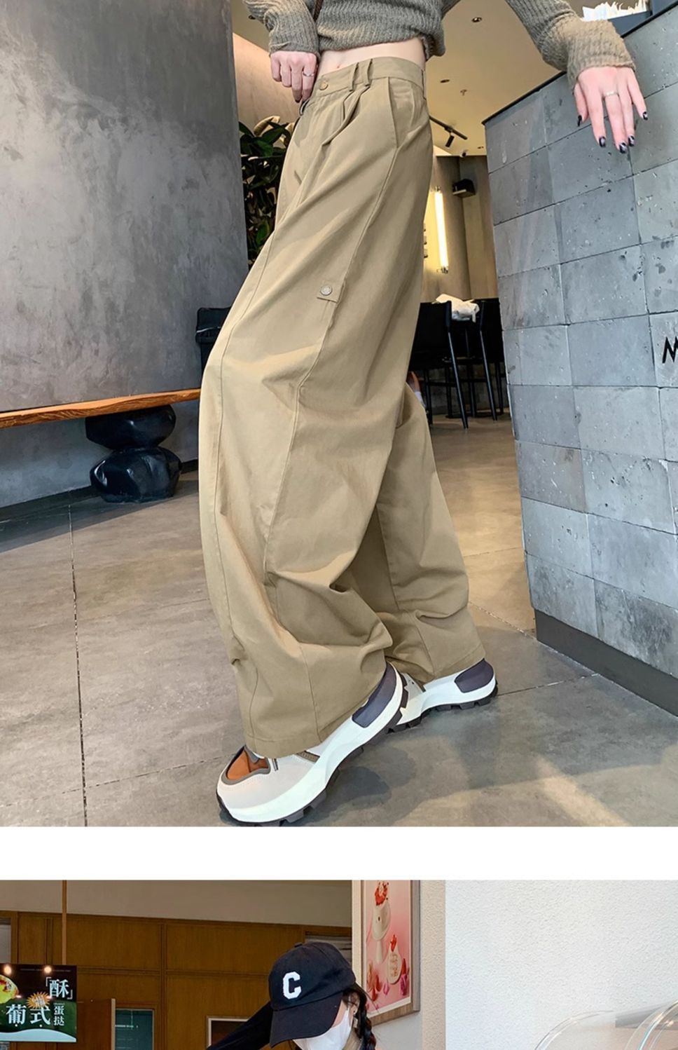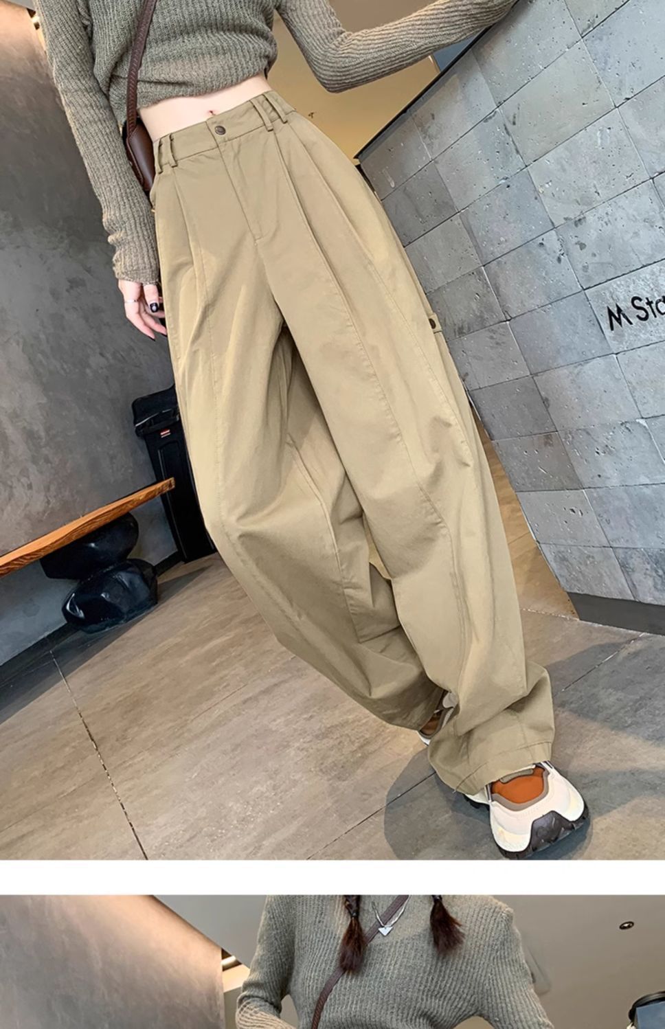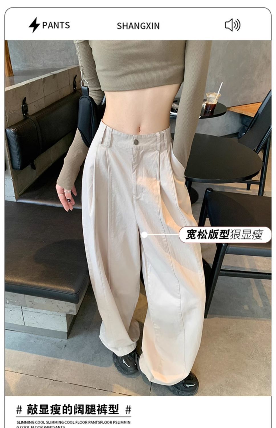 카키 미국 작업 바지 여성의 2024 봄과 가을 새로운 높은 허리 슬리밍 느슨한 캐주얼 스포츠 와이드 다리 바지