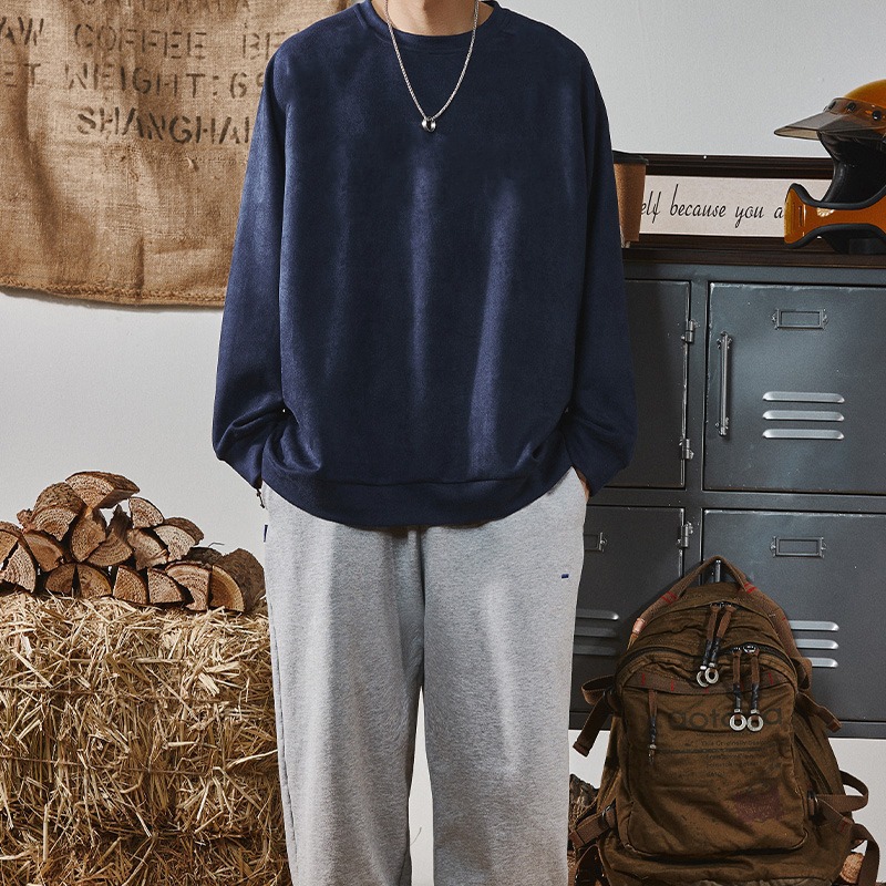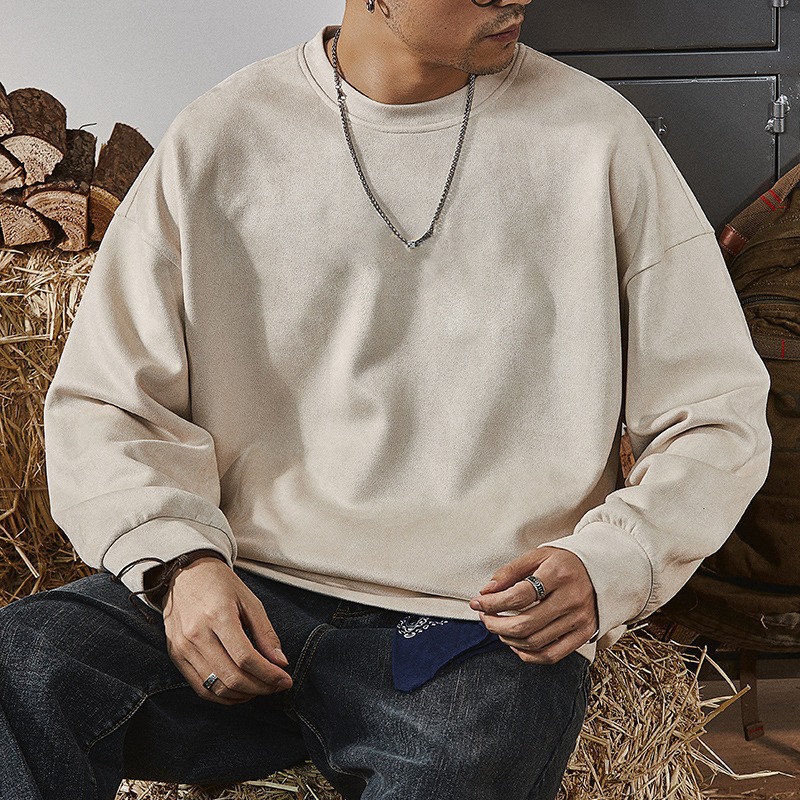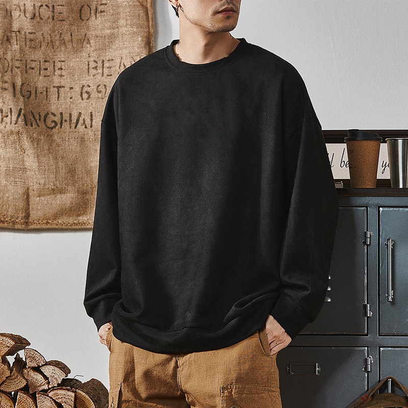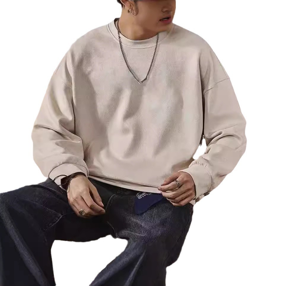 땀 남자 봄과 가을 미국 라운드 넥 Hoodless 2024 새로운 스타일 탑 남자 스웨이드 두꺼운 긴 소매 겨울 패션
