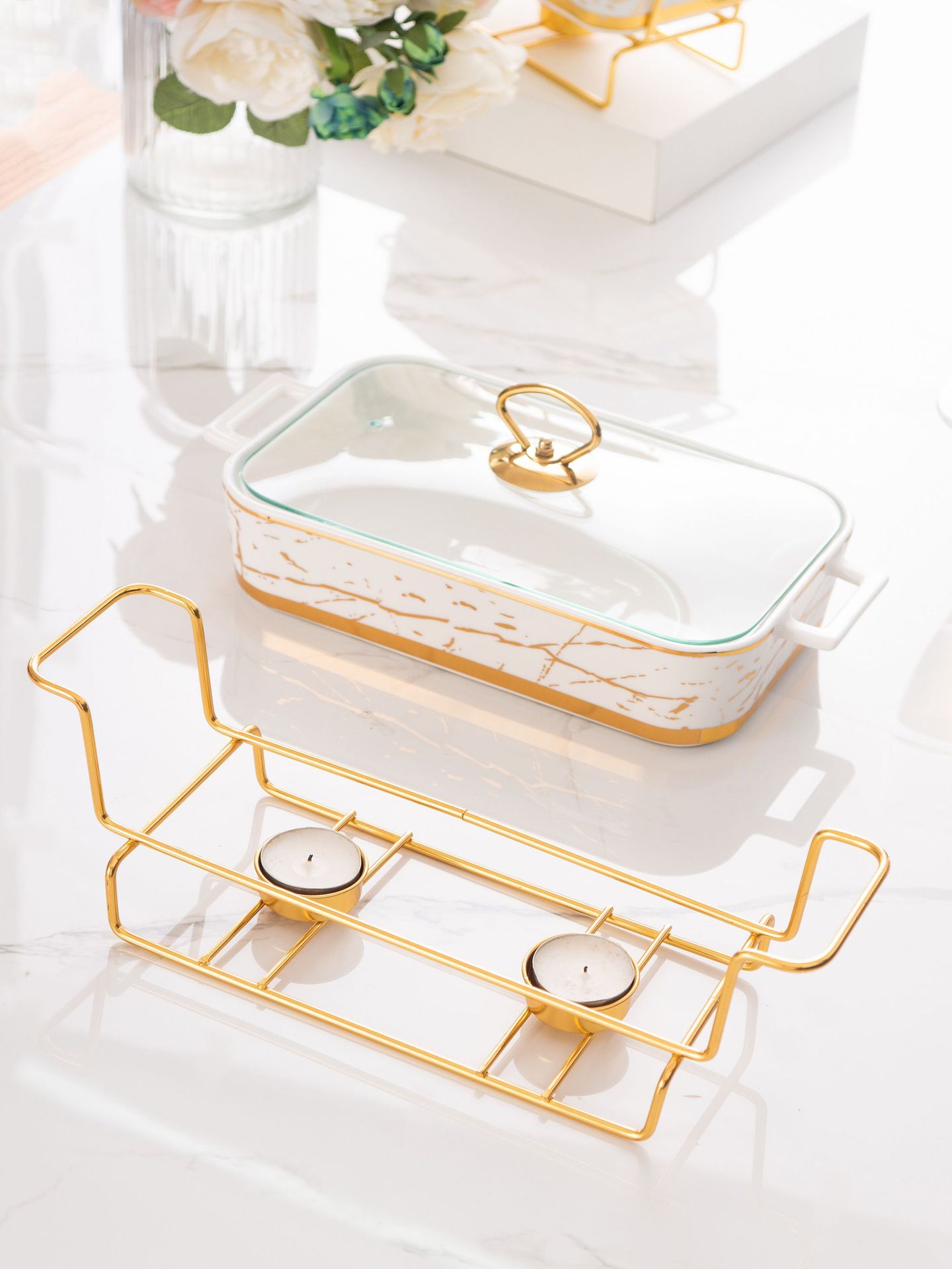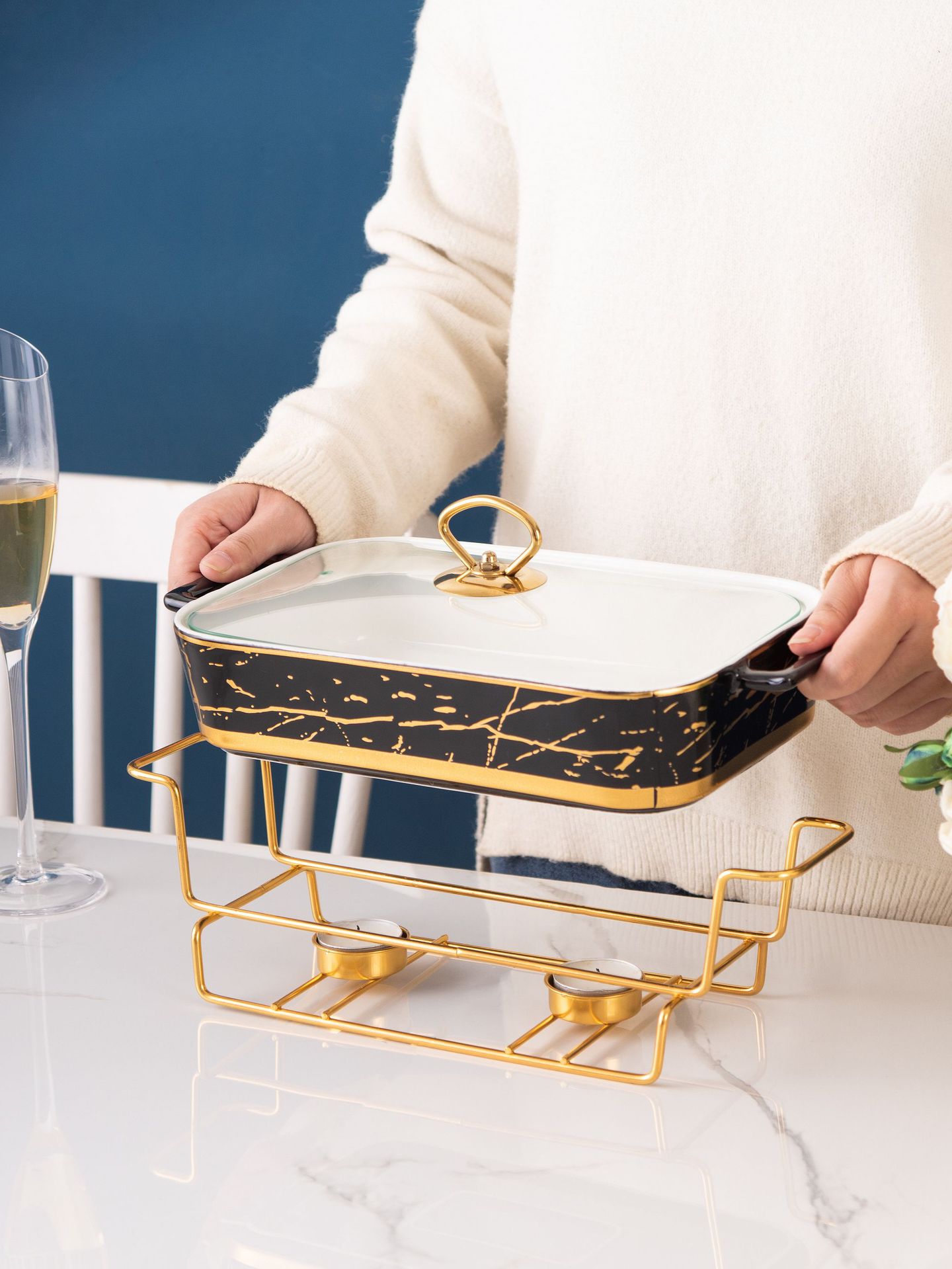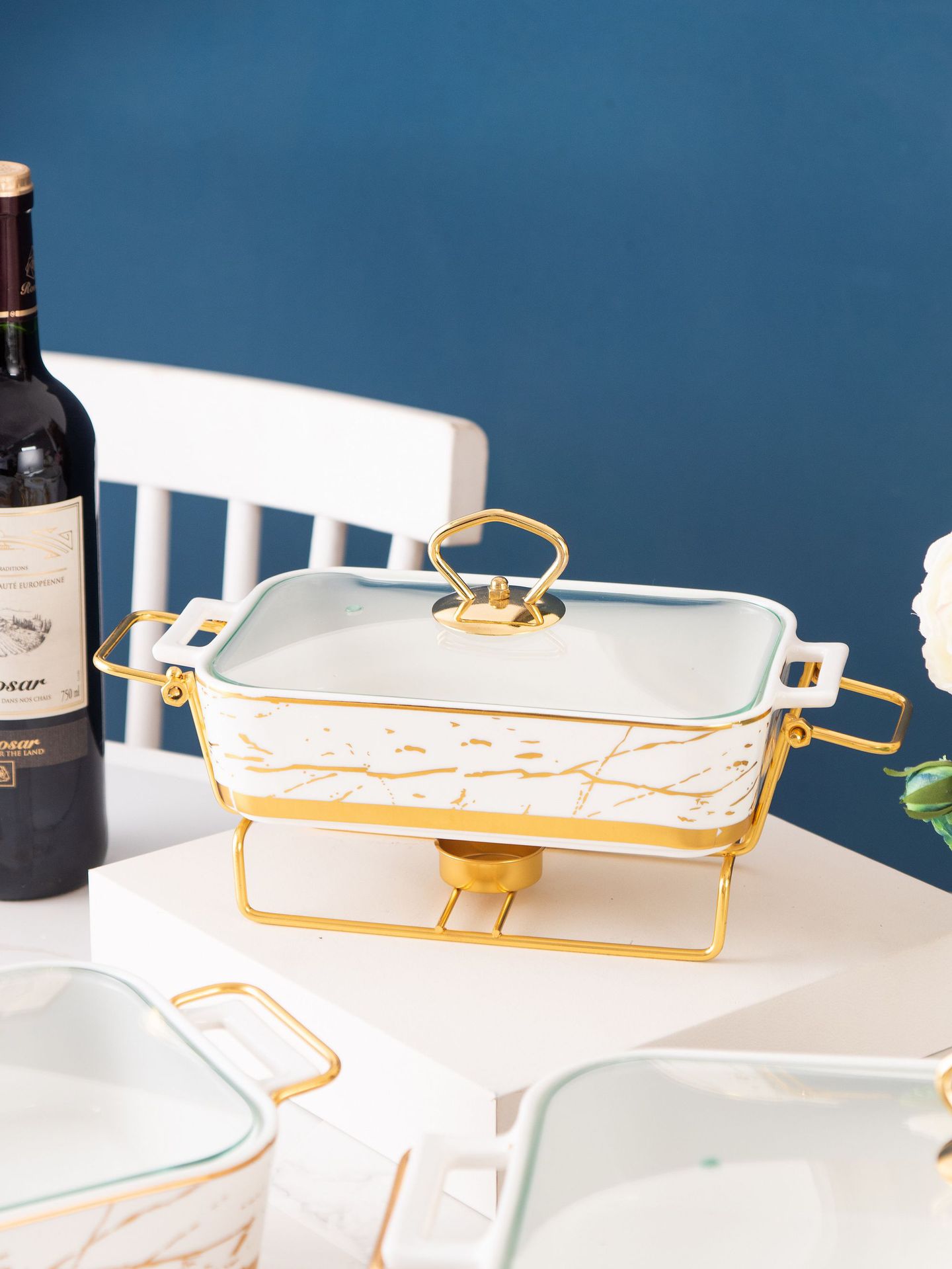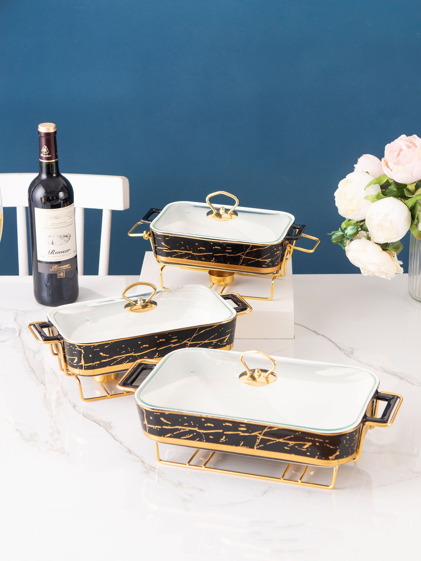 북유럽 직사각형 바이노럴 세라믹 냄비 베이킹 팬 라이트 럭셔리 호텔 식기 캔들 난방 창조적 인 가정용 드라이 팟 수프 냄비
