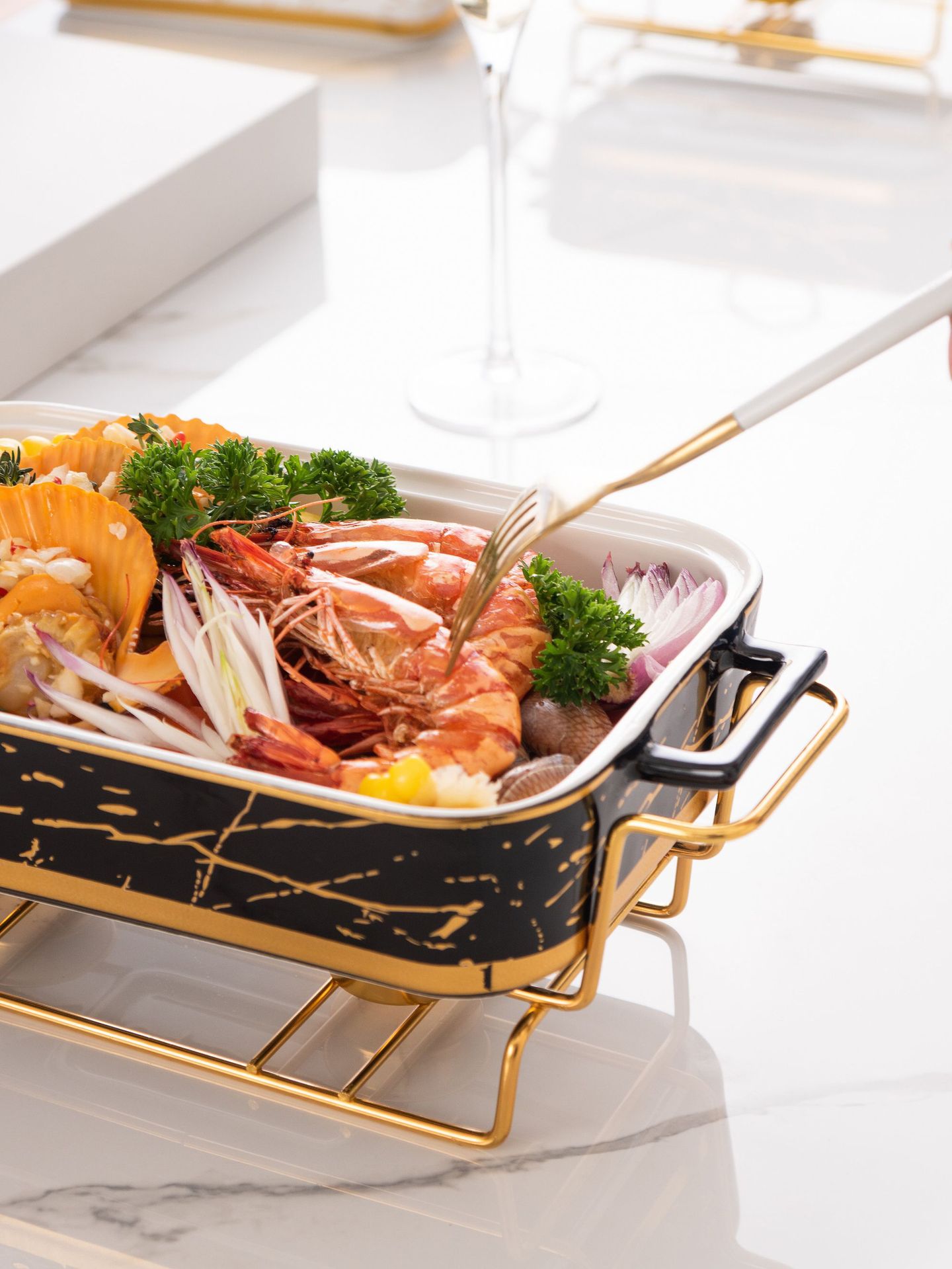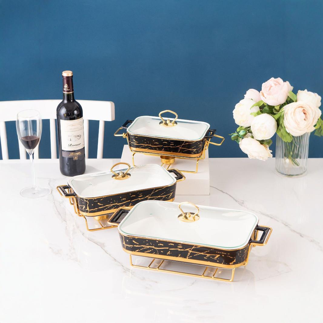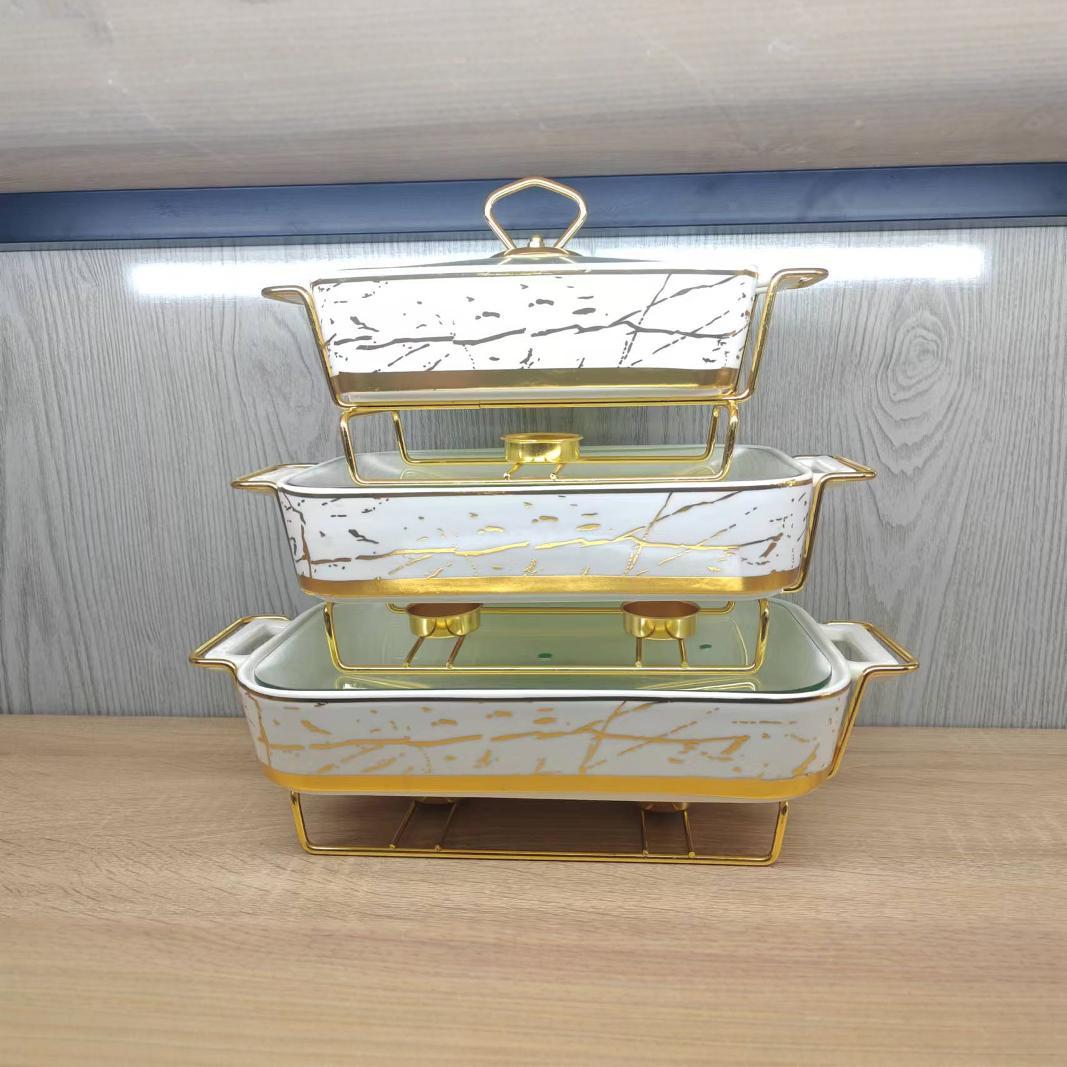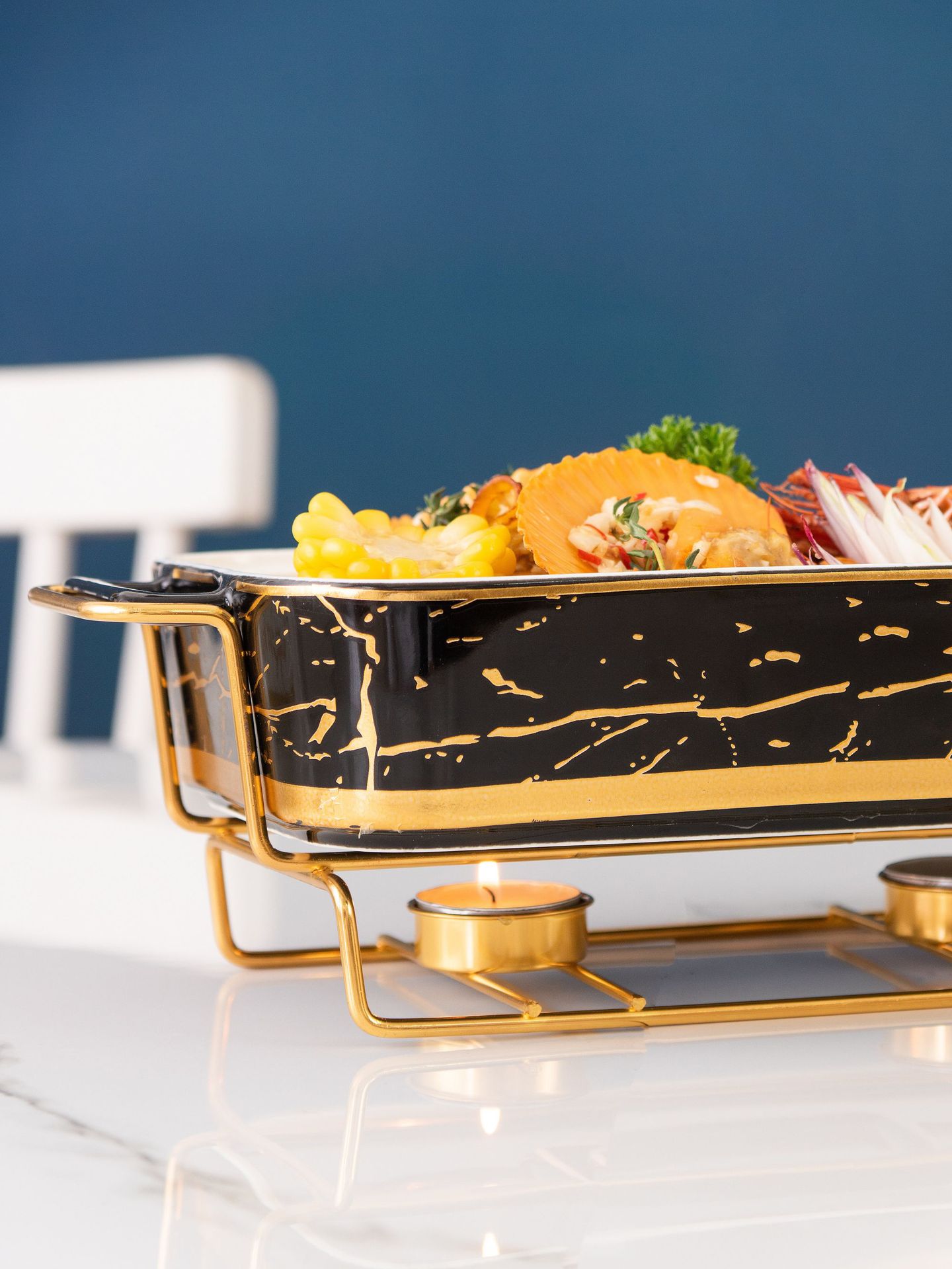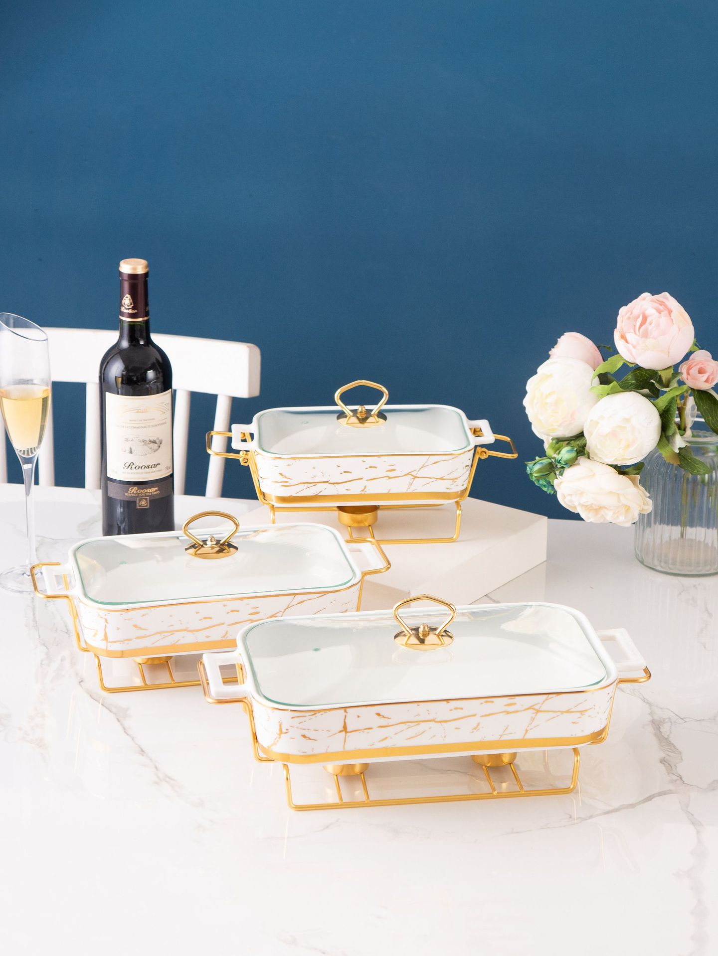 북유럽 직사각형 바이노럴 세라믹 냄비 베이킹 팬 라이트 럭셔리 호텔 식기 캔들 난방 창조적 인 가정용 드라이 팟 수프 냄비