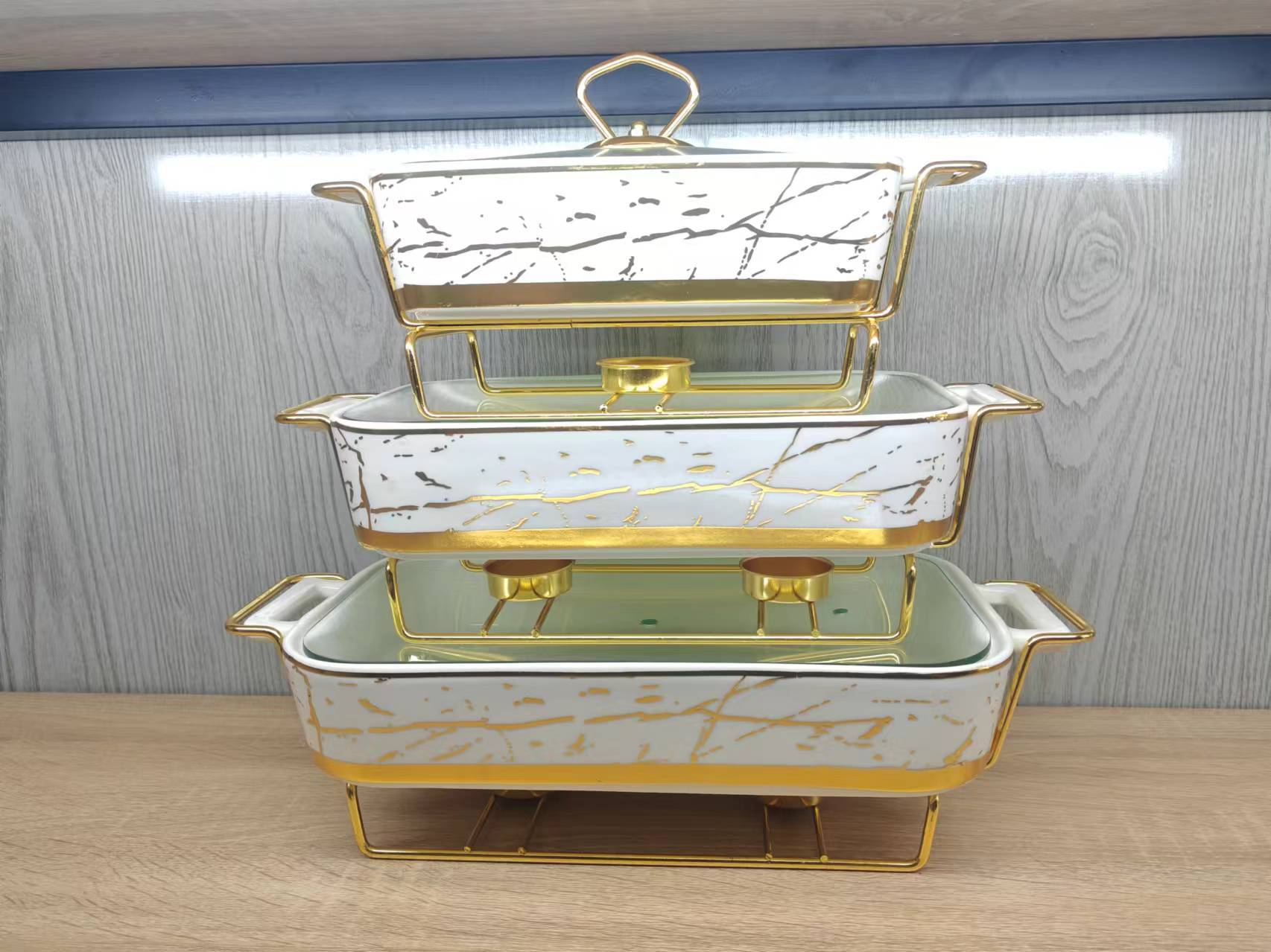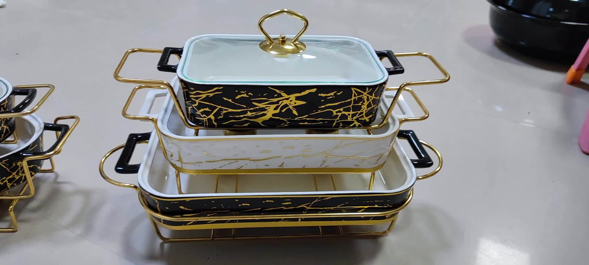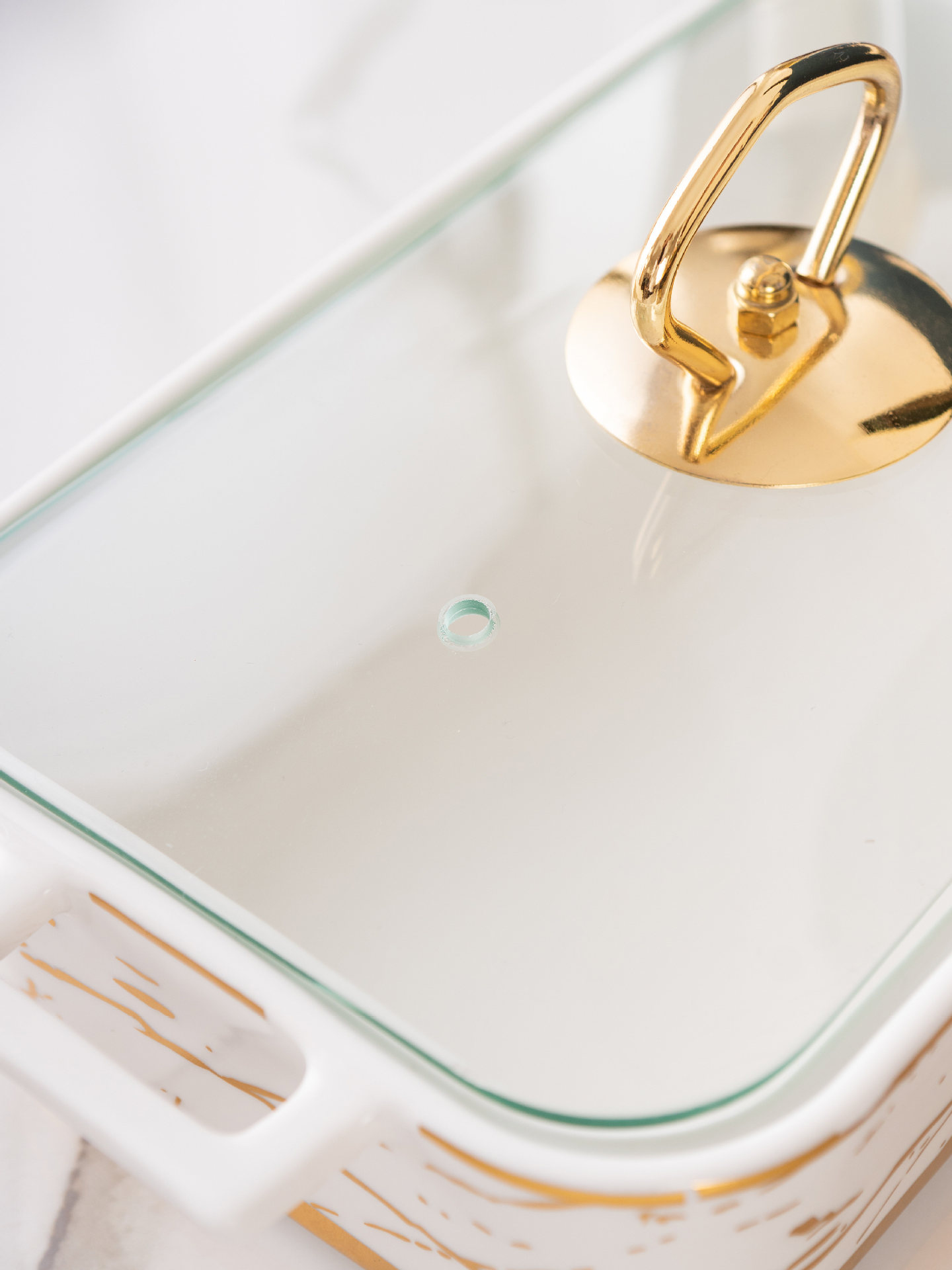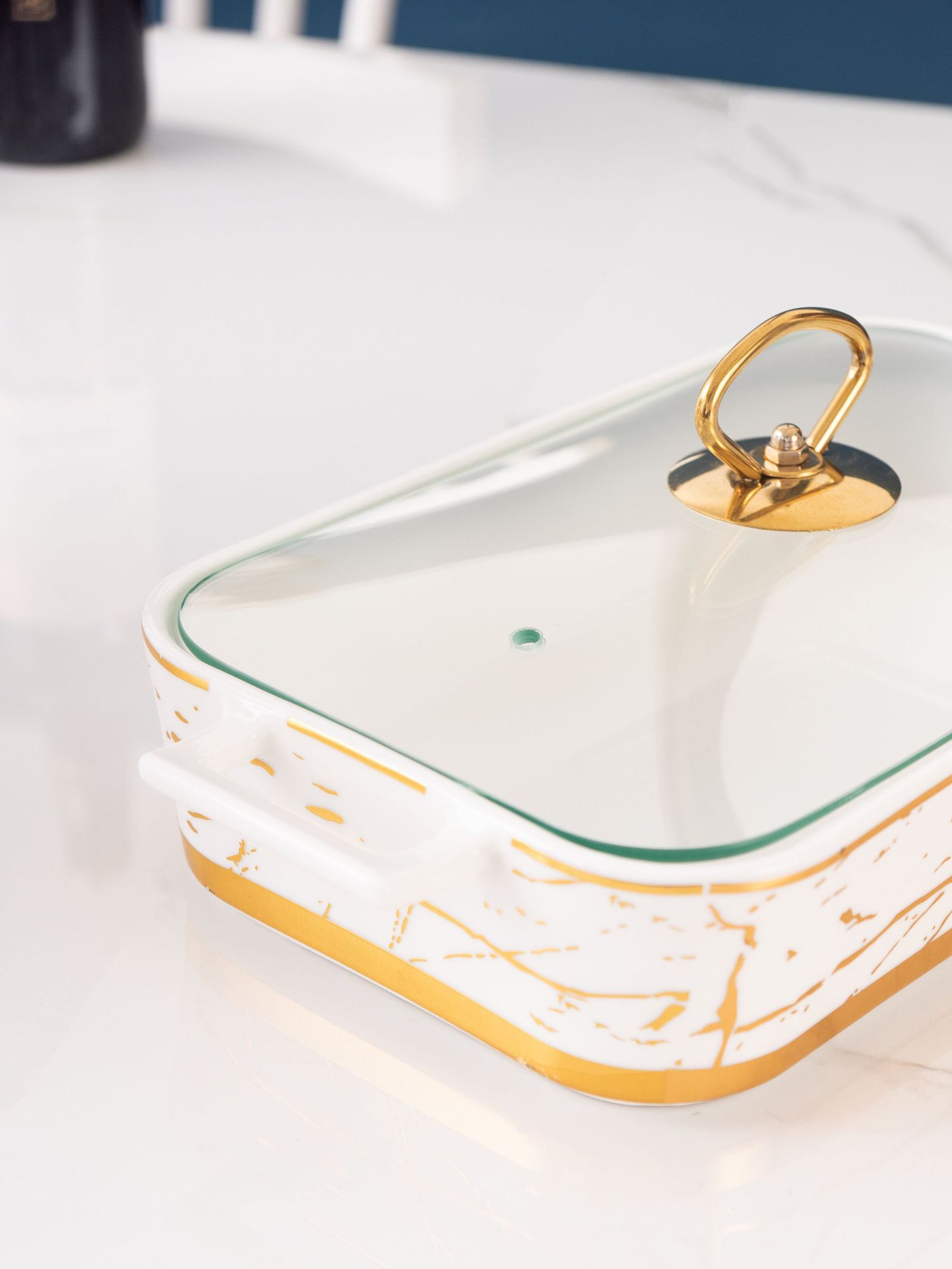 북유럽 직사각형 바이노럴 세라믹 냄비 베이킹 팬 라이트 럭셔리 호텔 식기 캔들 난방 창조적 인 가정용 드라이 팟 수프 냄비