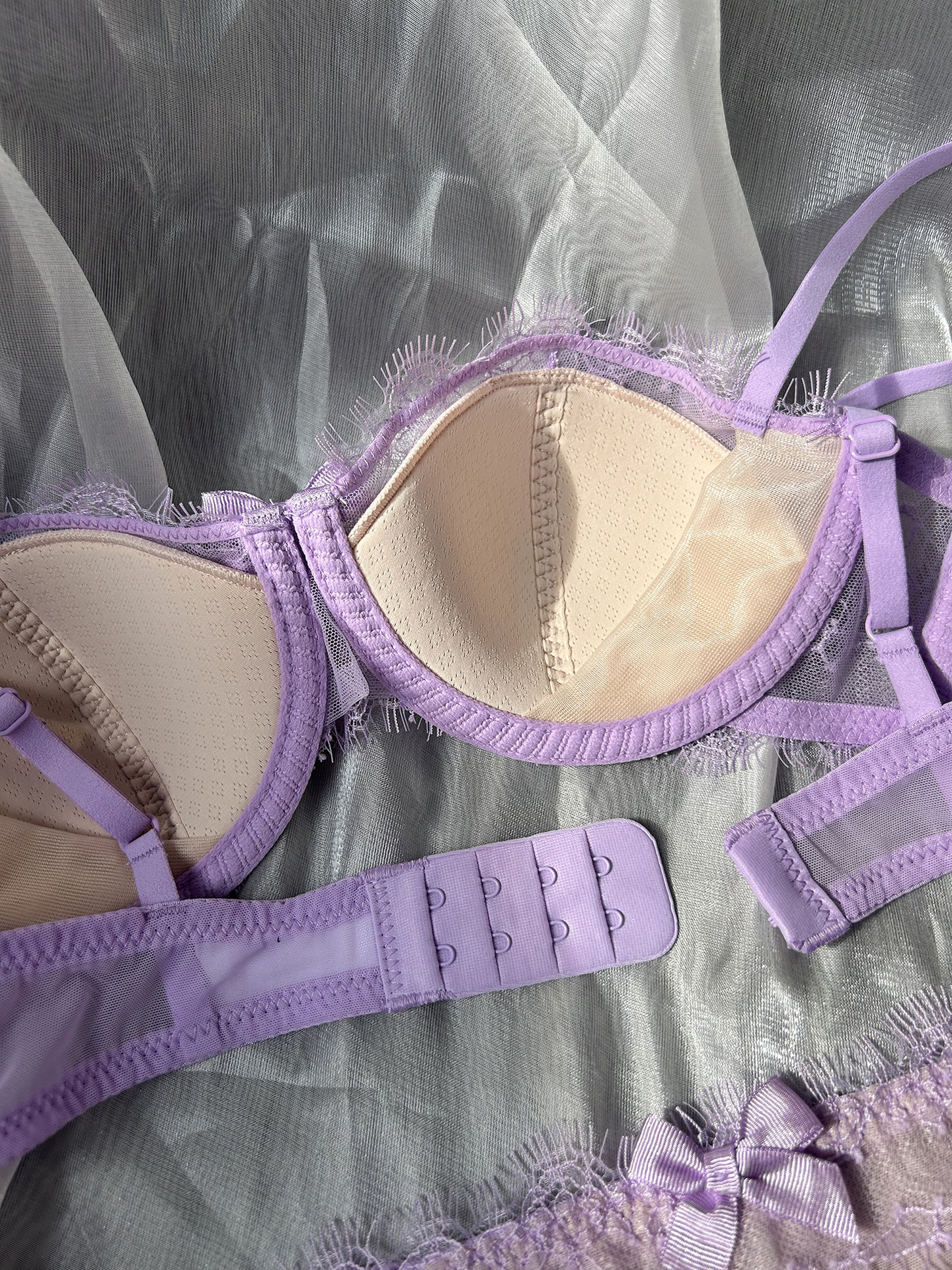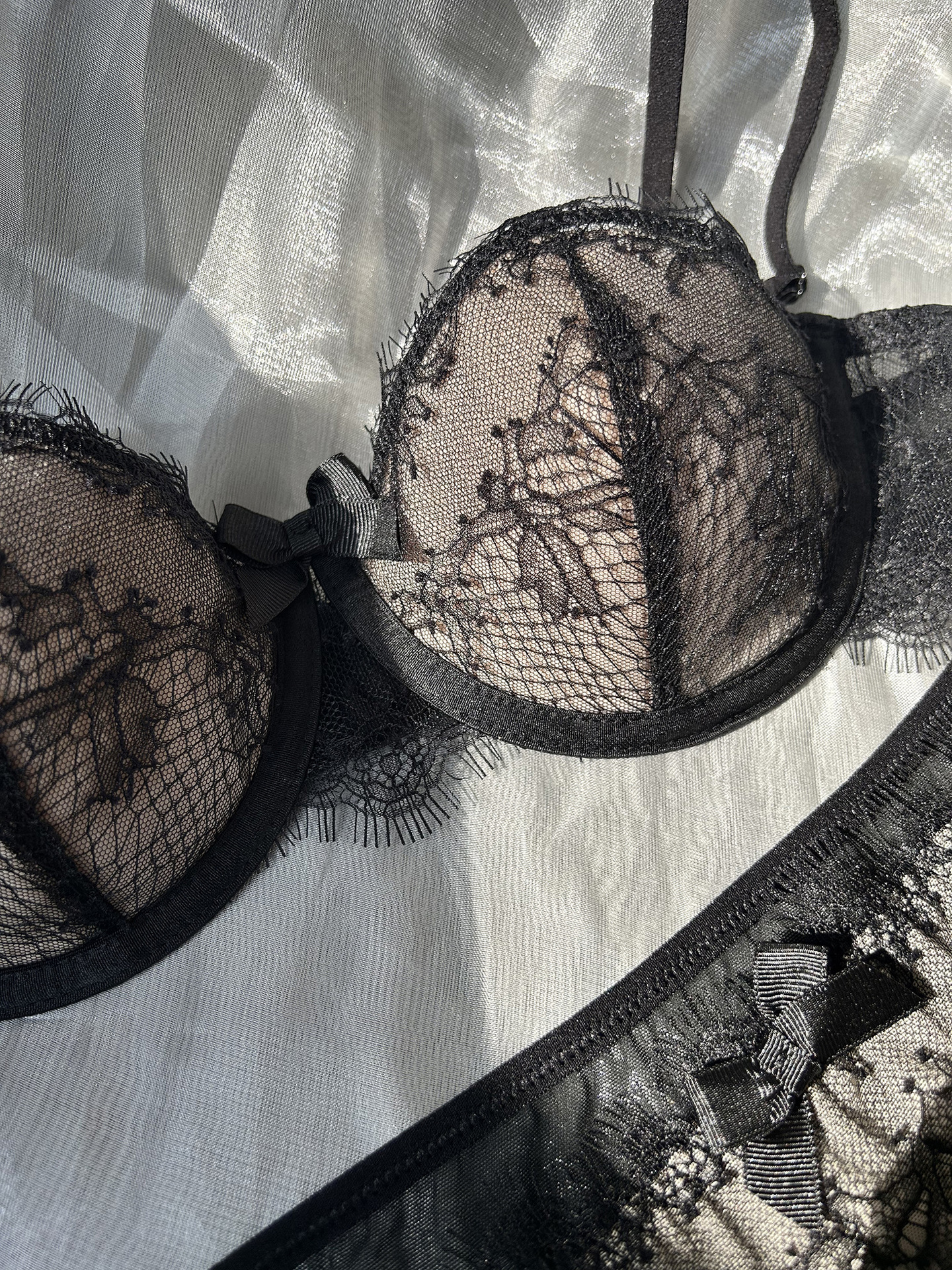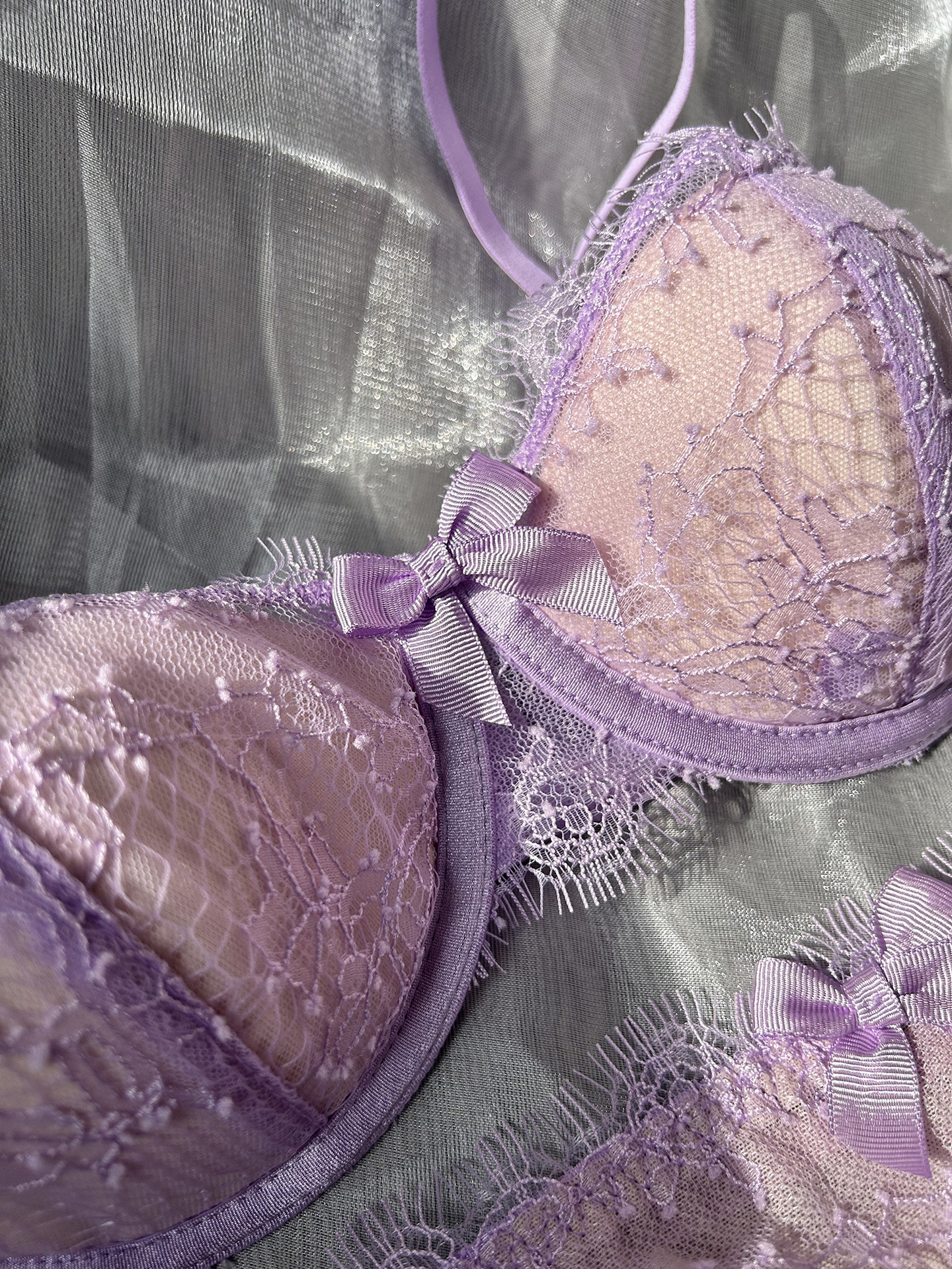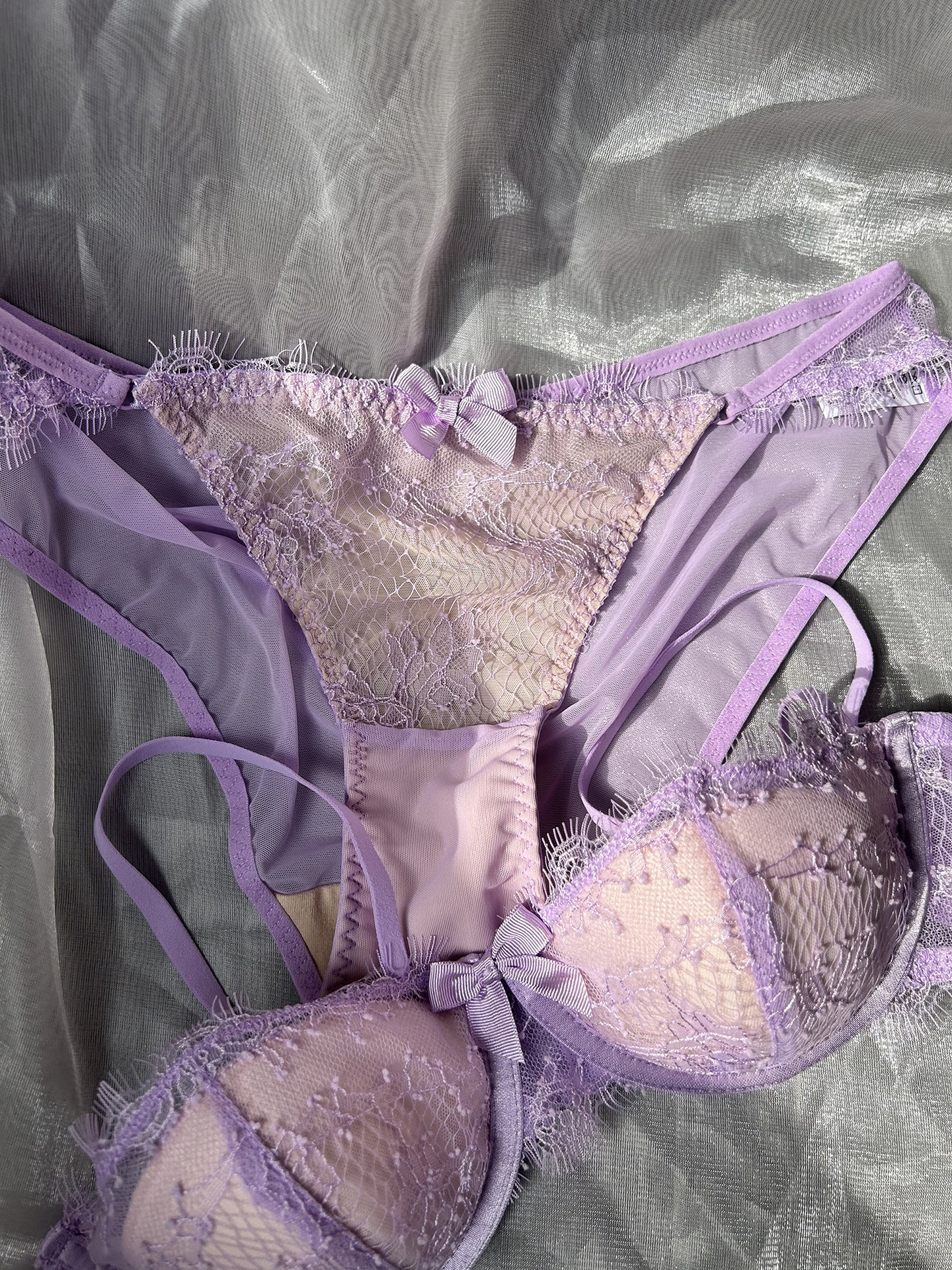 3、鸡心位蝴蝶结点缀可爱、通透蕾丝性感、满满小心机;