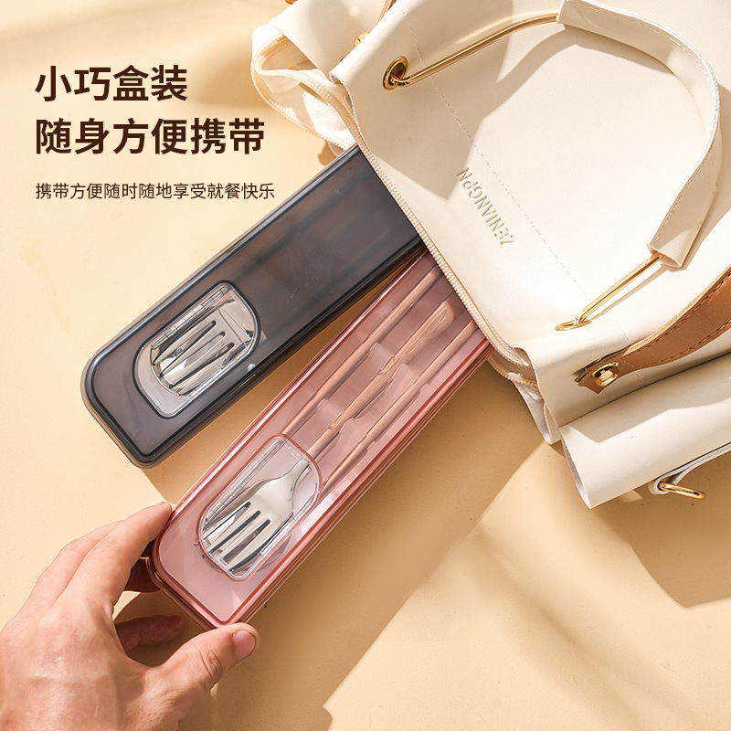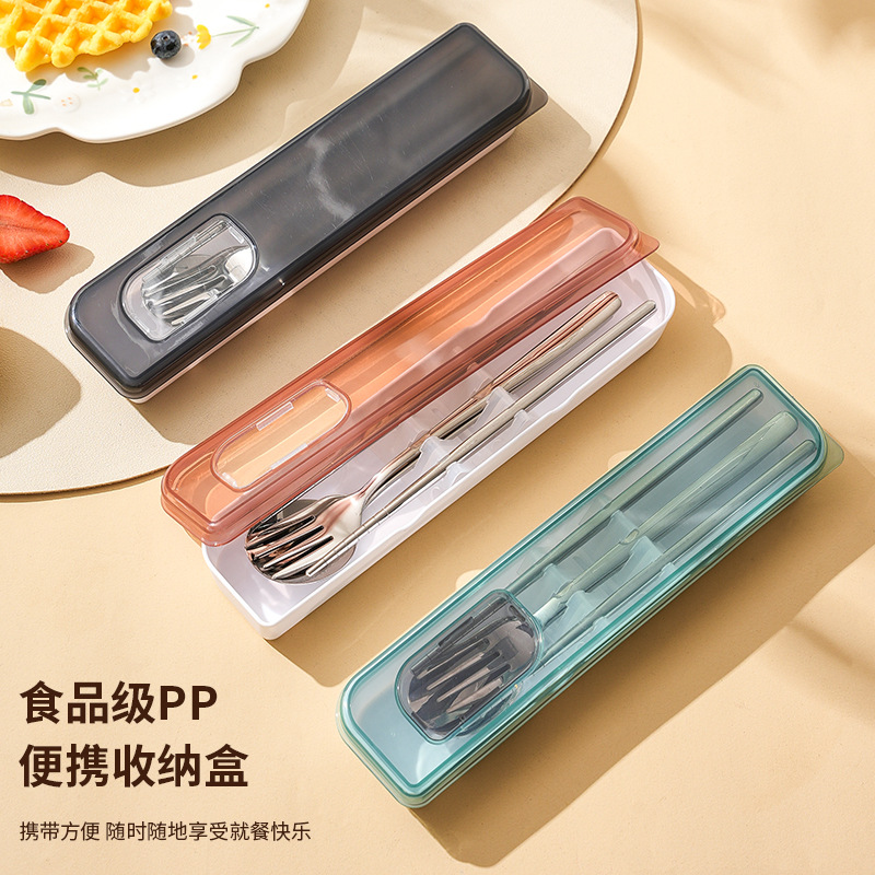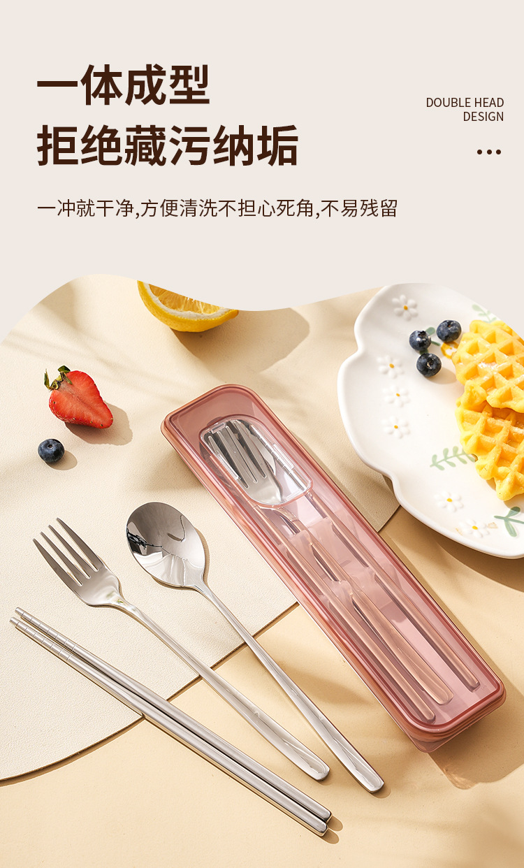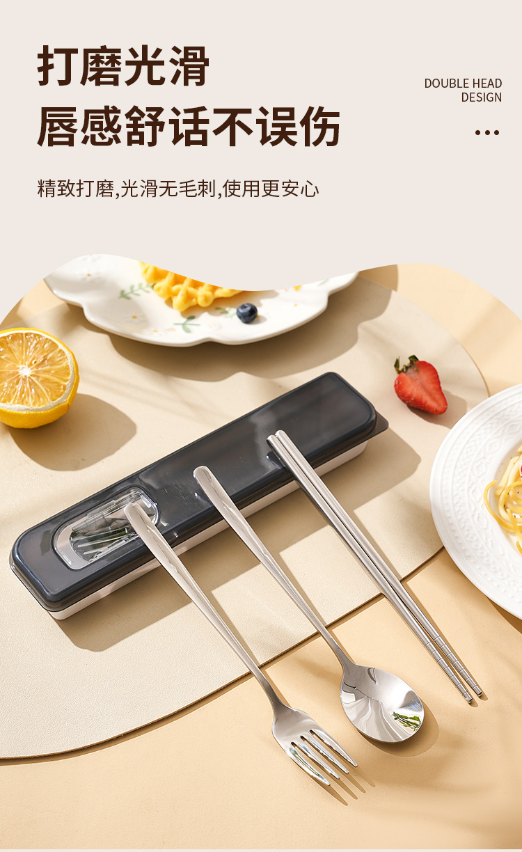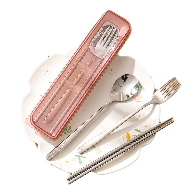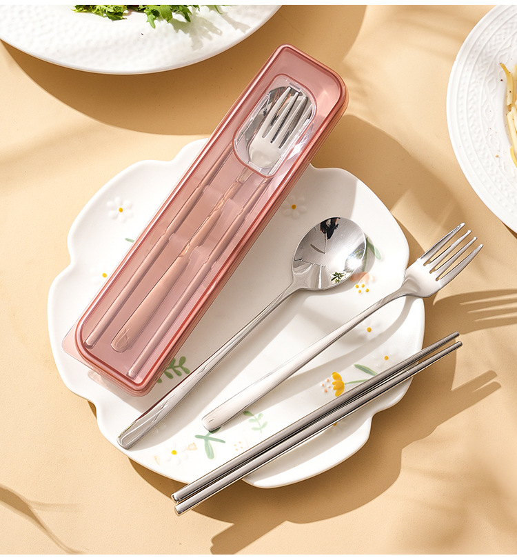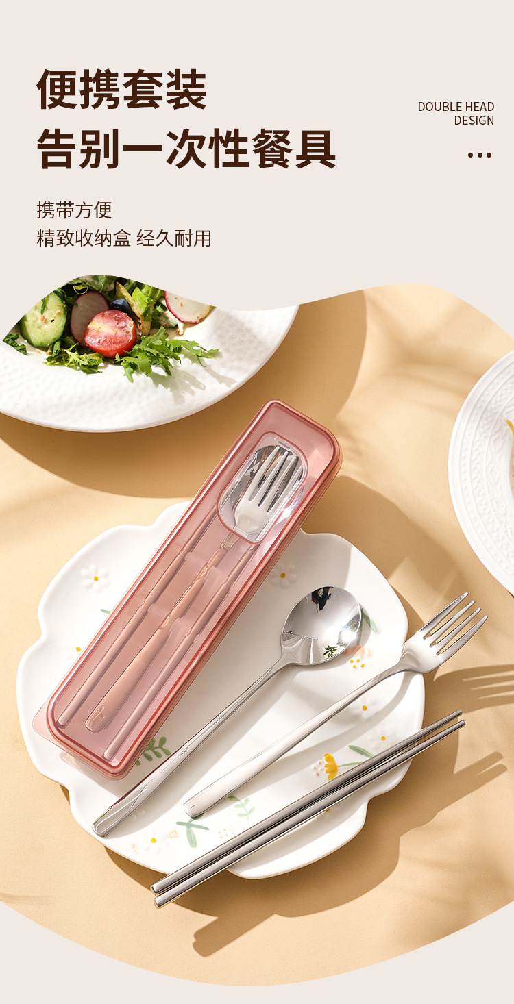 숟가락과 젓가락 세트, 학생용 휴대용 야외 여행 선물, 스테인리스 식기 3종 세트