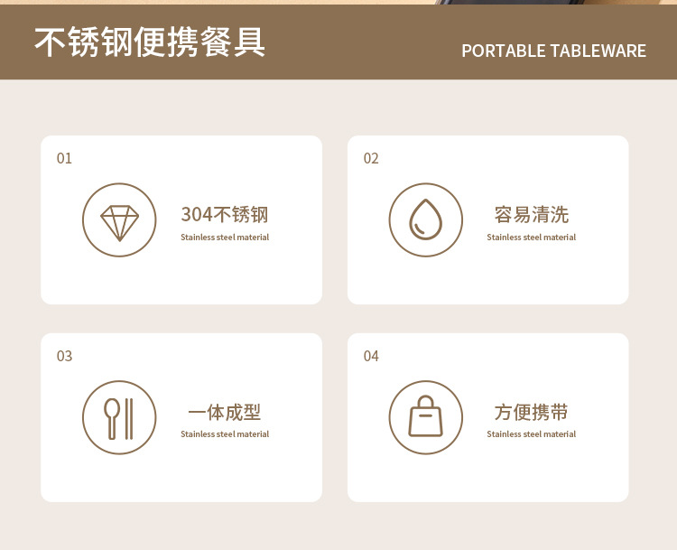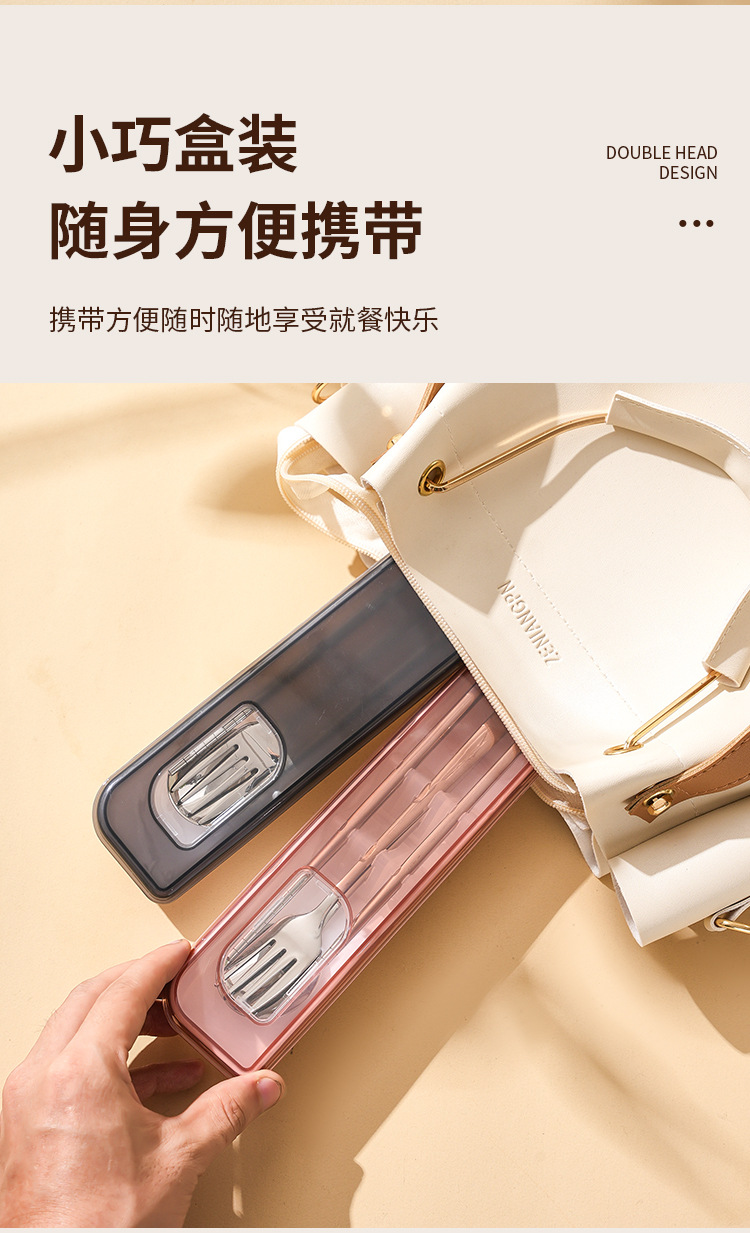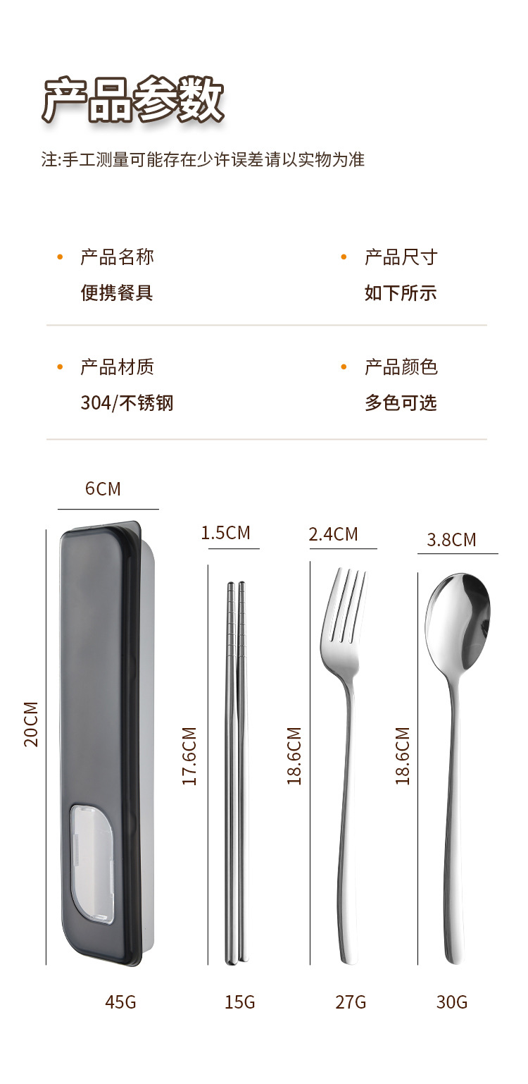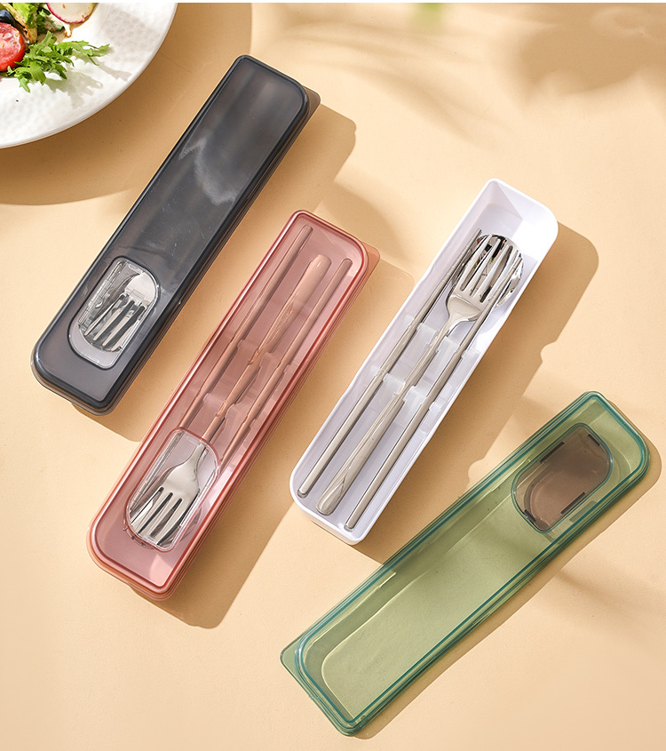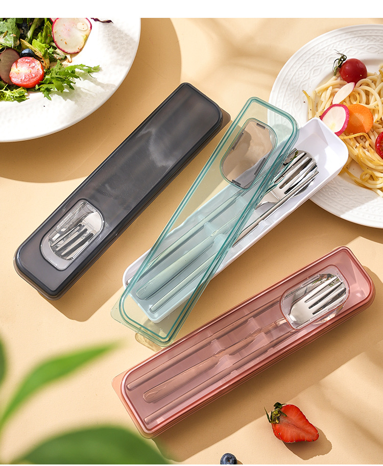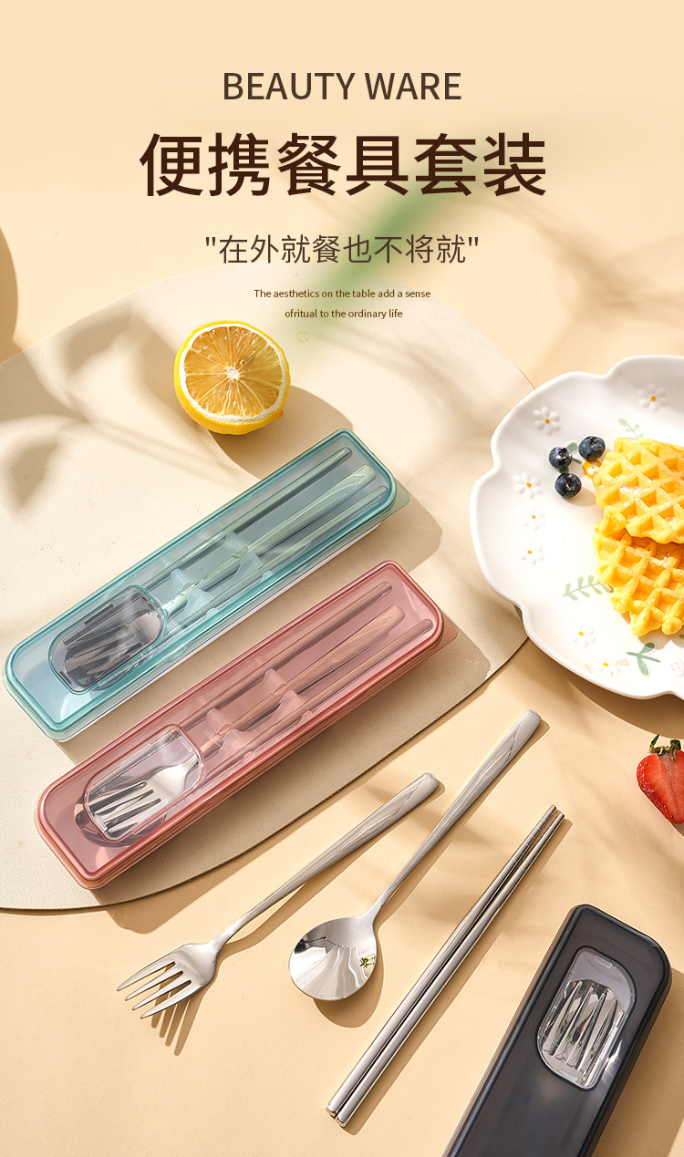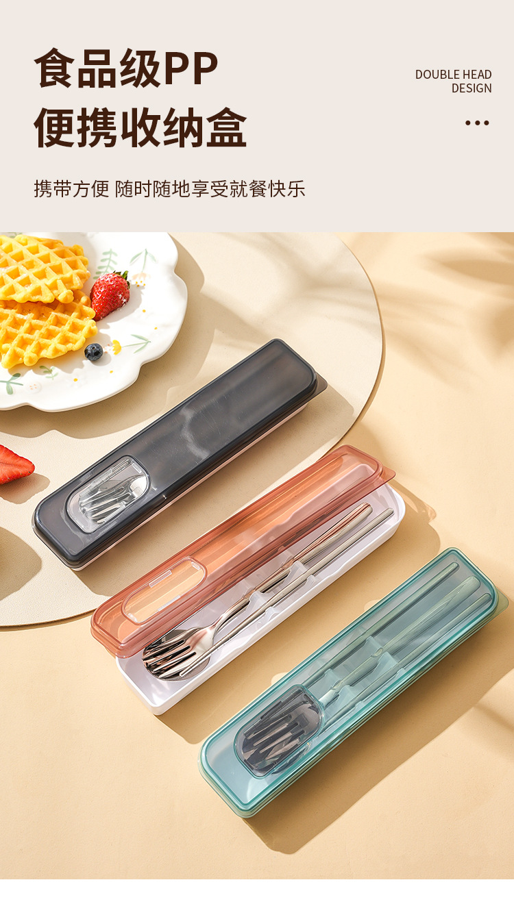 숟가락과 젓가락 세트, 학생용 휴대용 야외 여행 선물, 스테인리스 식기 3종 세트