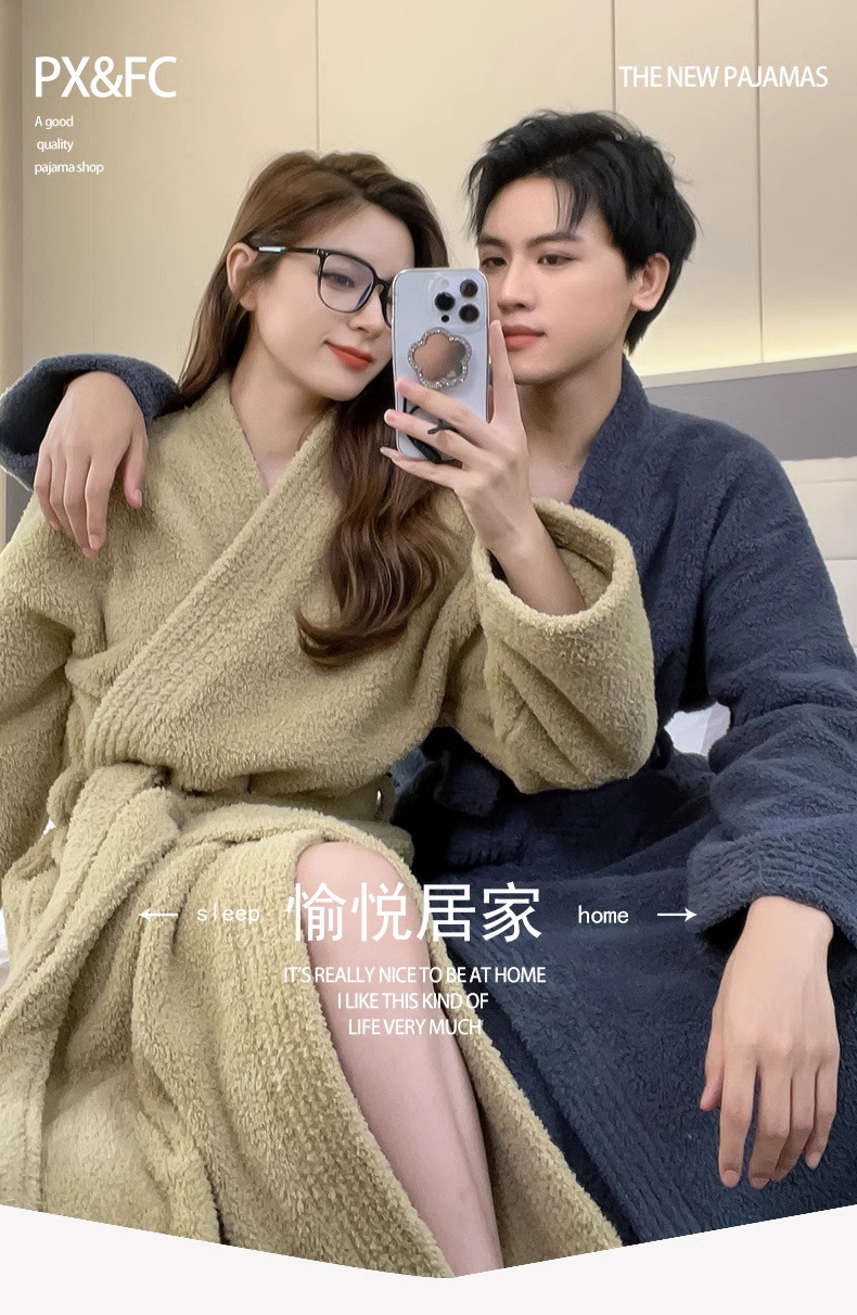 여성용 잠옷 2025 신상 커플 잠옷 두꺼운 플란넬 목욕 가운 코랄 벨벳 남성용 잠옷 목욕 가운 홈웨어
