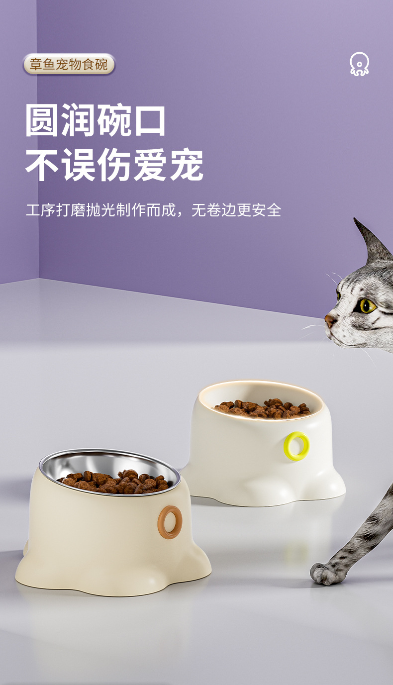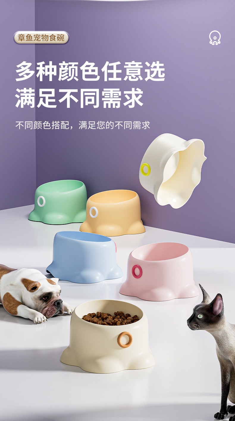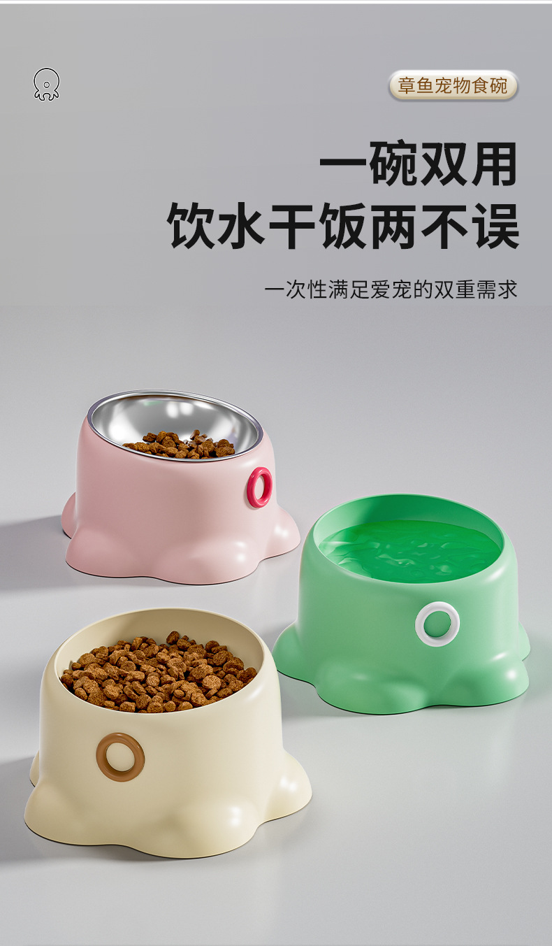 새로운 애완 동물 고양이 개 문어 그릇 고양이 음식 분지 고양이 용품 먹기 음료 단일 그릇 소스 공장 국경 도매