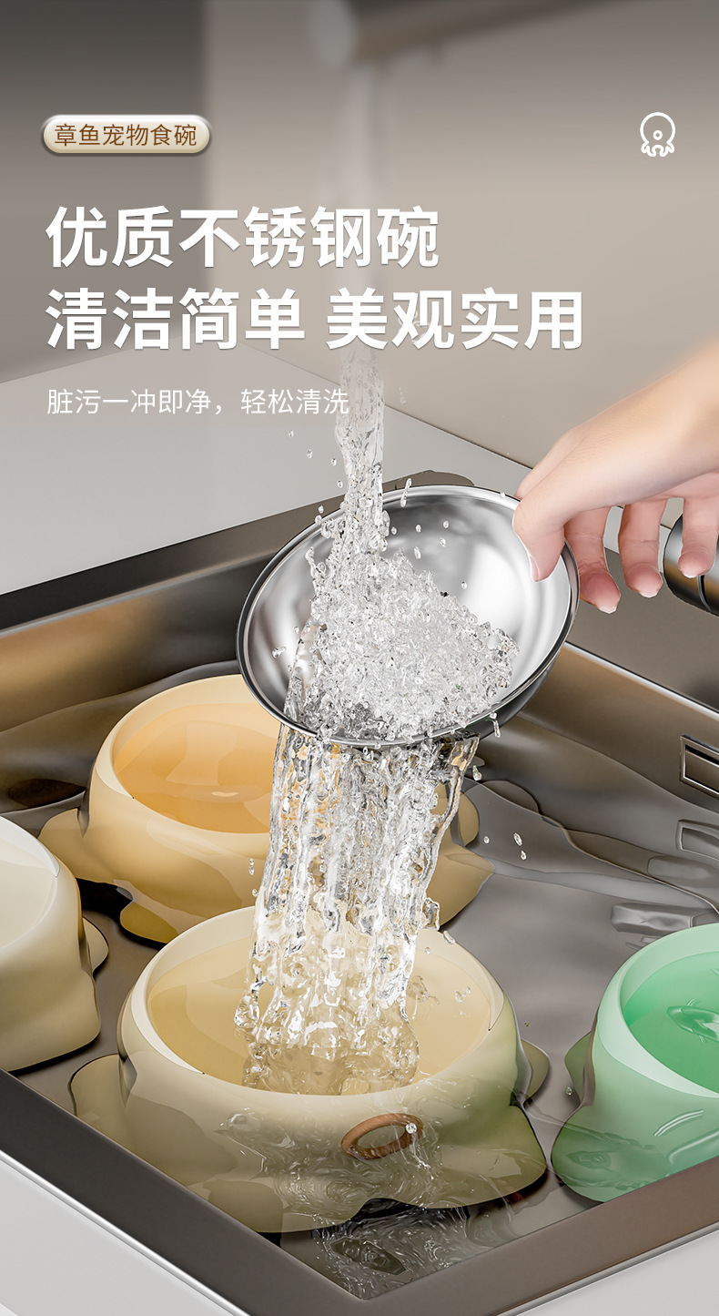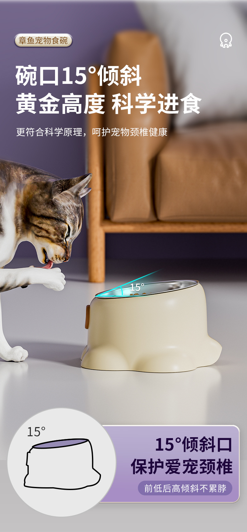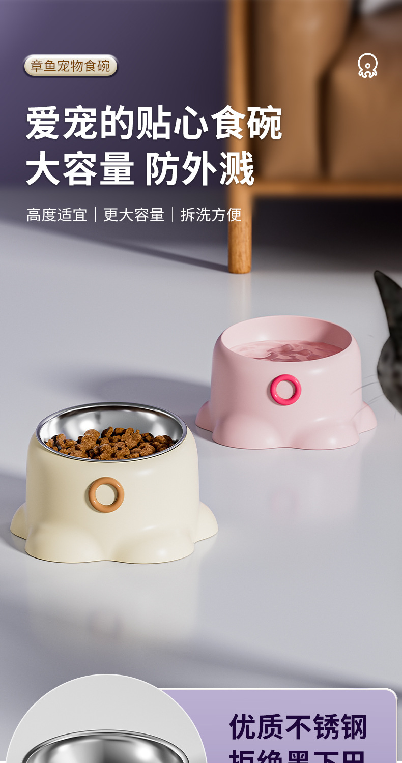 새로운 애완 동물 고양이 개 문어 그릇 고양이 음식 분지 고양이 용품 먹기 음료 단일 그릇 소스 공장 국경 도매