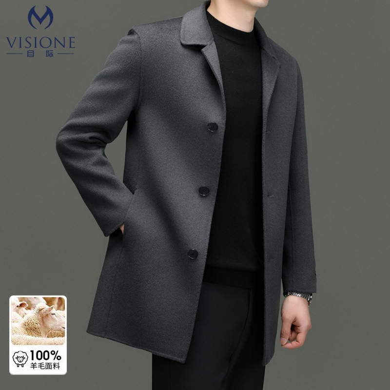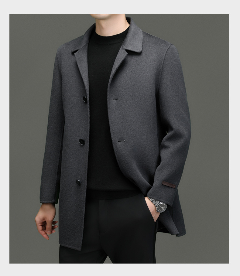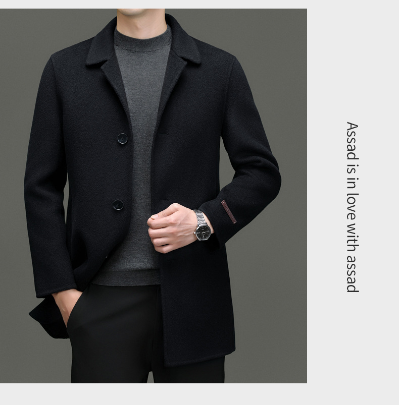 2024 뉴 퓨어 울 코트 남자 중장 가을과 겨울 새 남자 캐주얼 양면 모직 코트 코트