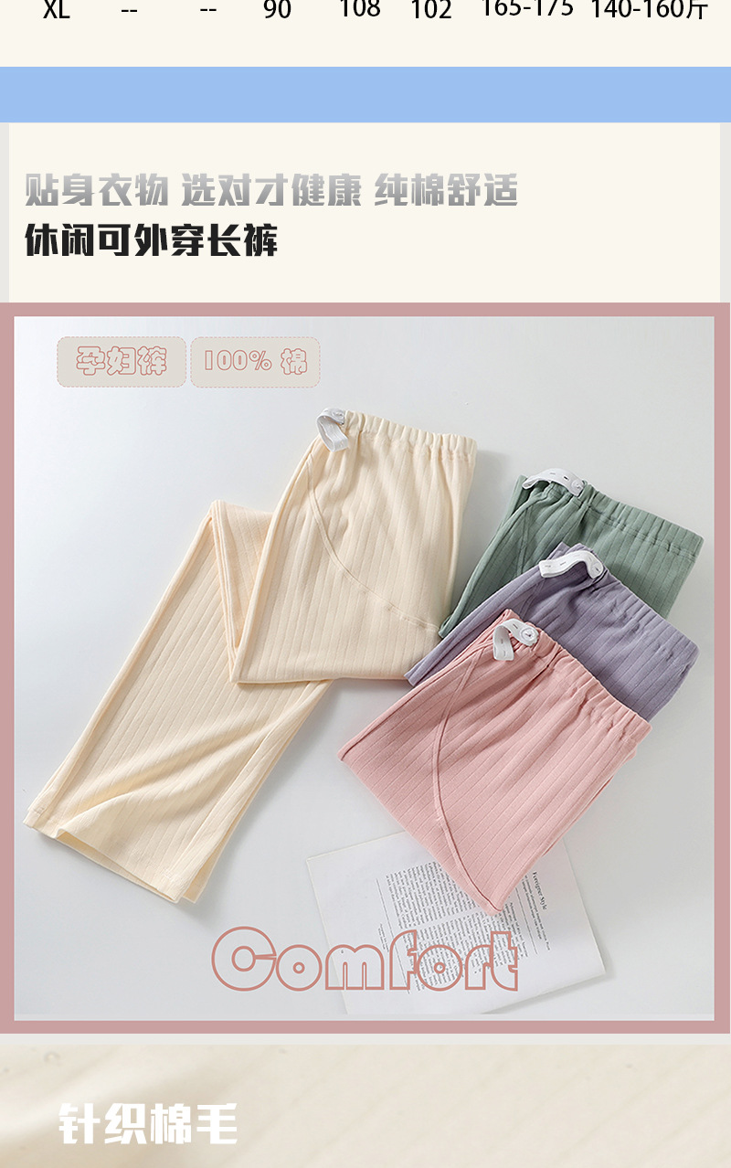 임산부 바지는 가을과 겨울 새로운 순수면 복부 조절 가능한 단색 외부 스트레이트 레그 와이드 레그 홈 팬츠