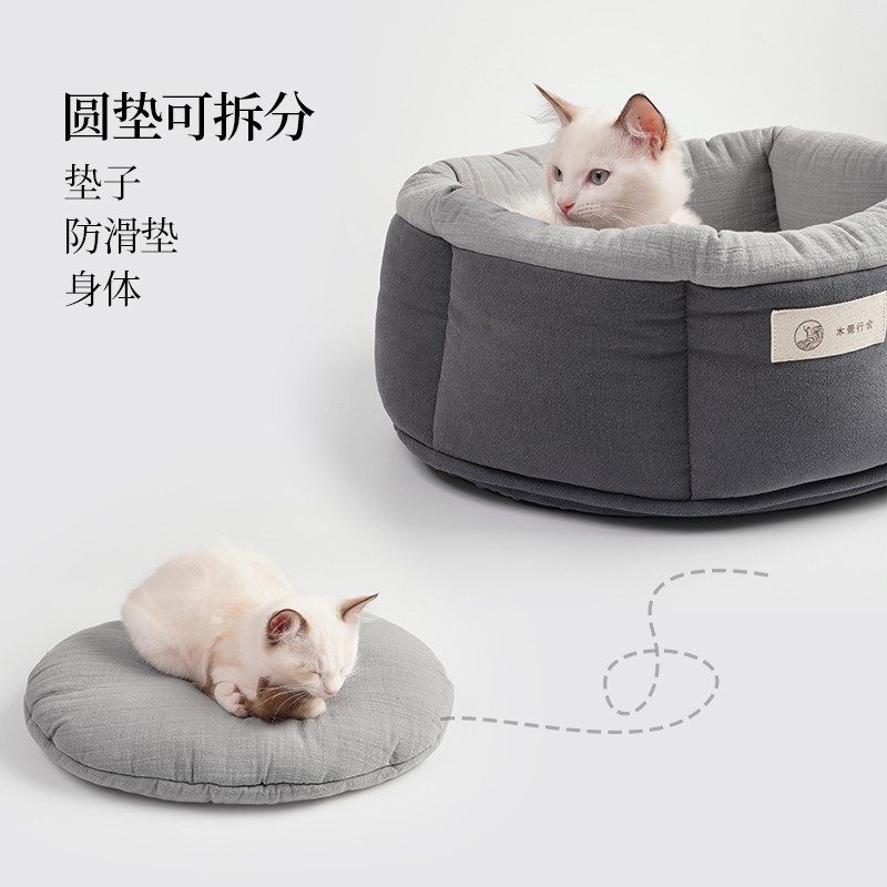 선 봉제 고양이 개관 개관 양고기 따뜻한 라운드 반 팩 깊은 수면 고양이 매트 개관