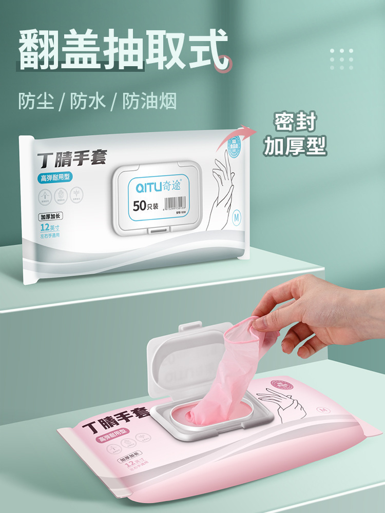 니트릴 장갑 식품 등급 니트릴 장갑 비 일회용 두꺼운 방수 밀봉 인출 가능한 장갑