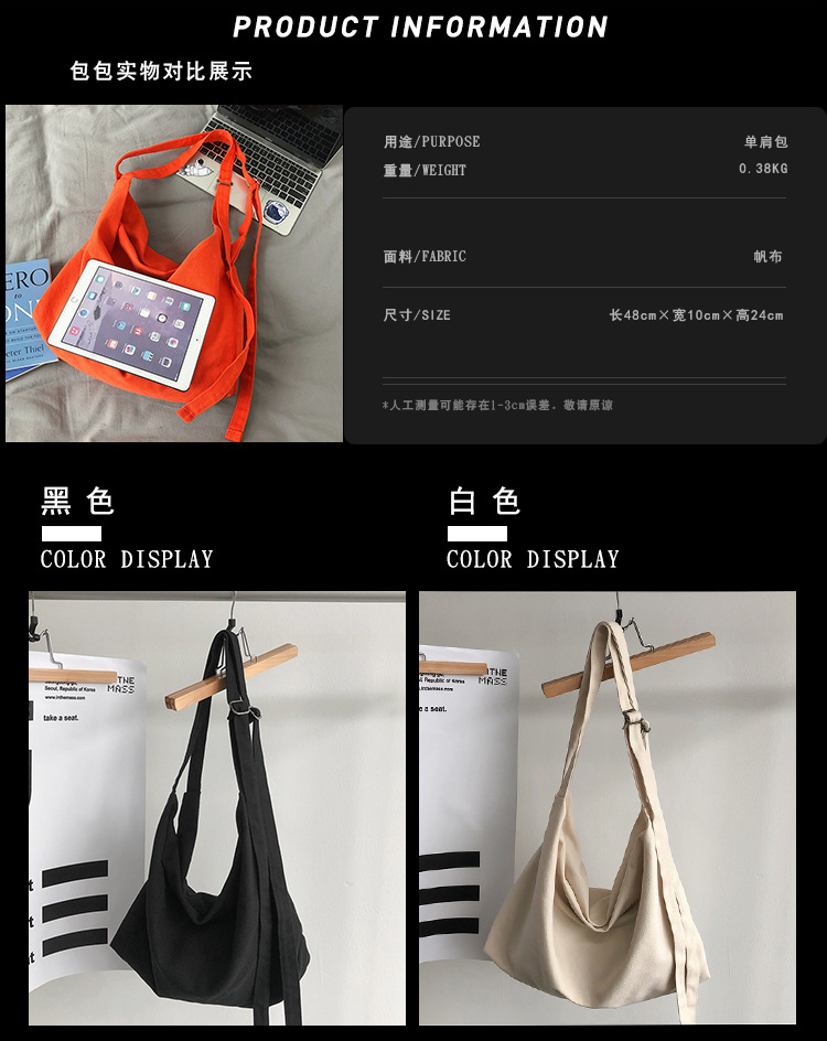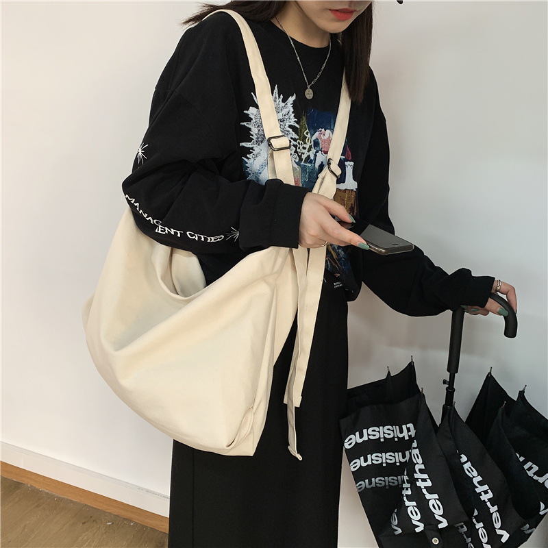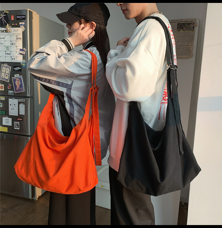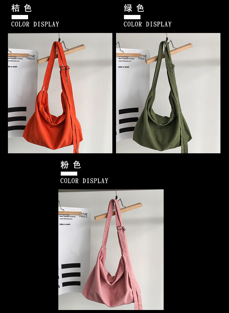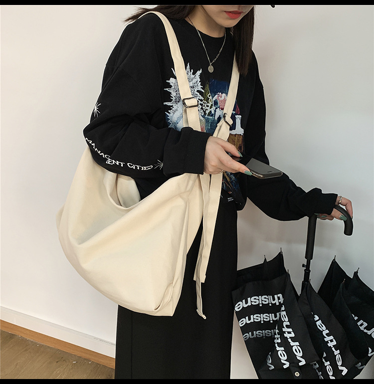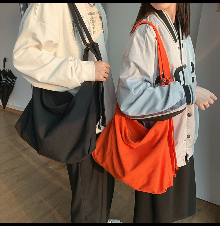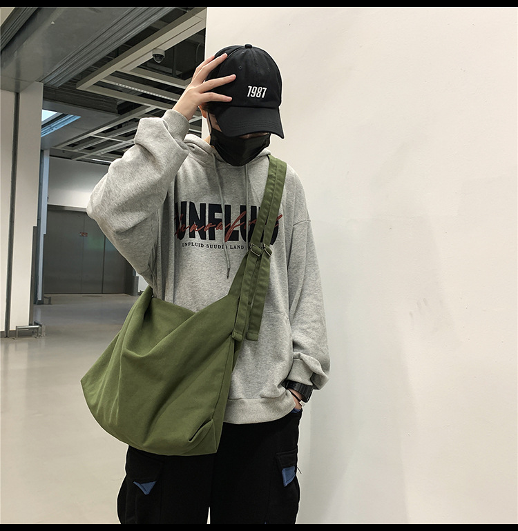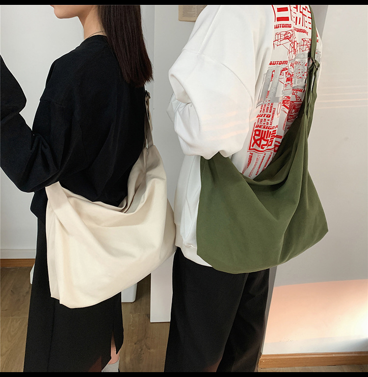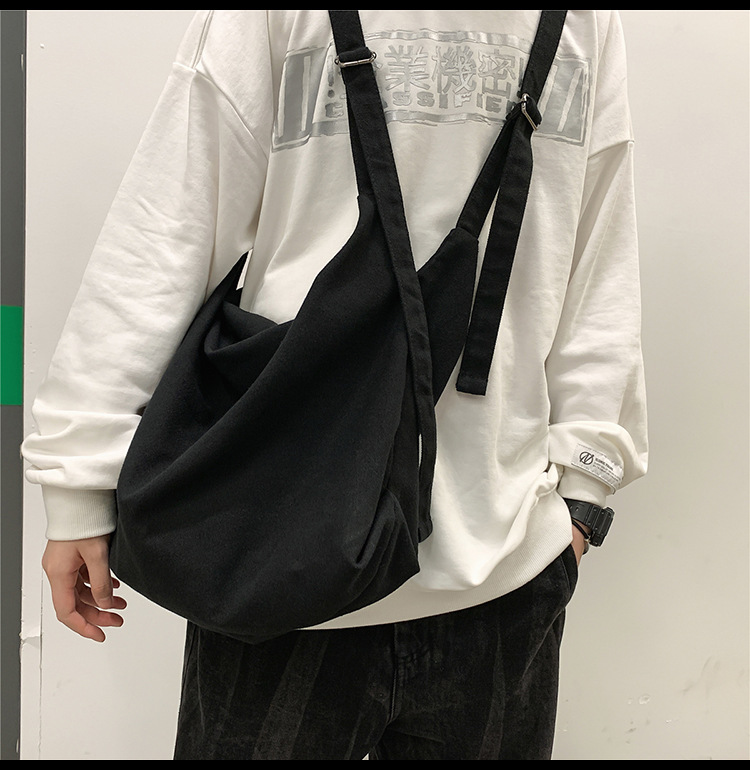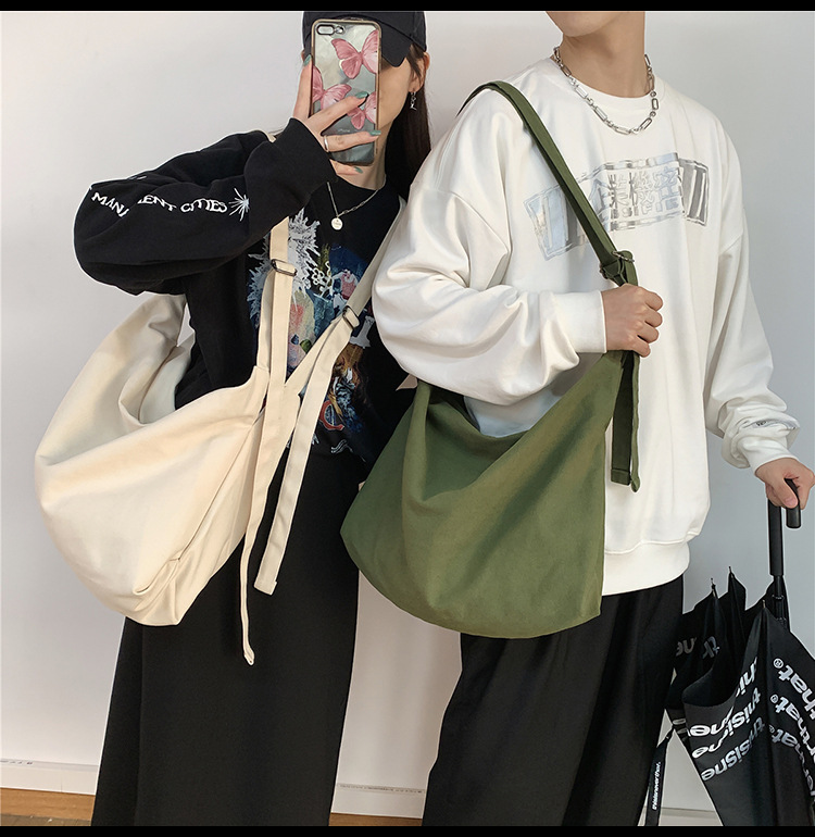 가방 여성의 새로운 도착 세탁 캔버스 크로스 백 한국 스타일 유행 대용량 어깨 가방 남성 일본식 솔리드 컬러 가방