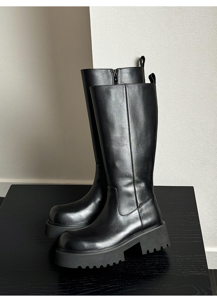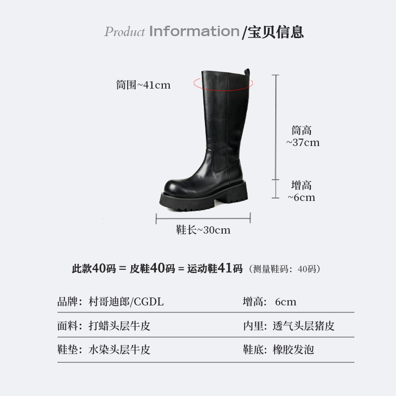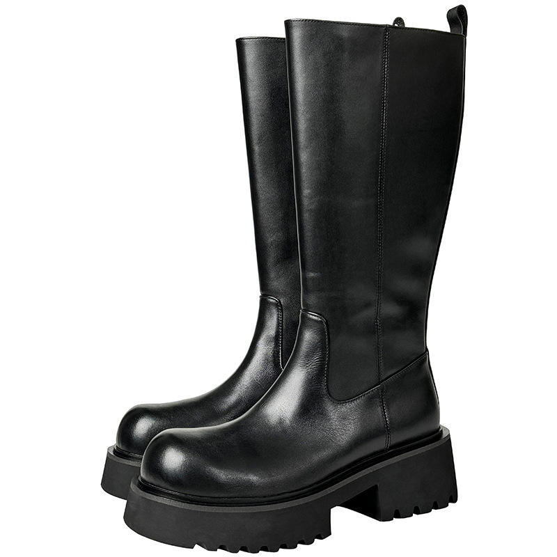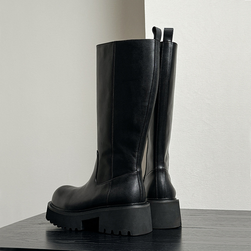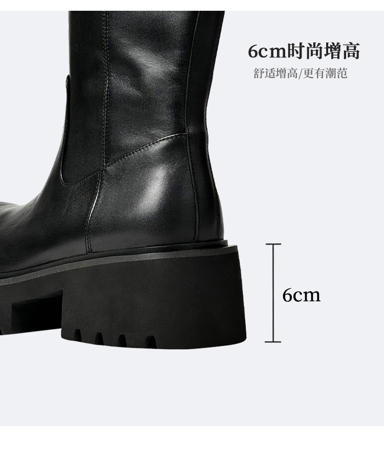 헤어 롱 마틴 부츠 남성용 가죽 큰 머리 증가 두꺼운 바닥 높은 부츠 영국 윈드 사이드 지퍼 부츠