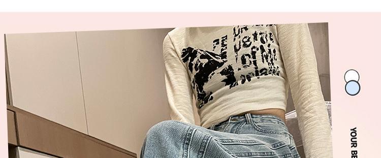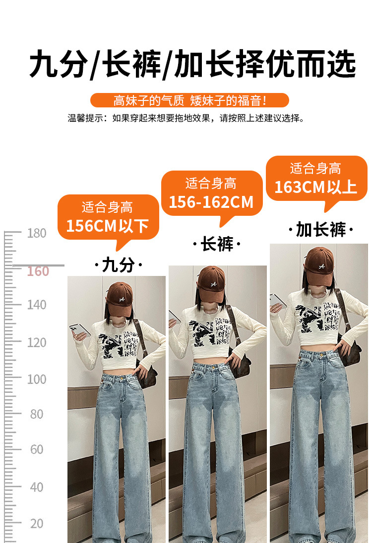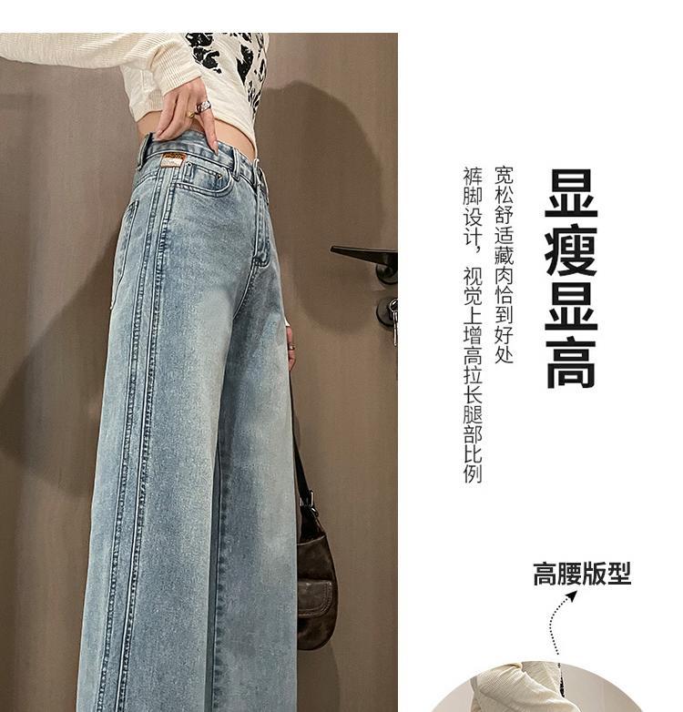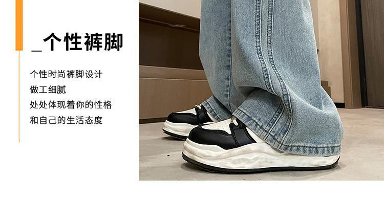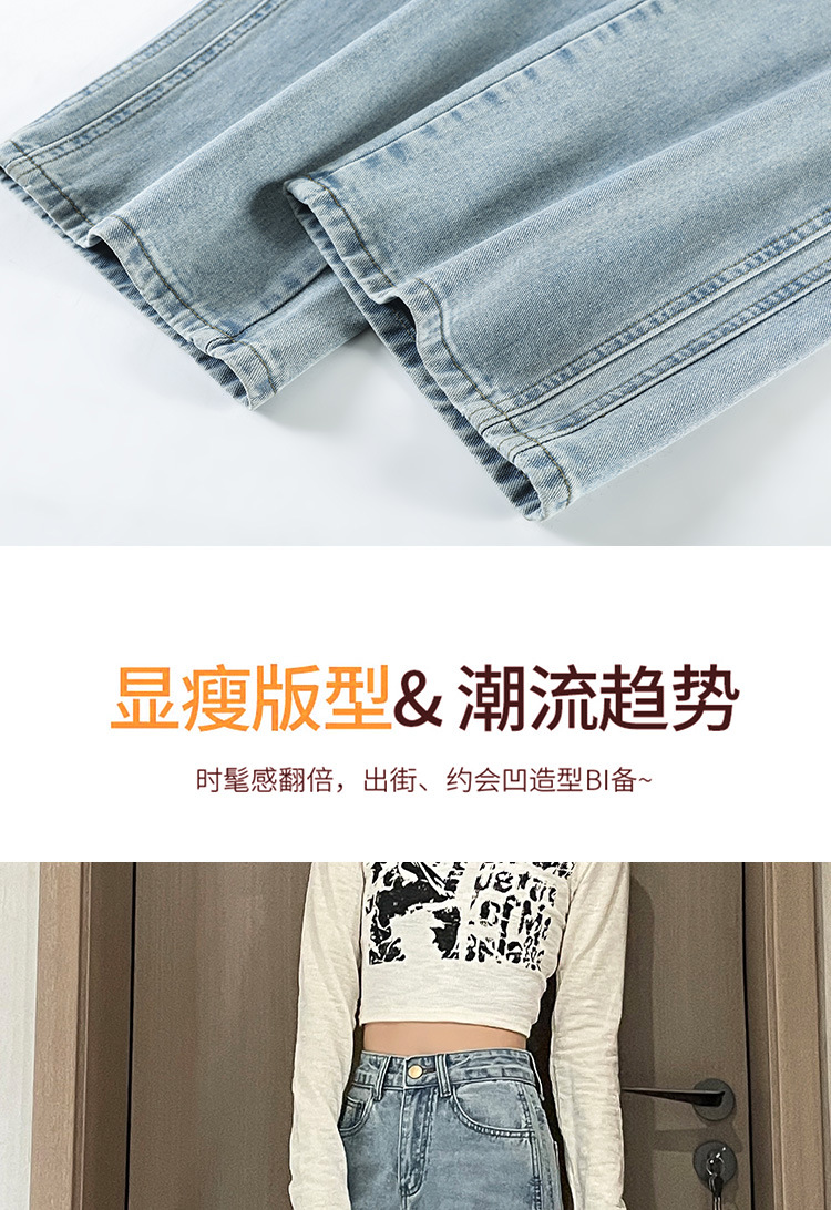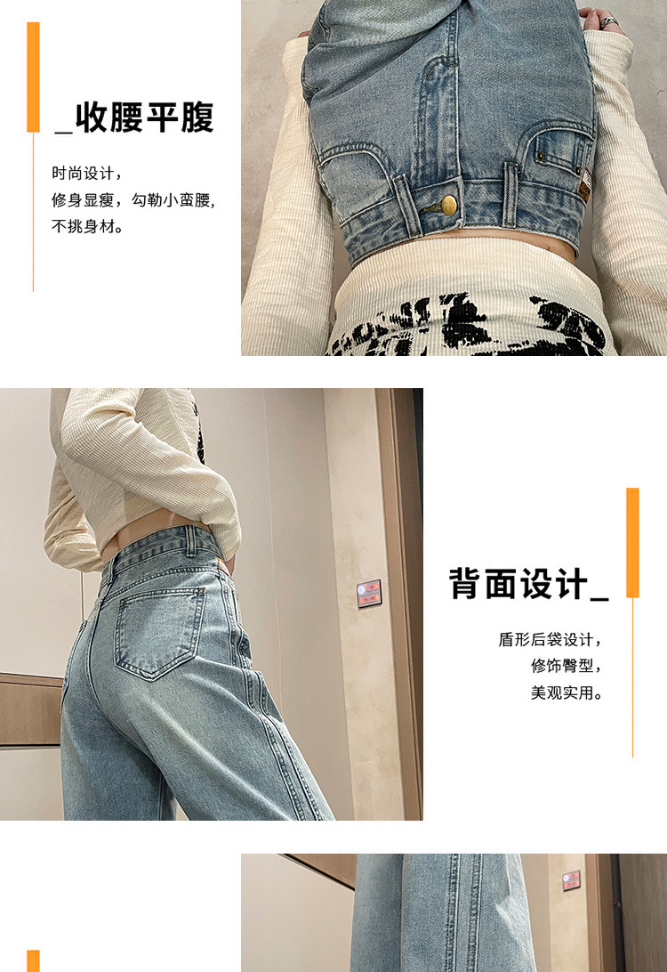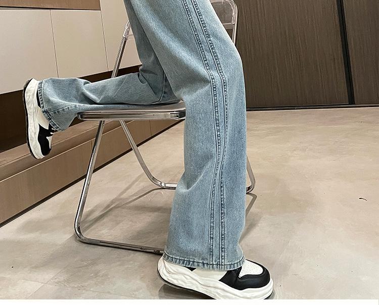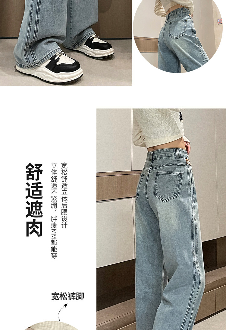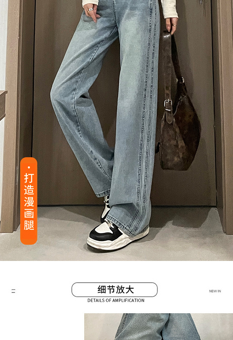 라이트 블루 넓은 다리 청바지 여성의 가을 새로운 레트로 향수 대비 컬러 측면 측면 좁은 버전 걸레 긴 바지