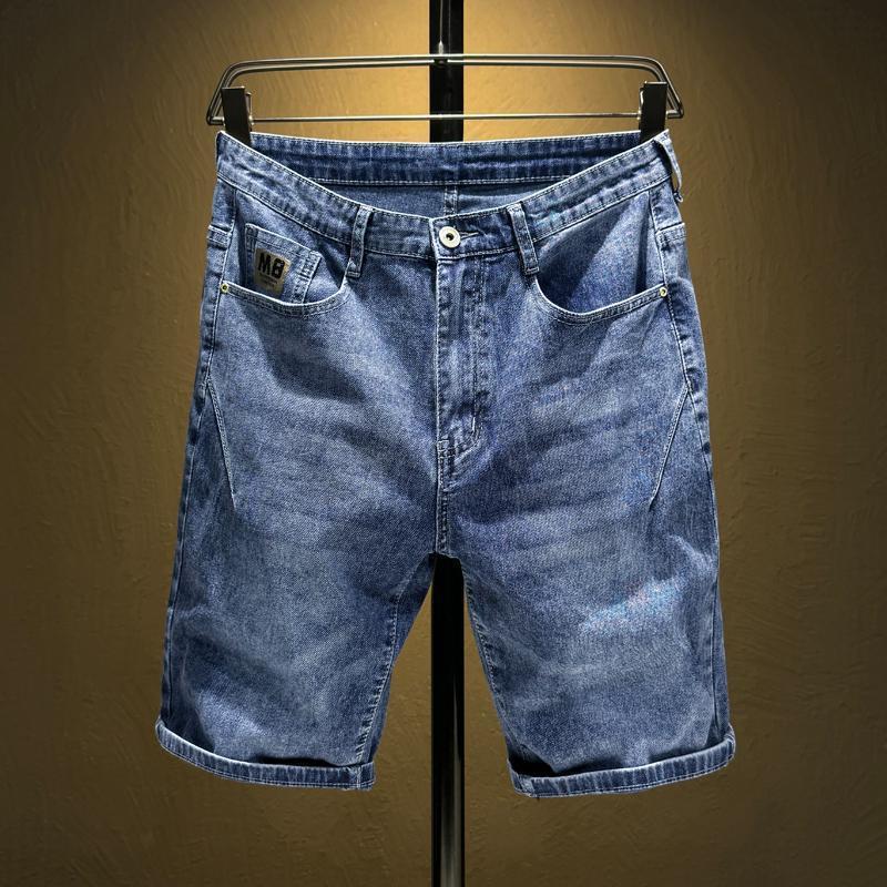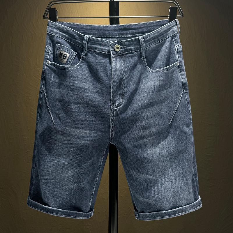여름용 멋진 얇은 데님 반바지 2024 신상 남성용 반바지 5부 중간 길이 바지 루즈핏 스트레이트 캐주얼 팬츠